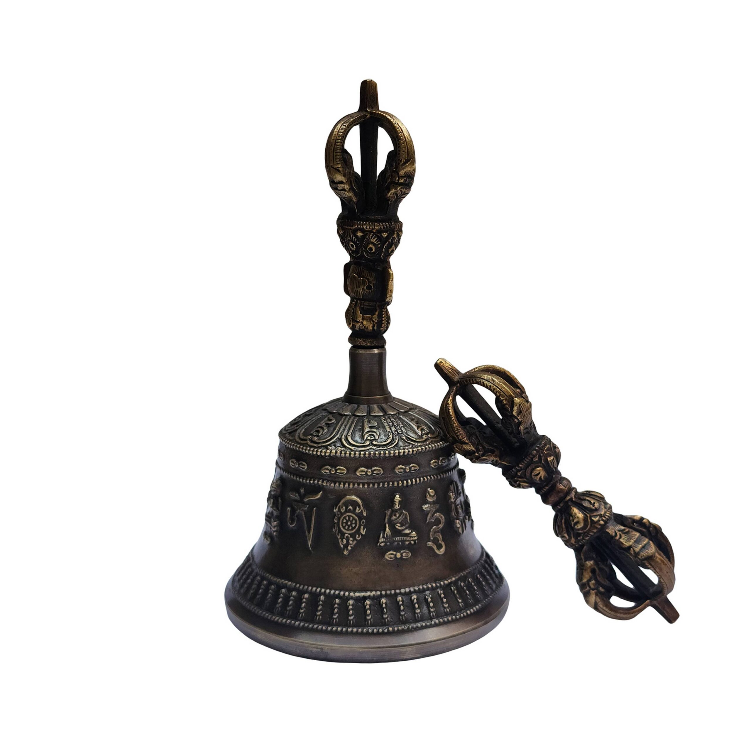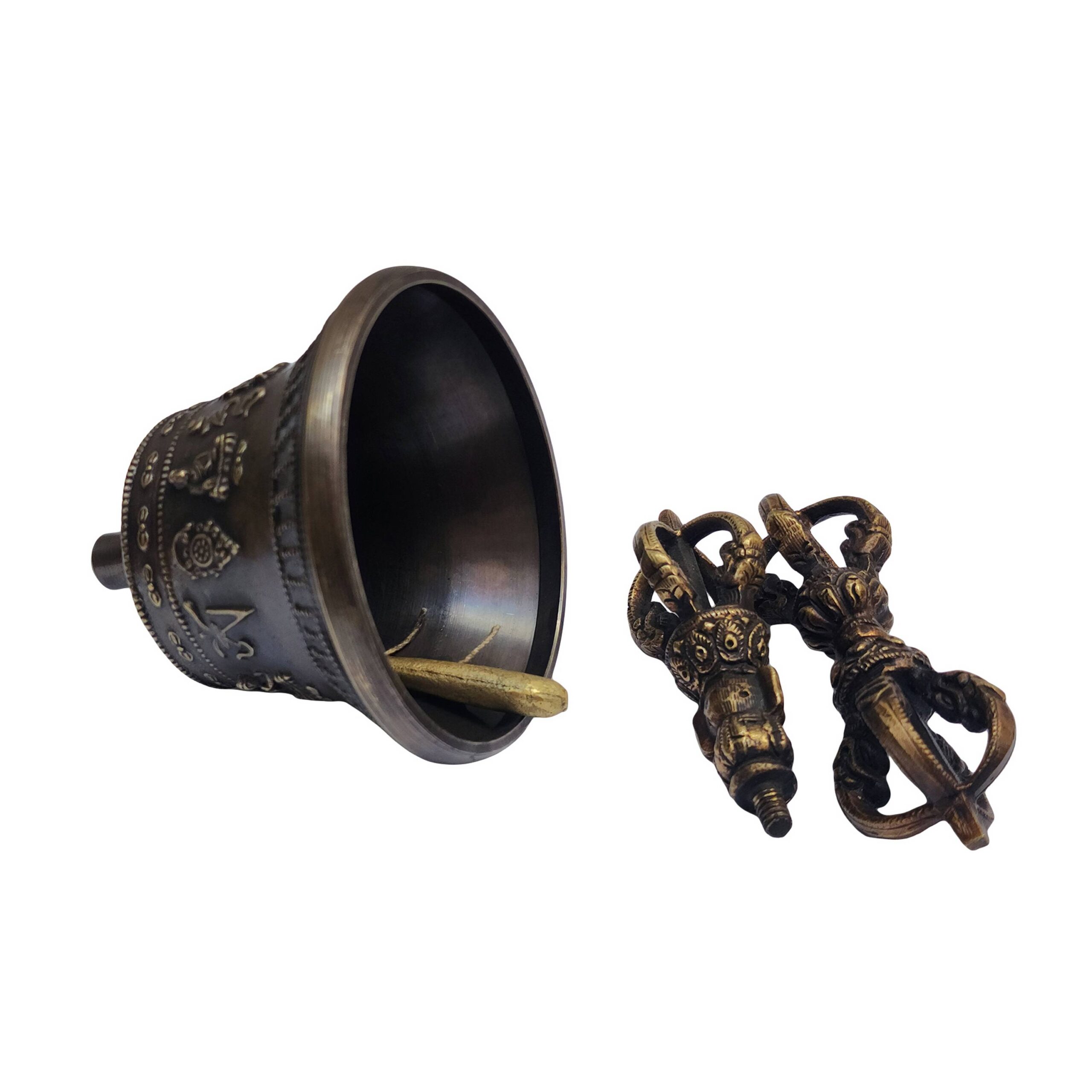 Bell and Dorje Vajra – High-Quality Bronze Ritual Set with Antique Patina Finish