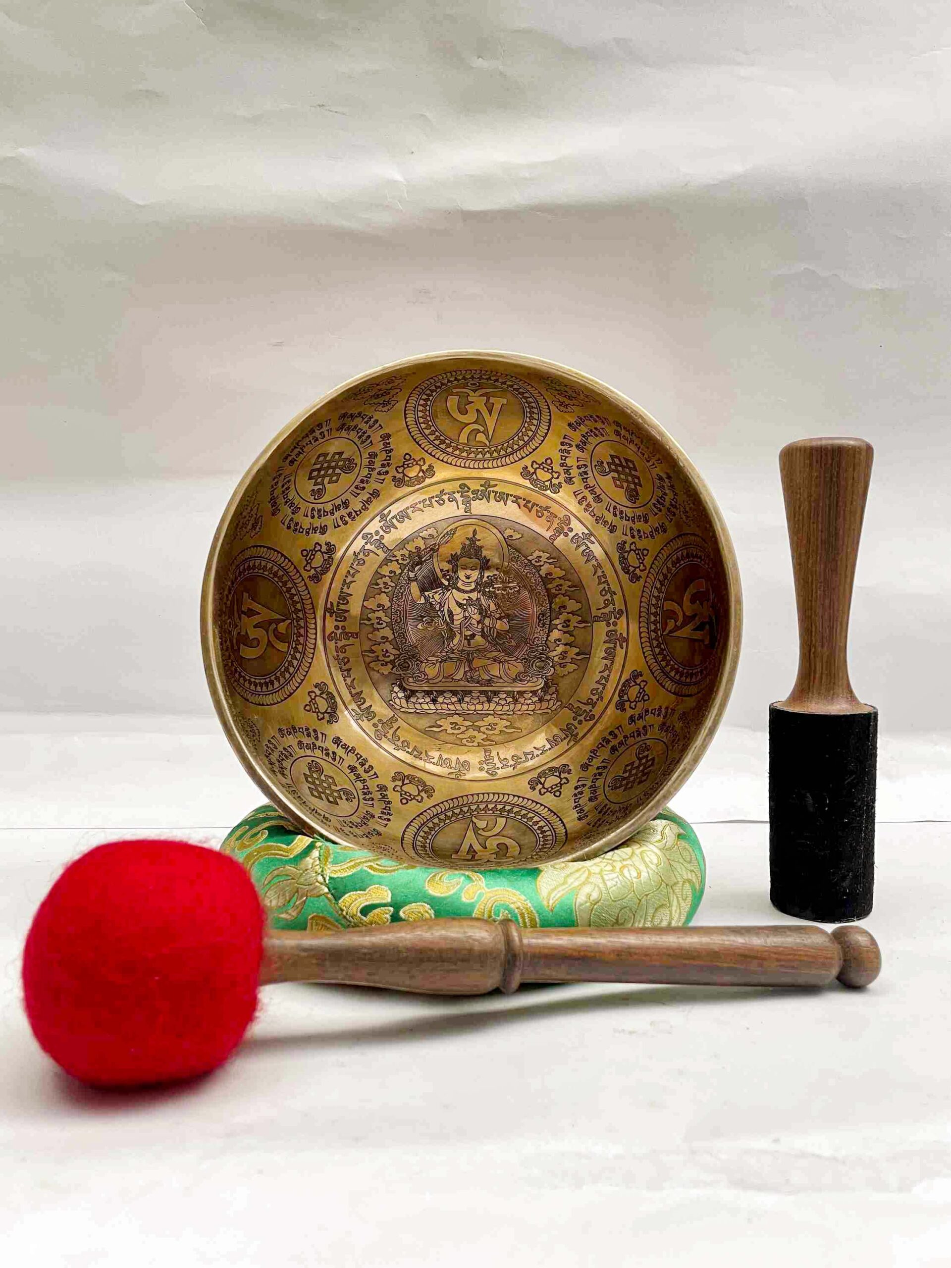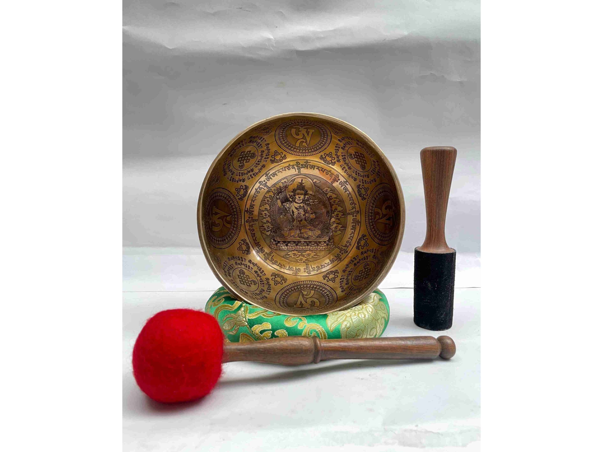 Buddhist Hand-Beaten Jambati Singing Bowl – Manjushri Design, Intricate Carving