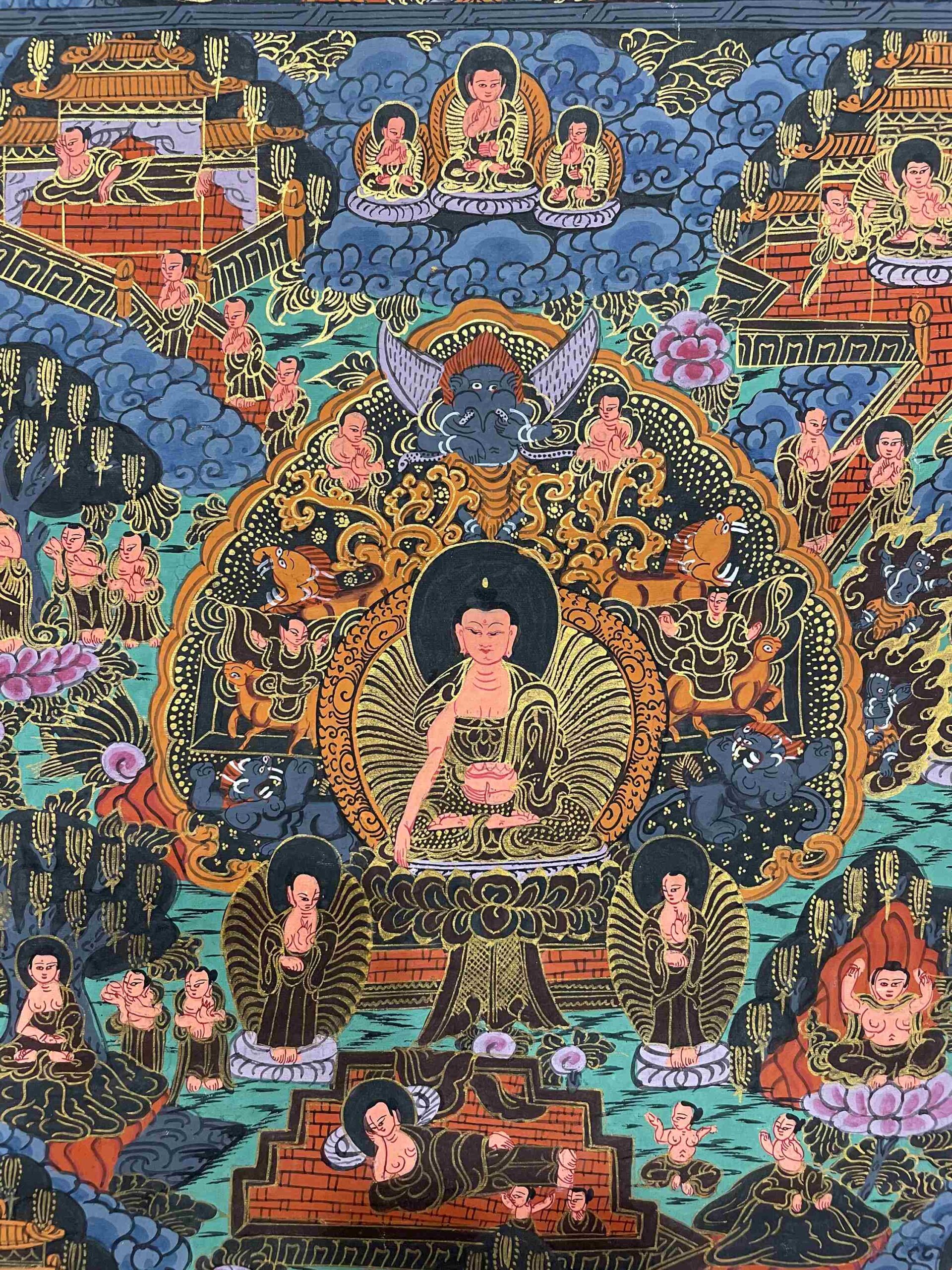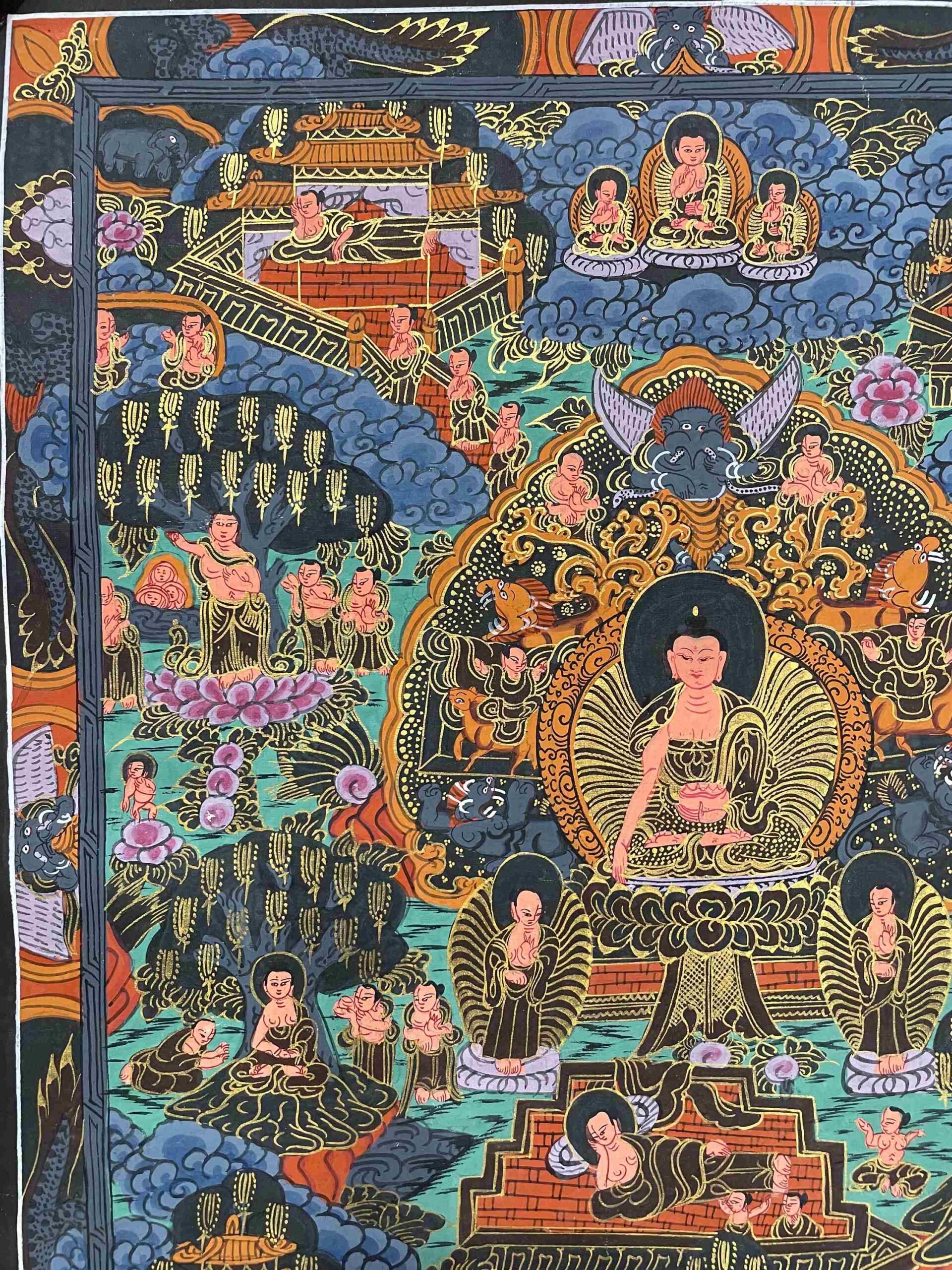 Buddhist Hand-Painted Buddha Life Story Thangka