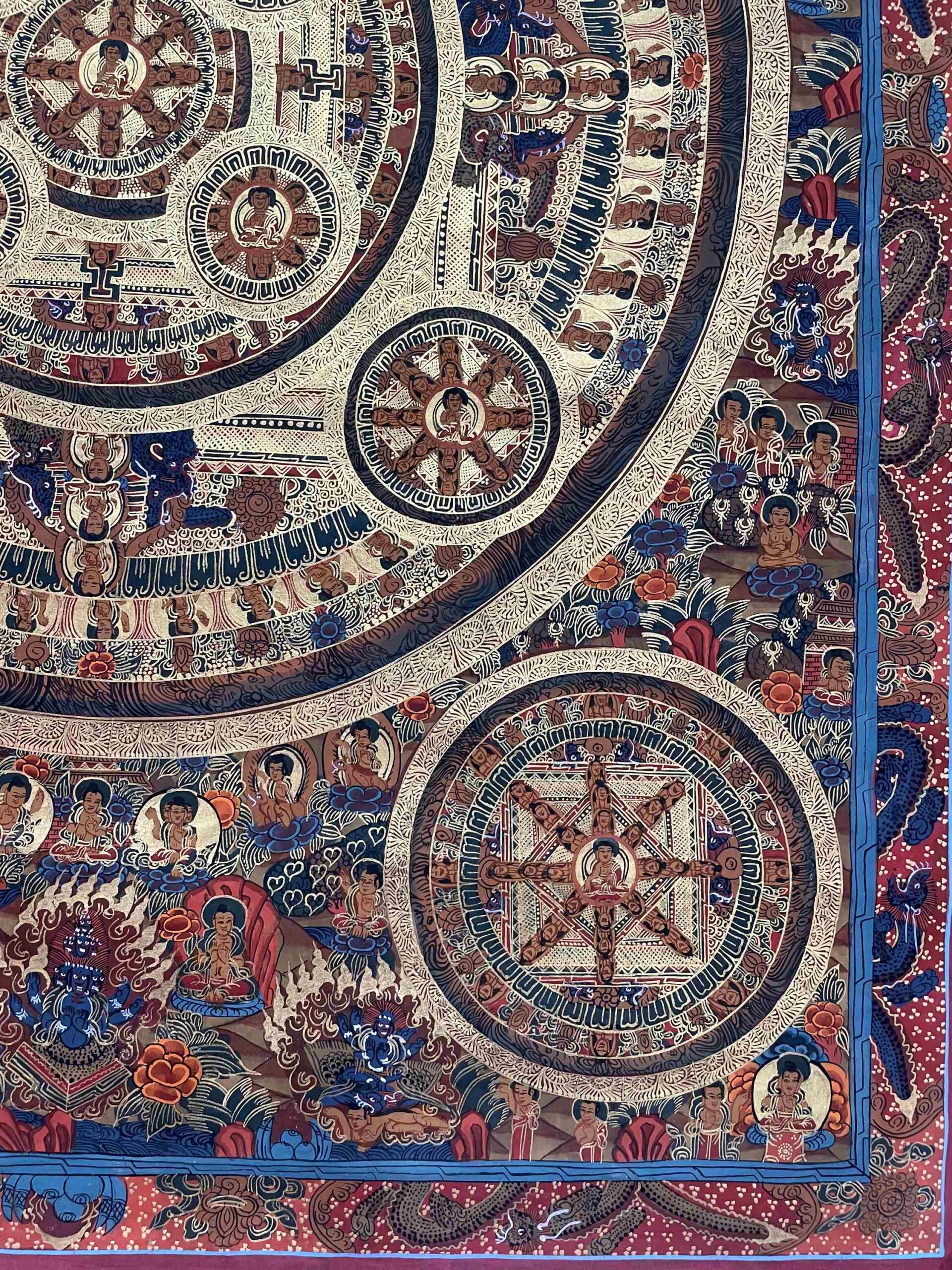 The Fifteen Mandala Thangka is particularly special, presenting fifteen sacred mandalas within a single composition. This multi-mandala arrangement amplifies the artwork’s spiritual resonance, offering a deeper, more expansive meditative experience that embodies the vastness of the enlightened mind.