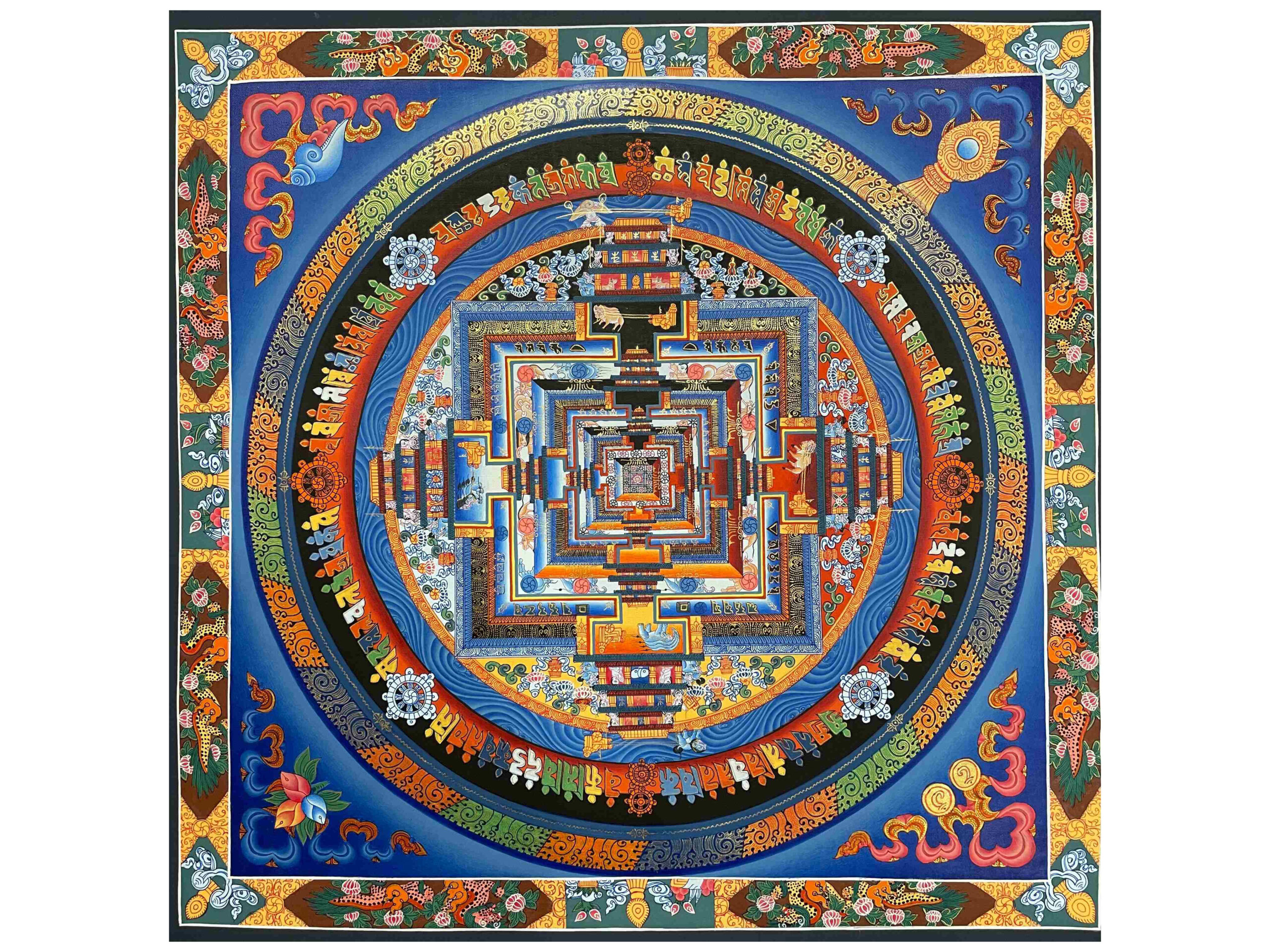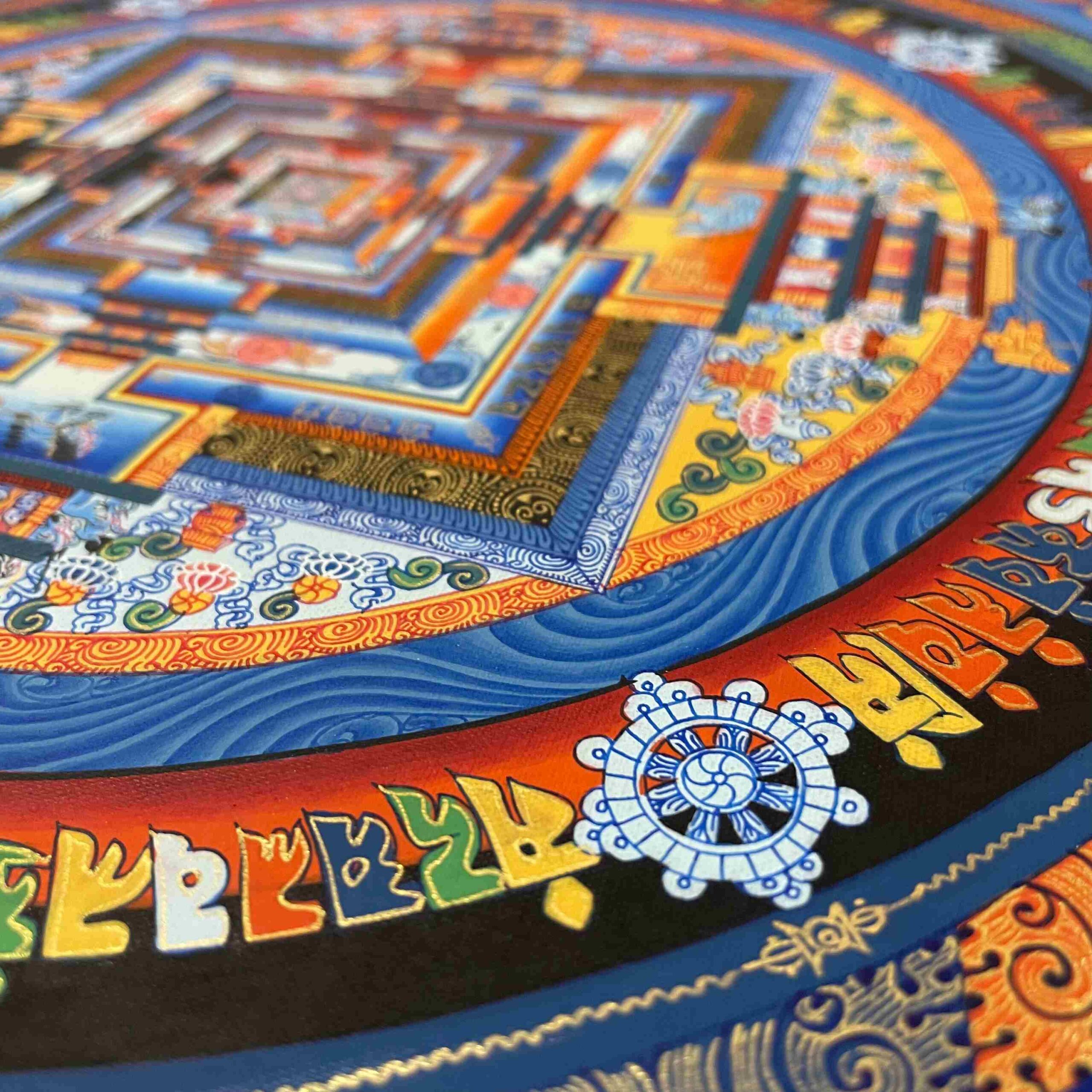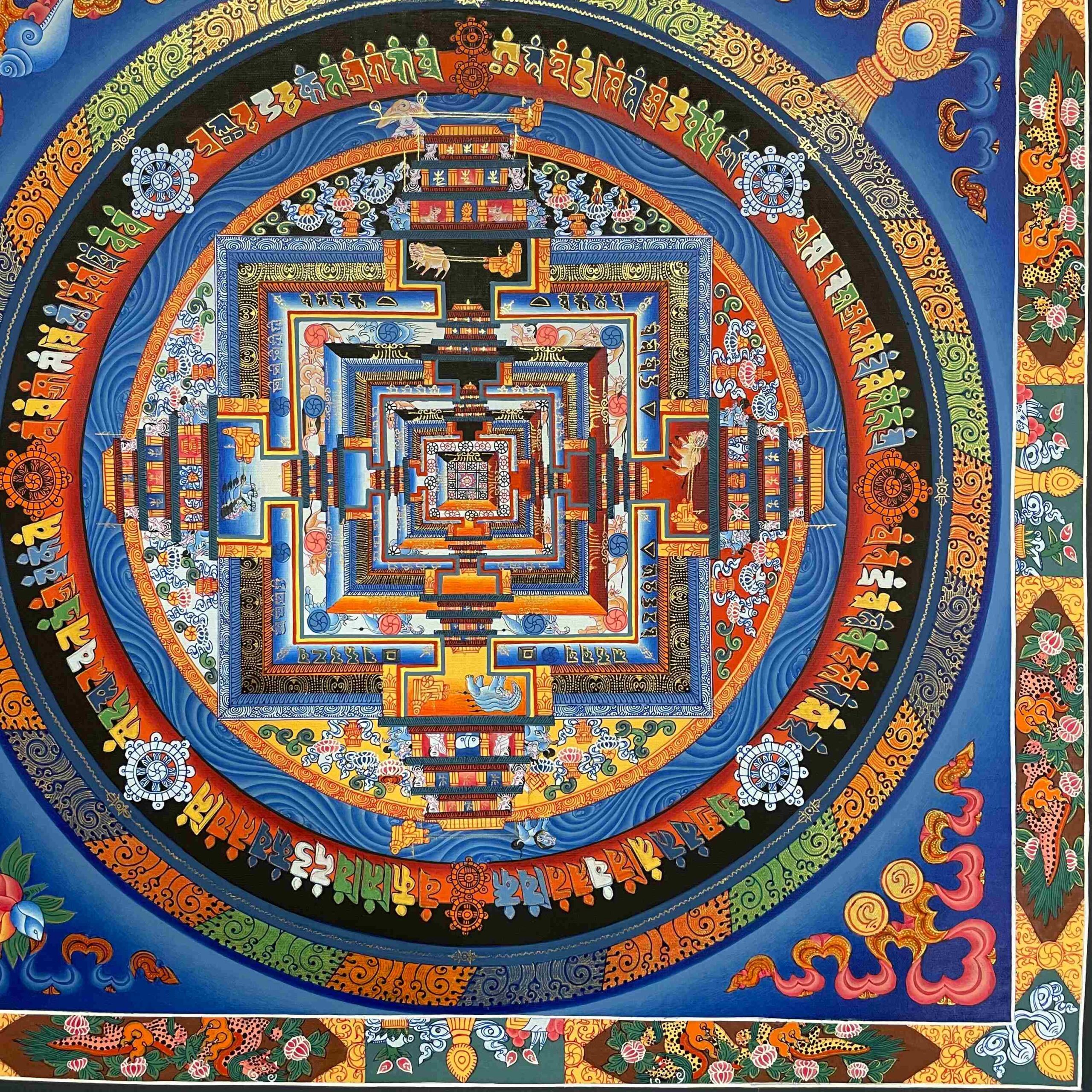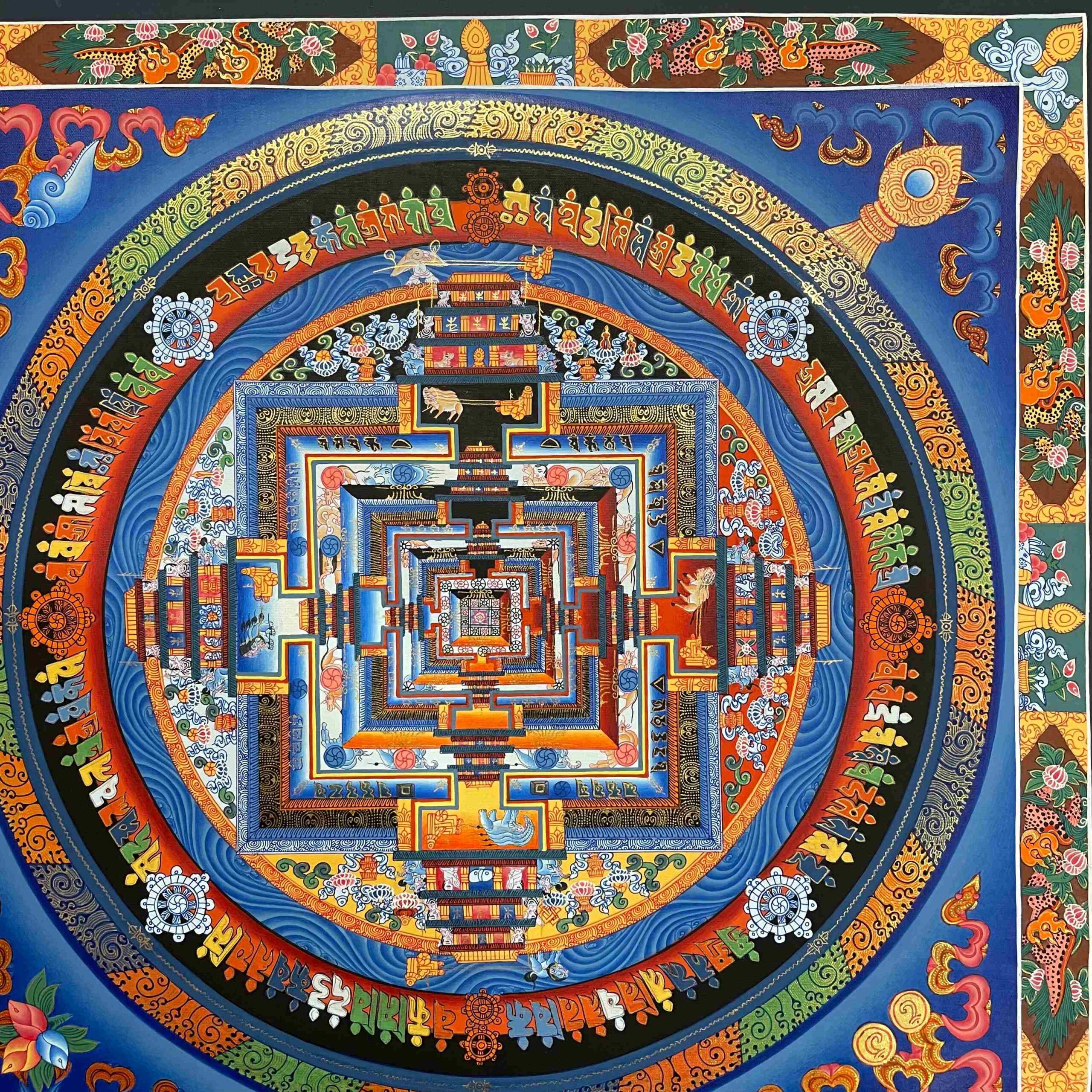 Buddhist Hand-Painted Kalachakra Mandala Thangka | Real Gold Accents
