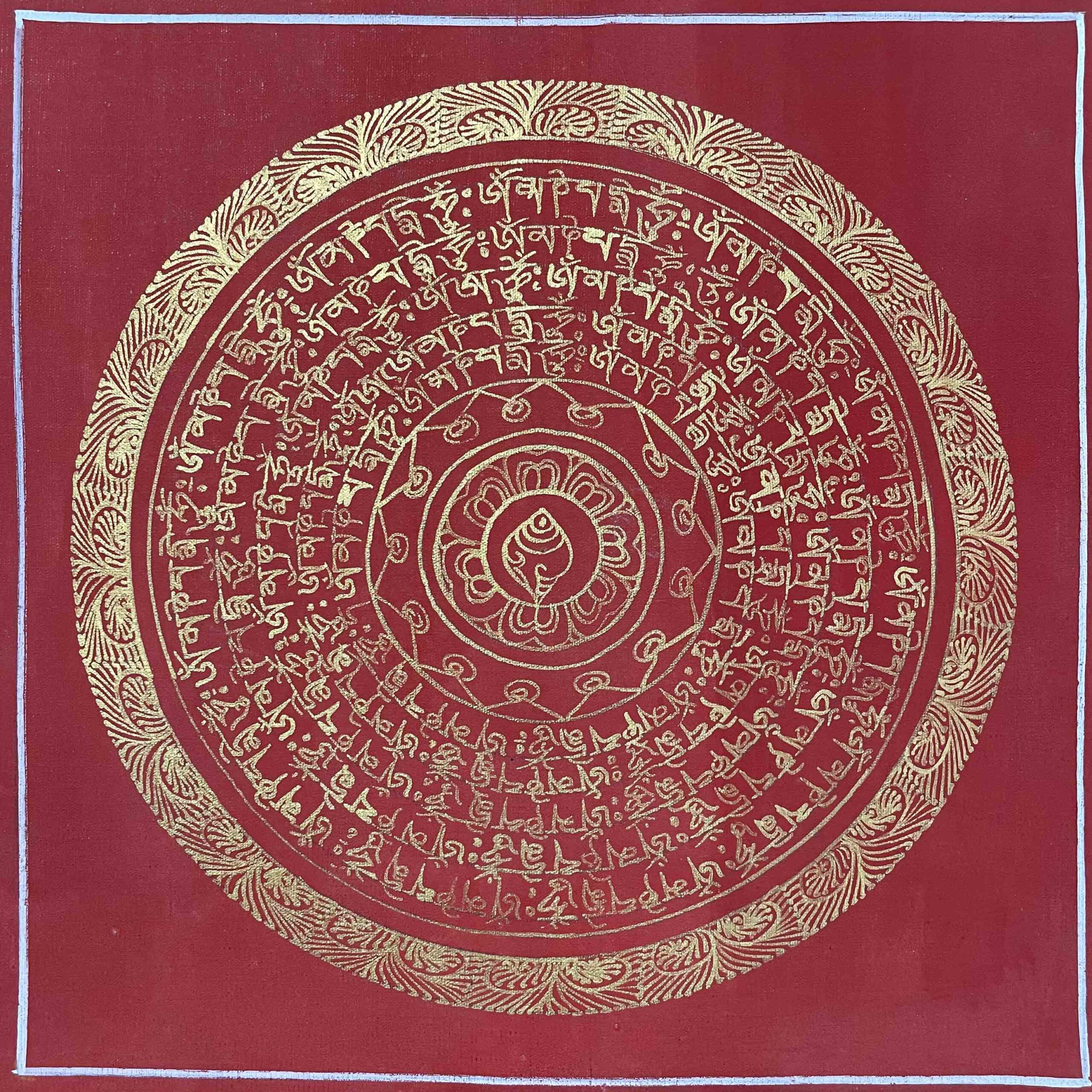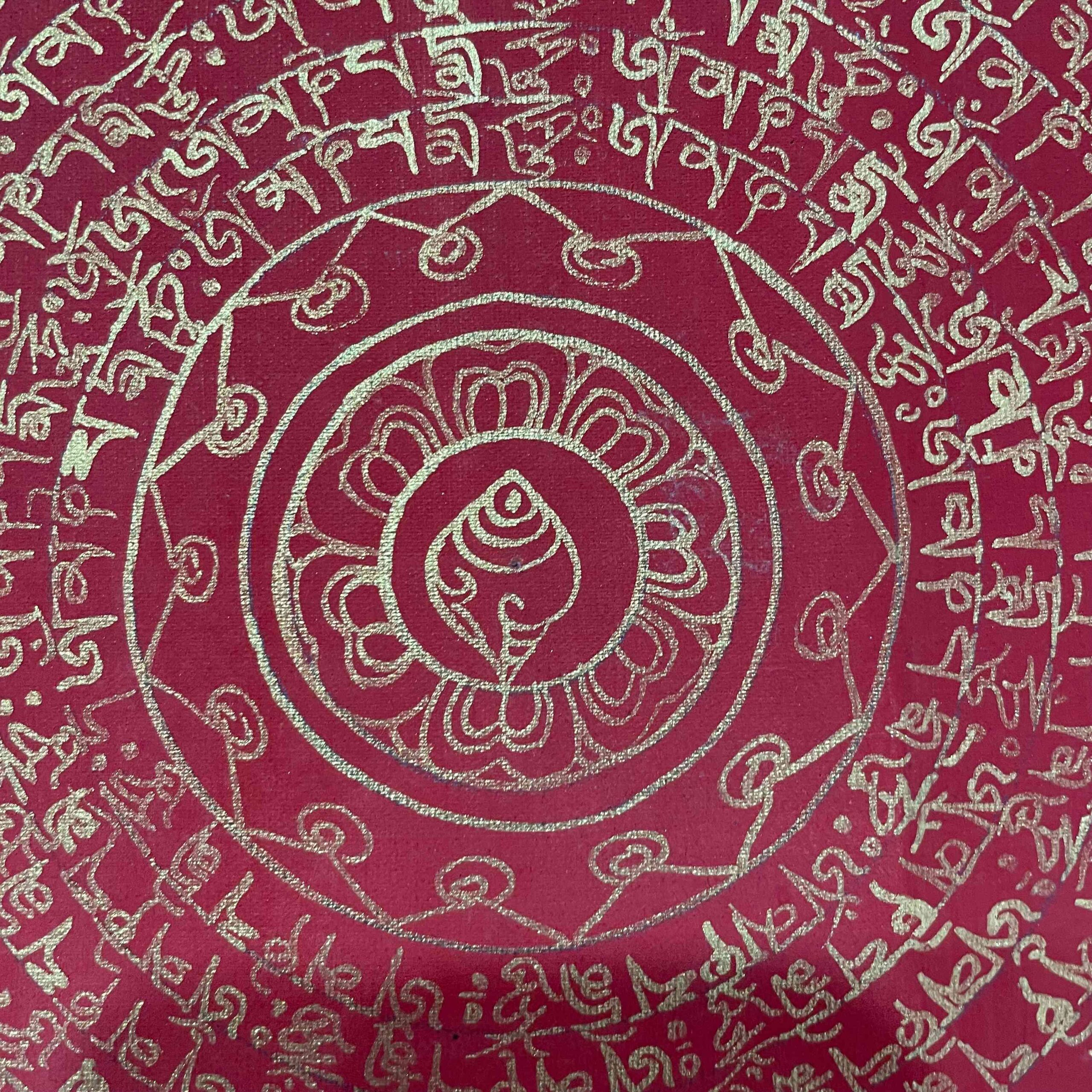 Buddhist Hand-Painted Mandala Thangka on Cotton Canvas – 8.5 x 8.5 Inches
