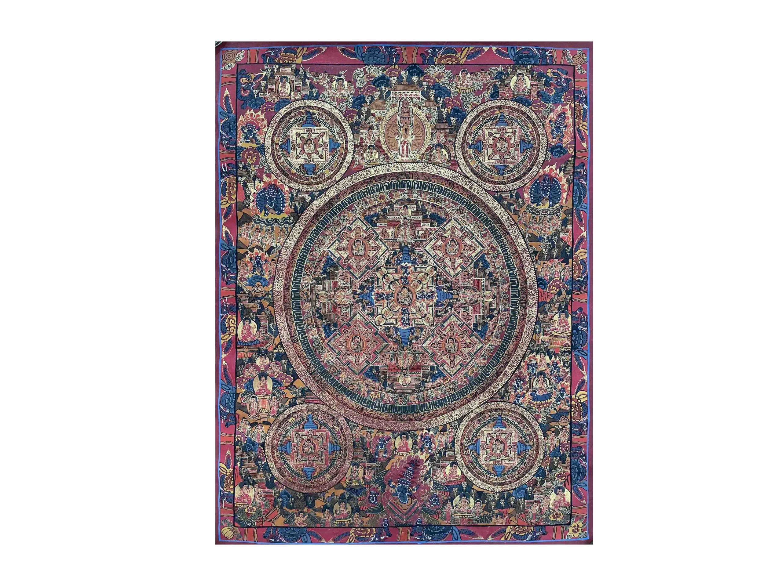 Buddhist Hand-Painted Pancha Buddha Mandala Thangka