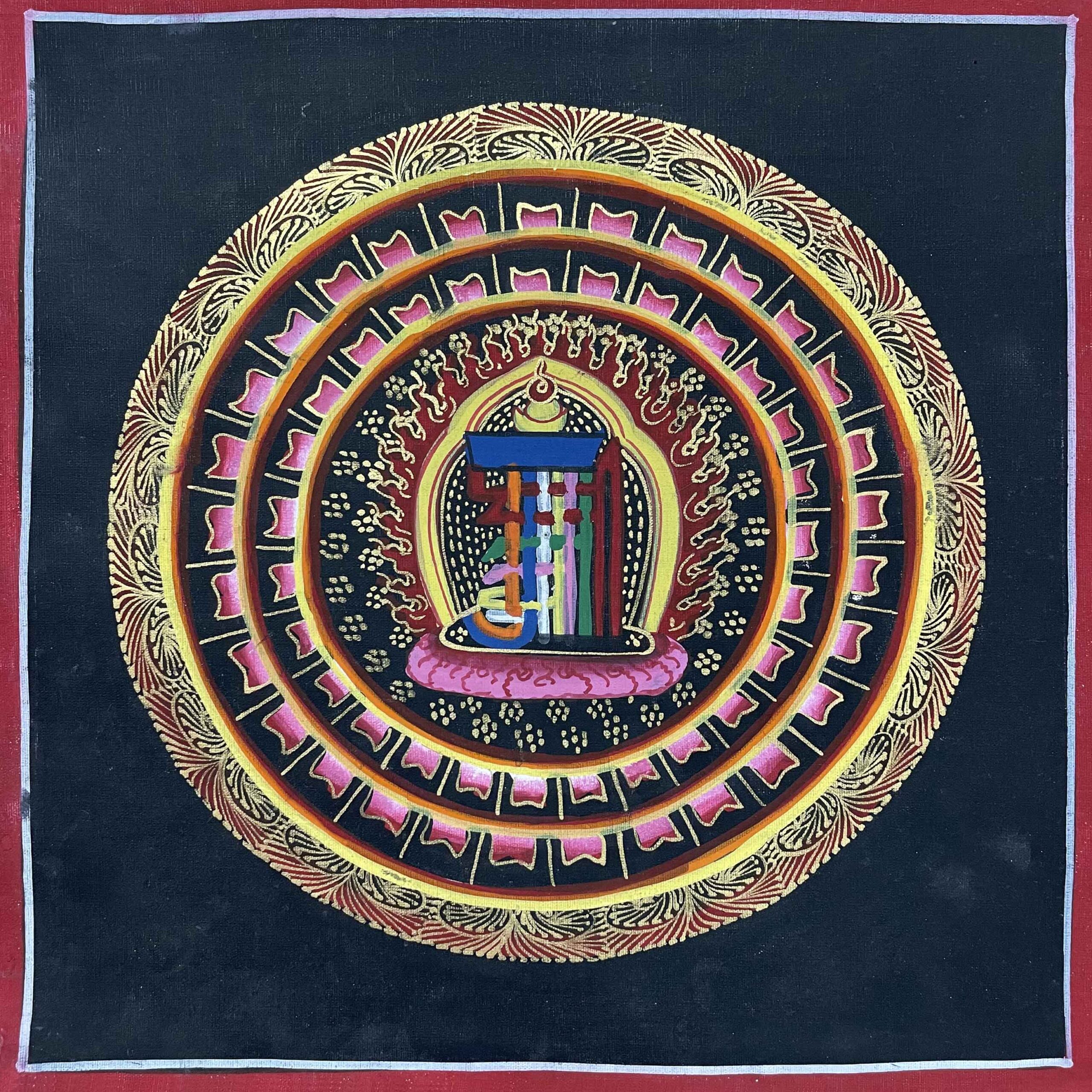 This mandala is lovingly painted by Mandala, a dedicated student of traditional Thangka painting. Trained at a local Thangka school in Nepal, Mandala has committed to preserving this sacred art form by creating accessible, authentic works that reflect their growing skill and passion. These student Thangkas are offered at a more affordable price to support their learning journey and to help sustain the continuity of this vanishing tradition.