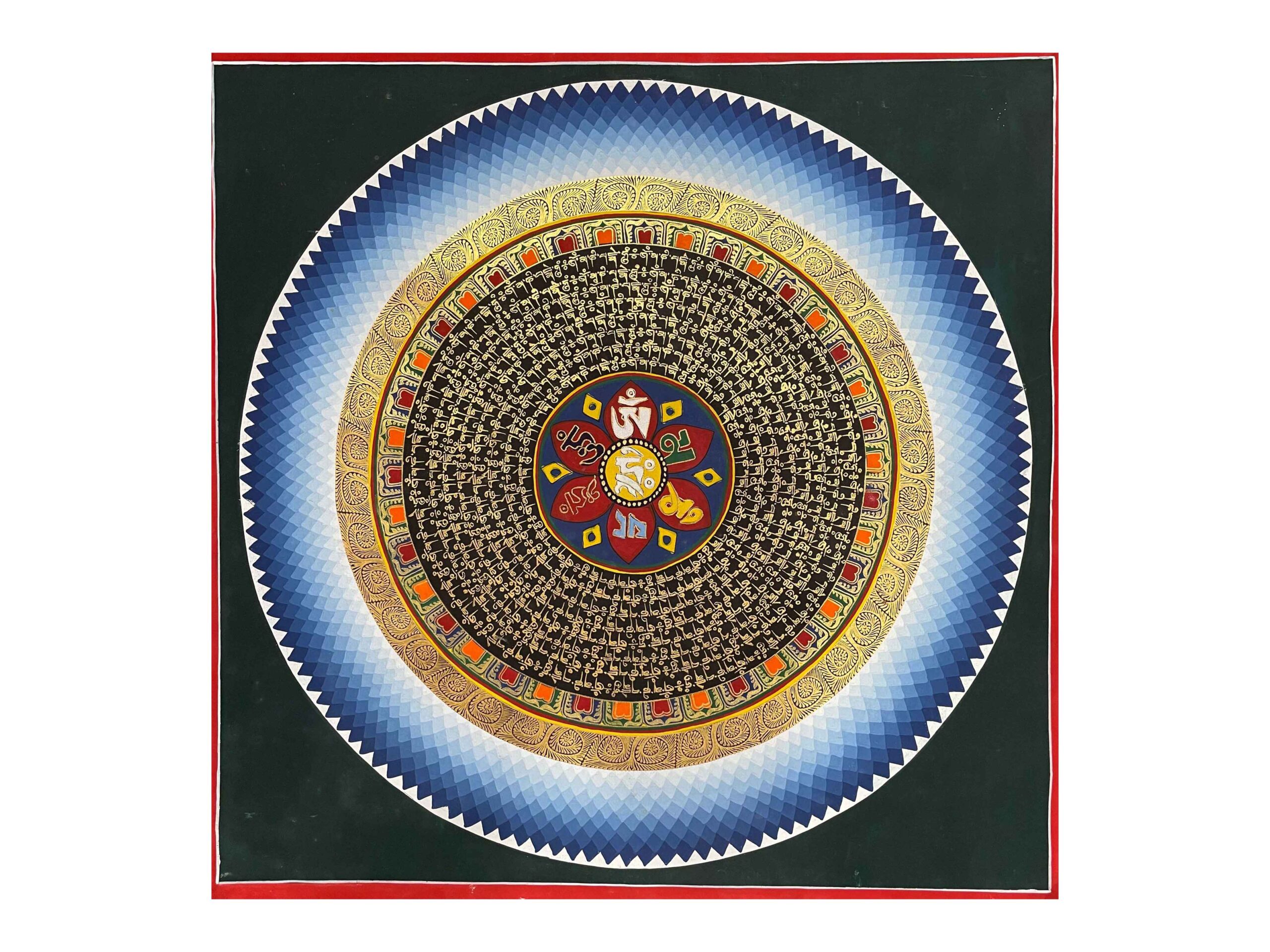This hand-painted Mandala Thangka represents the intricate spiritual and cosmic symbolism of Tibetan Buddhism. Centered around geometric precision and sacred iconography, the mandala is a visual map of the universe and a guide toward spiritual awakening and inner harmony. Artists use natural mineral pigments on cotton canvas to craft each detail with patience and intention, turning the painting itself into a form of meditative practice.