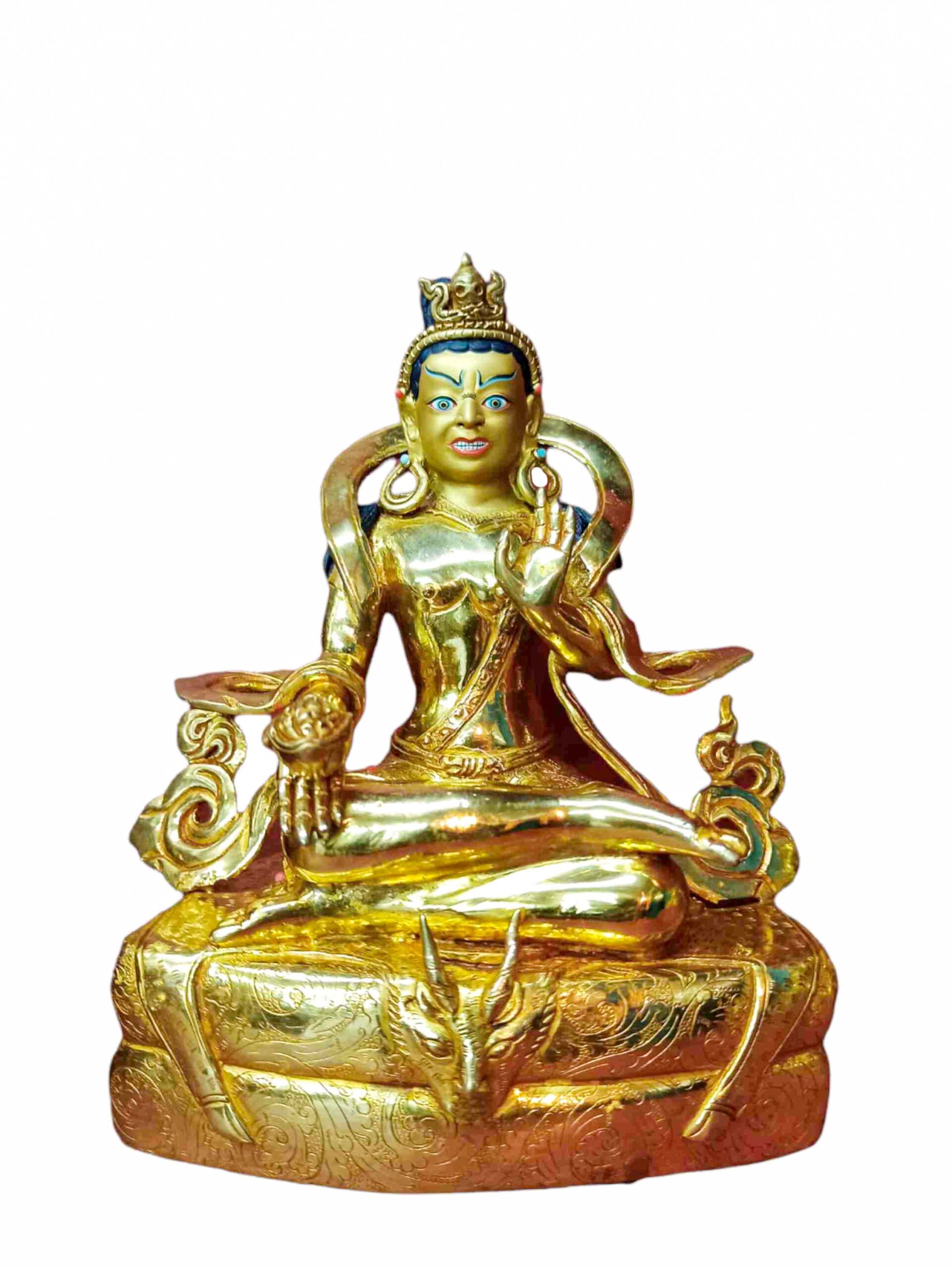 Buddhist Handmade Statue of Naropa – Full Gold Plated, Stone Setting, Face Painted