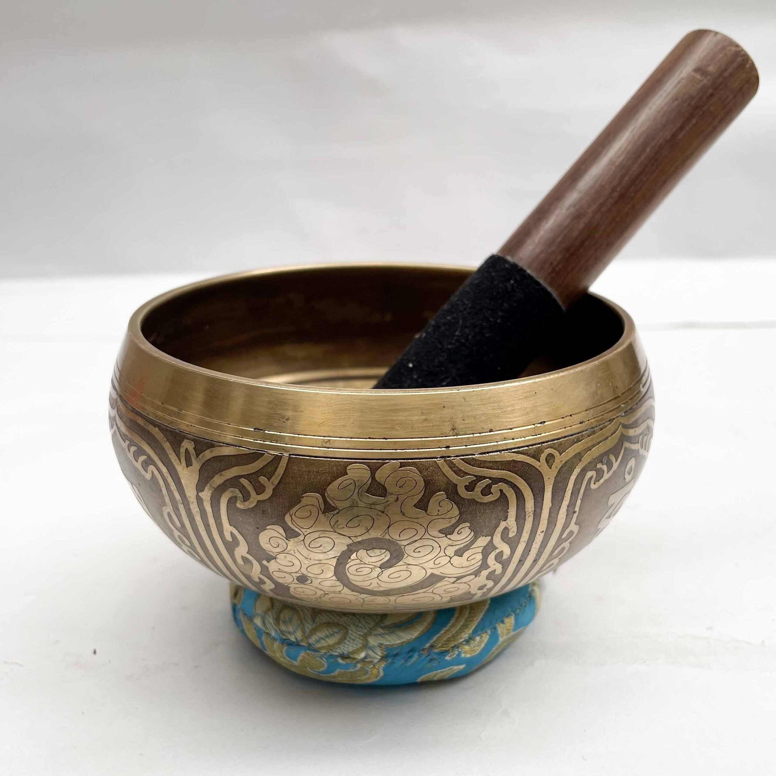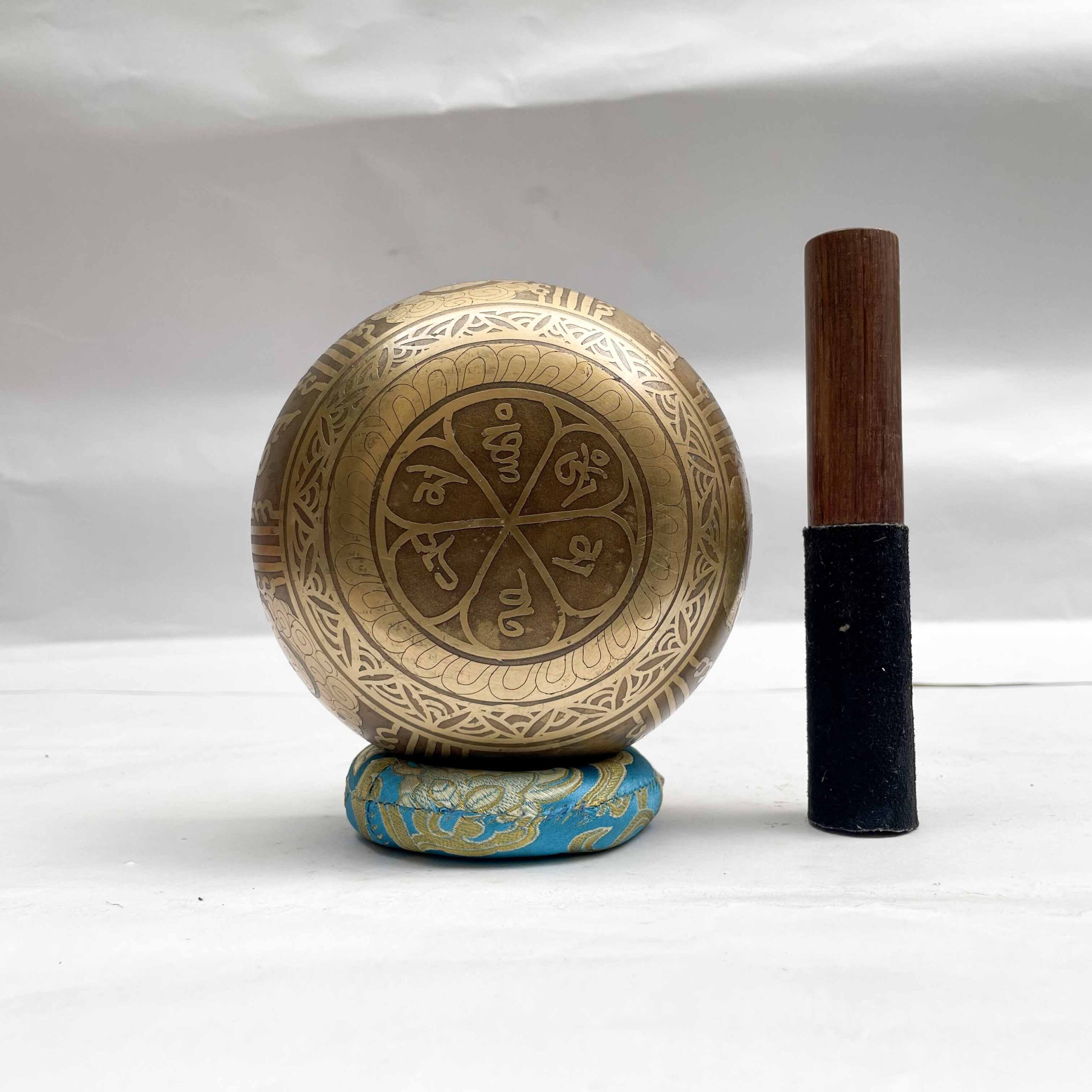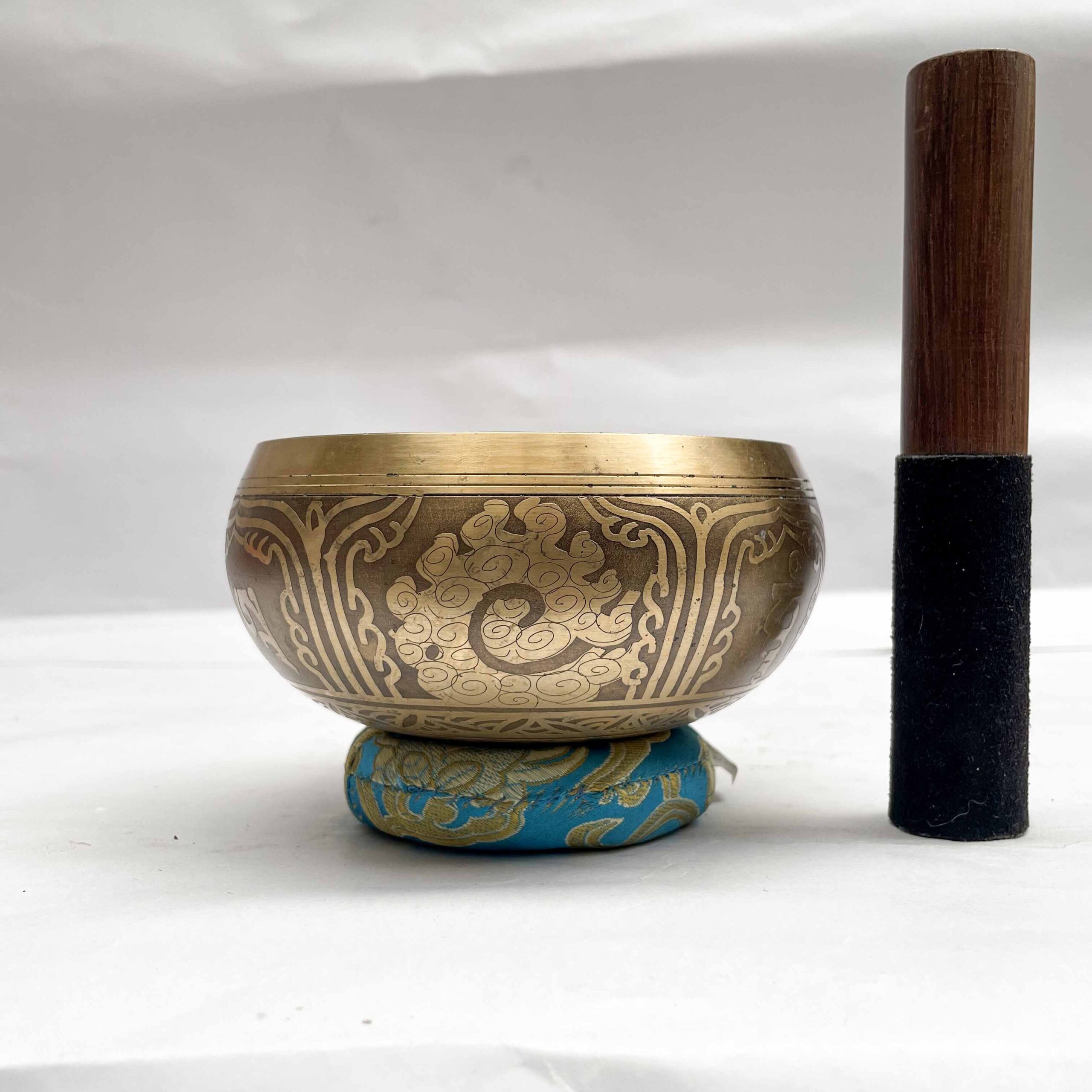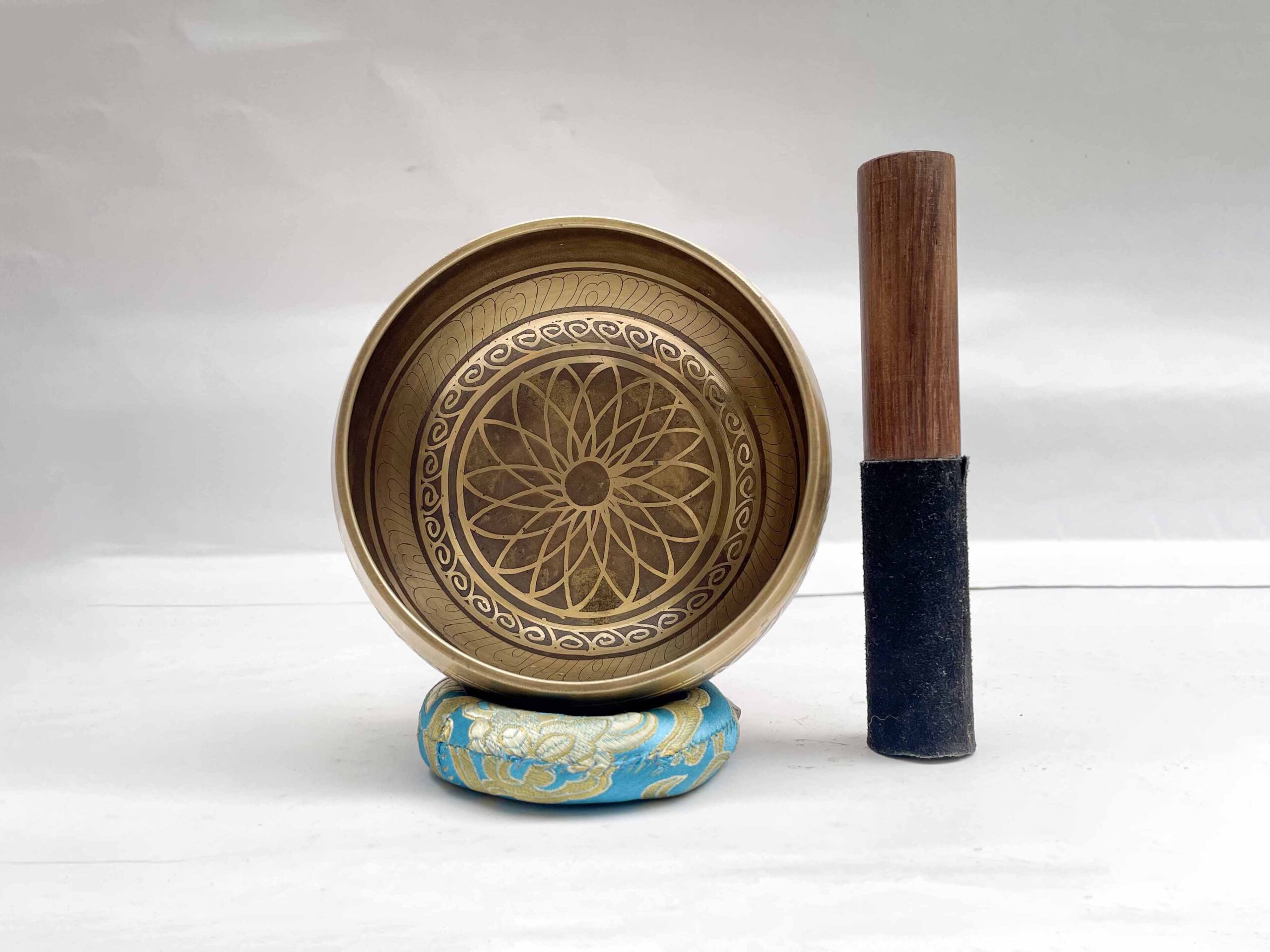 Buddhist Singing Bowl with Flower Design & Carving