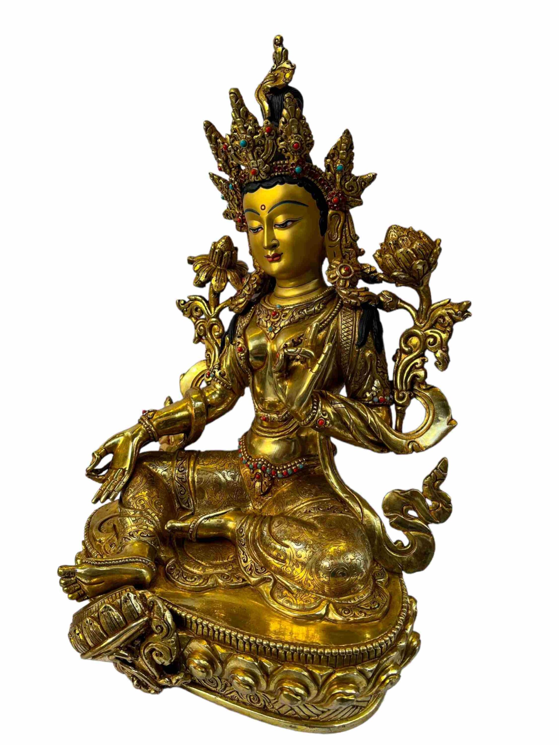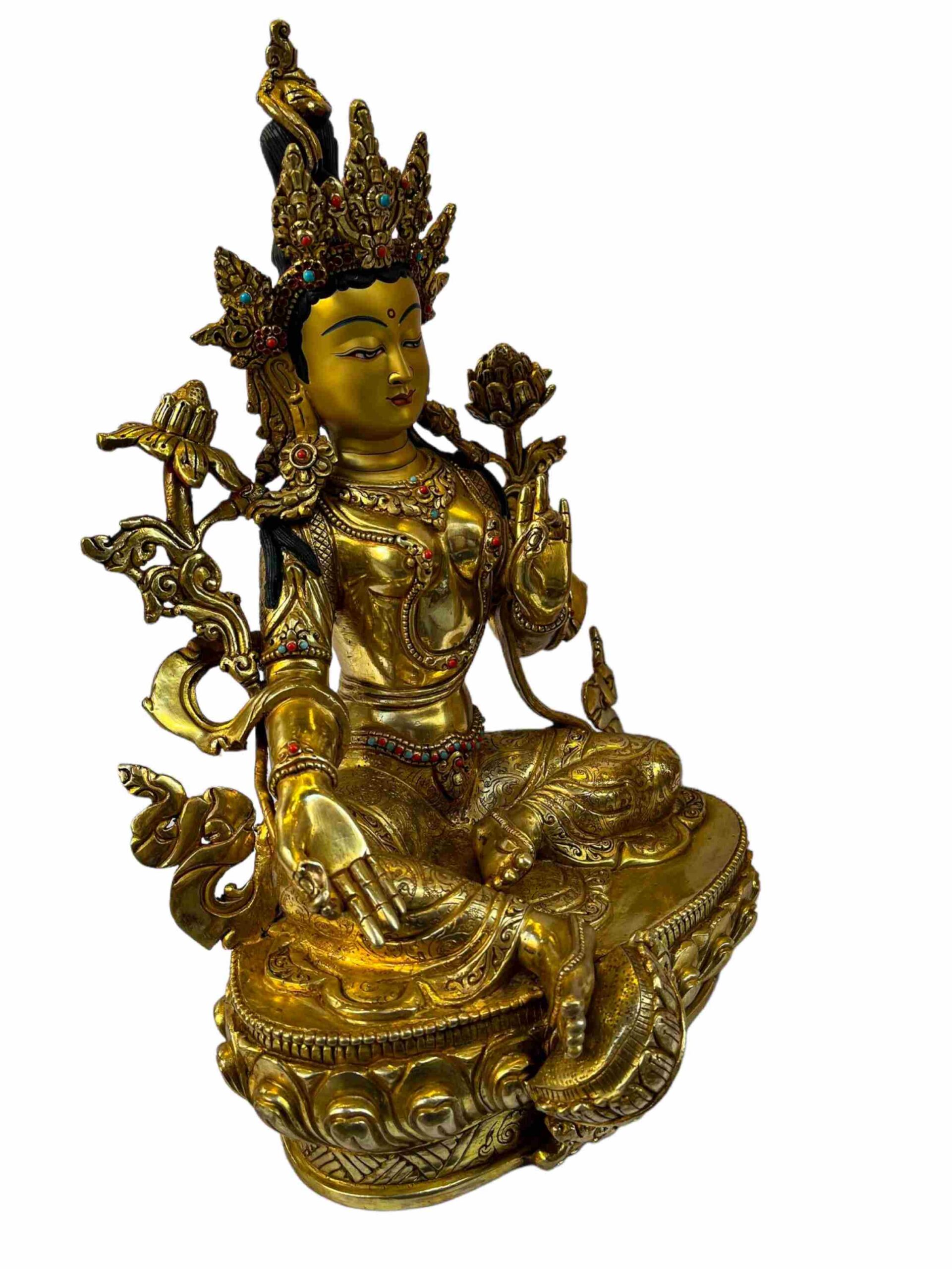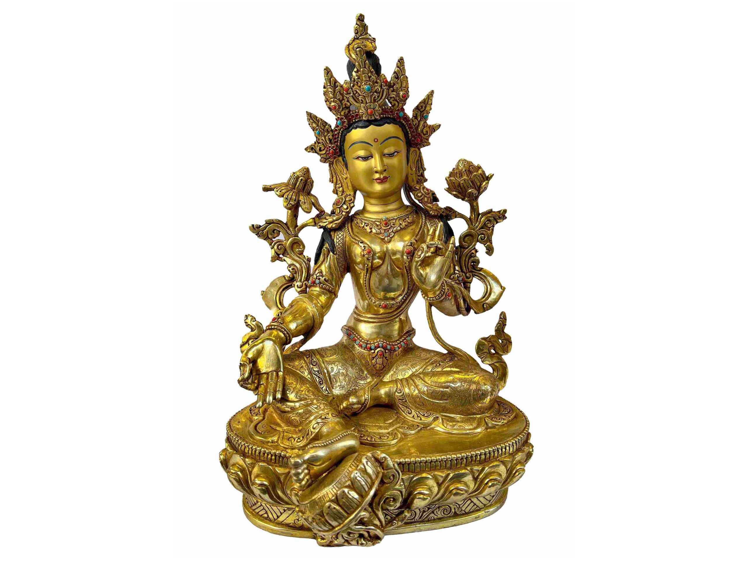 Buddhist Statue of Green Tara – Full Gold Plated with Painted Face