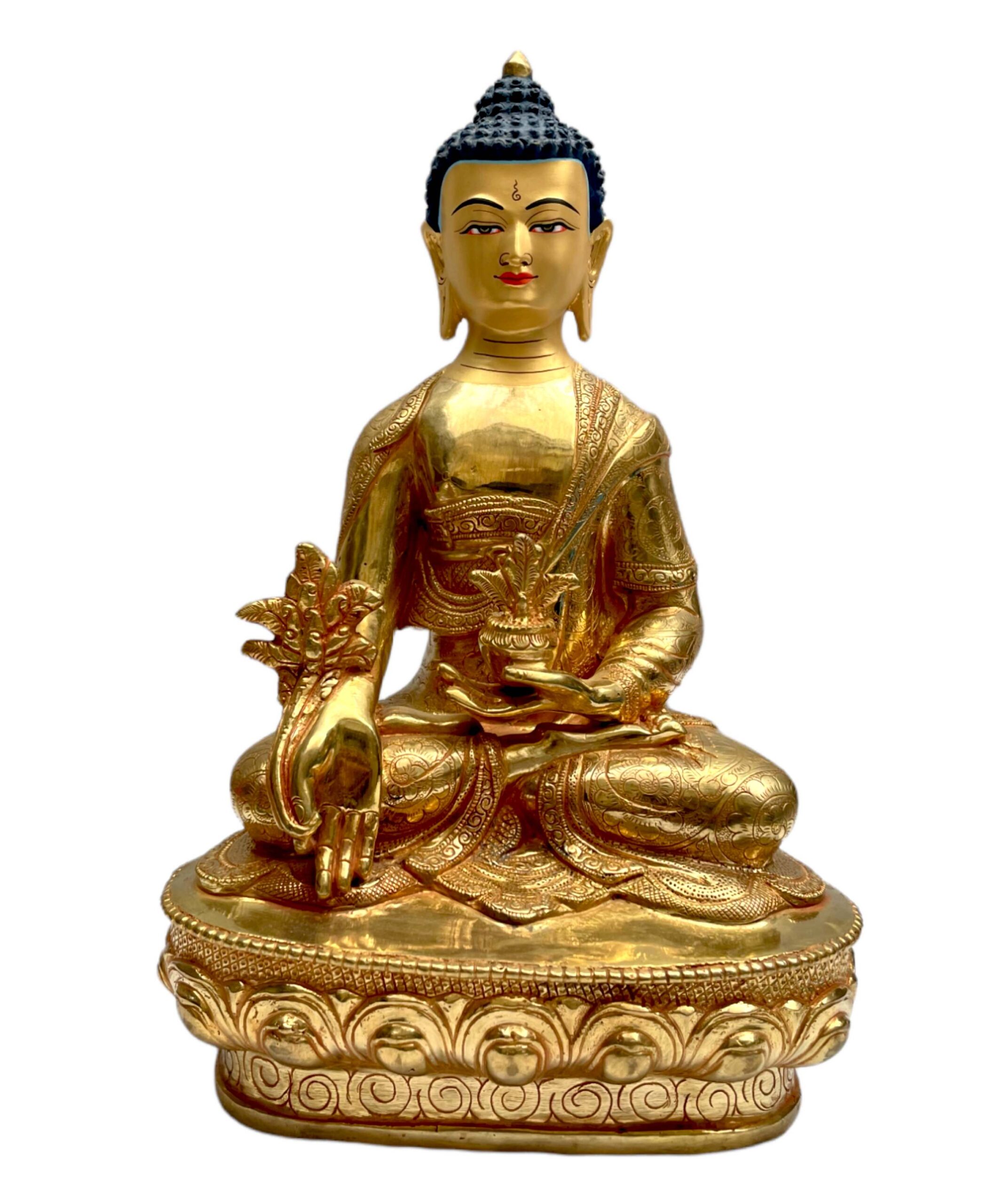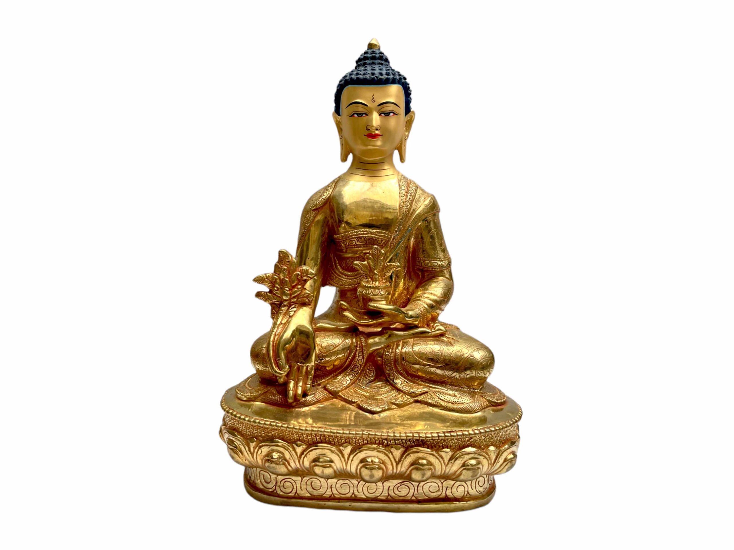 Embrace the healing and spiritual energy of the Medicine Buddha with this intricately crafted, gold-plated statue. A timeless addition to your sacred space, bringing peace, healing, and protection to all who encounter it.