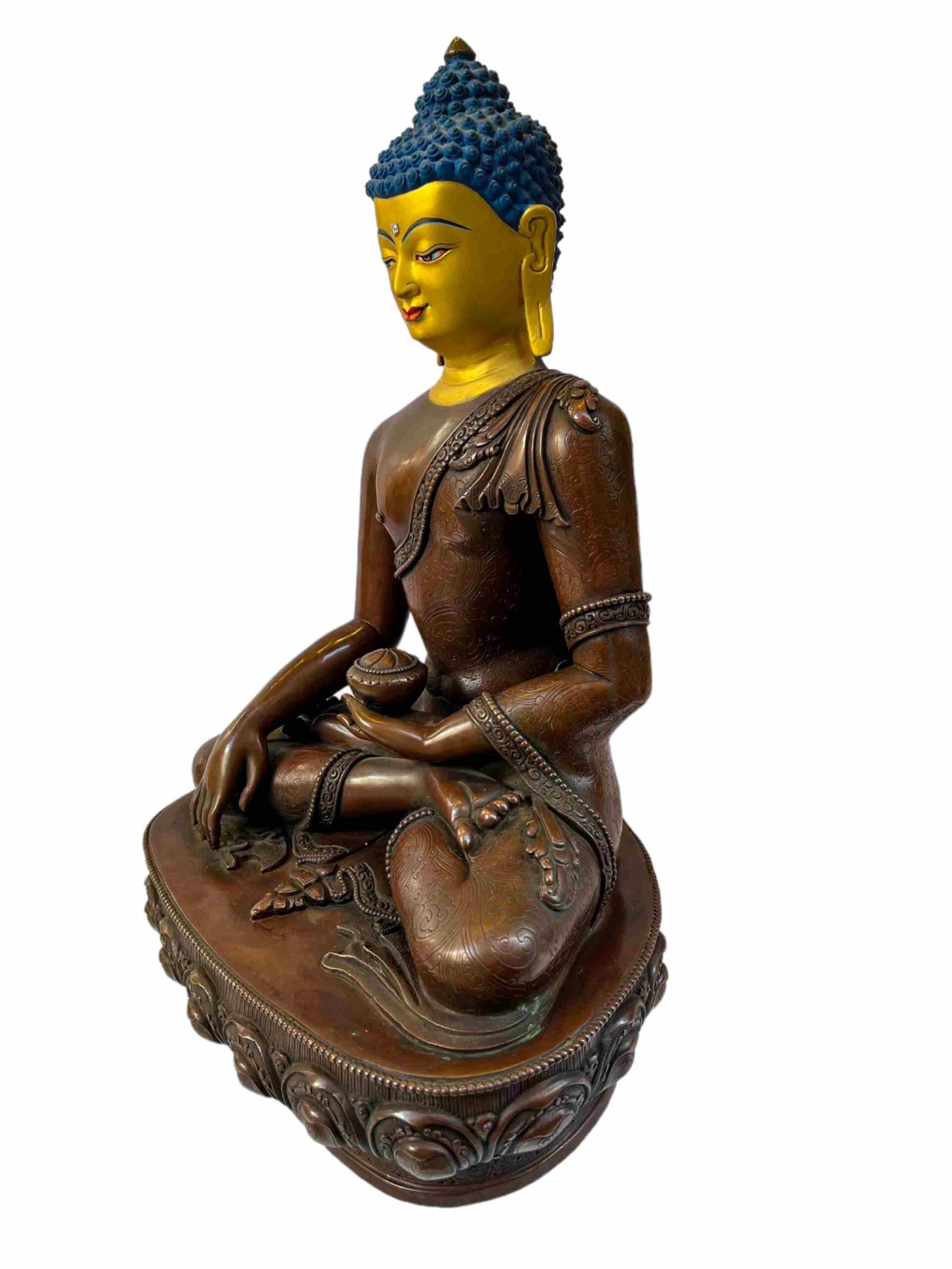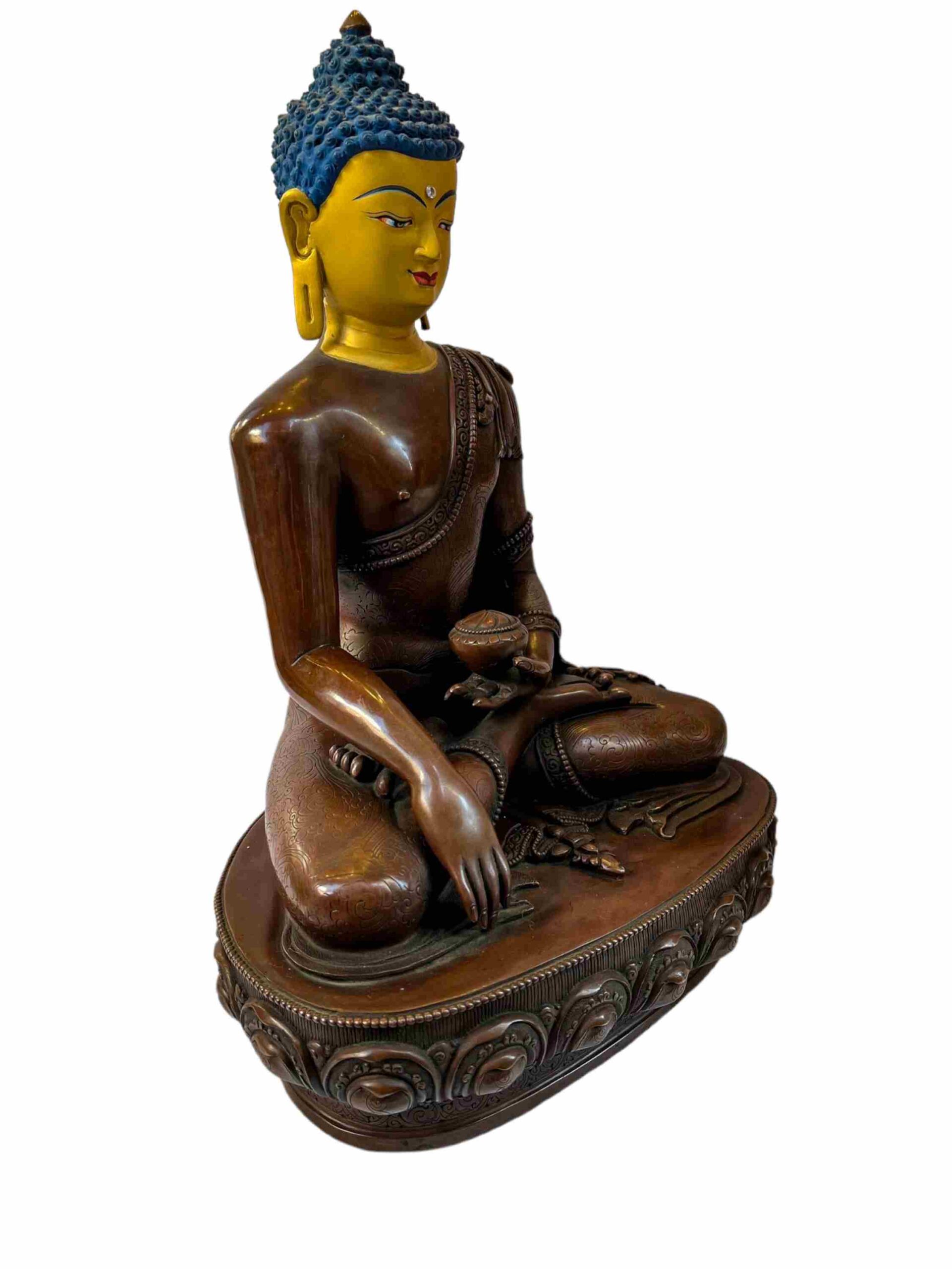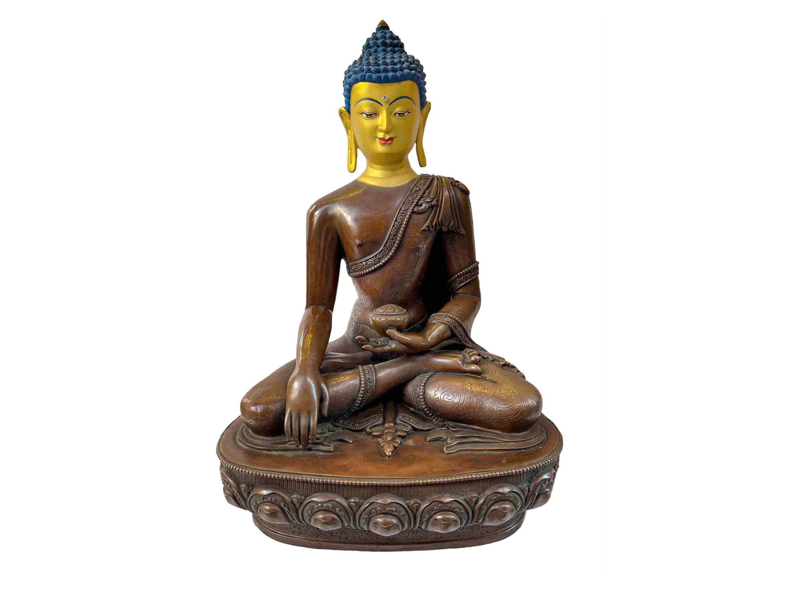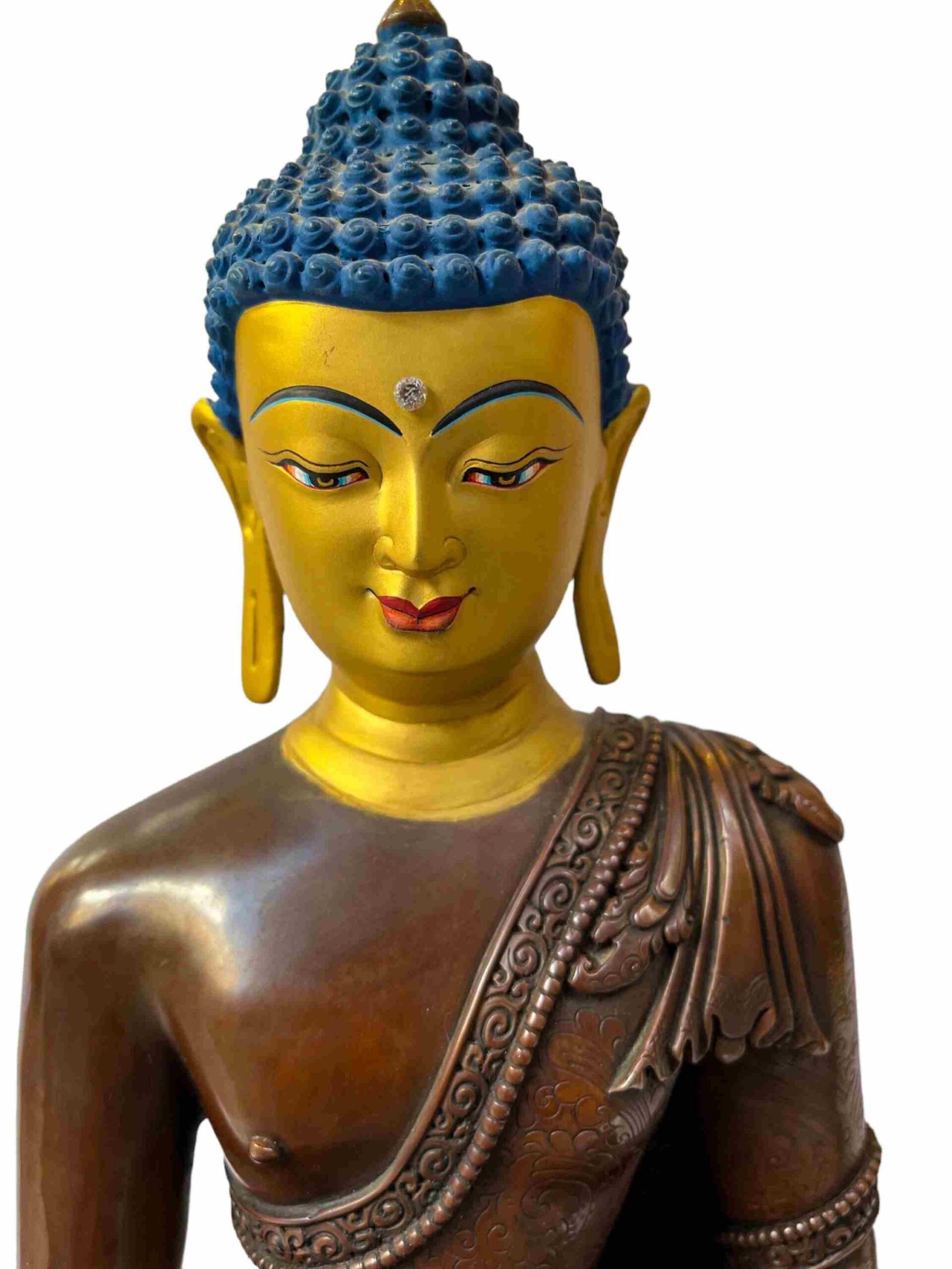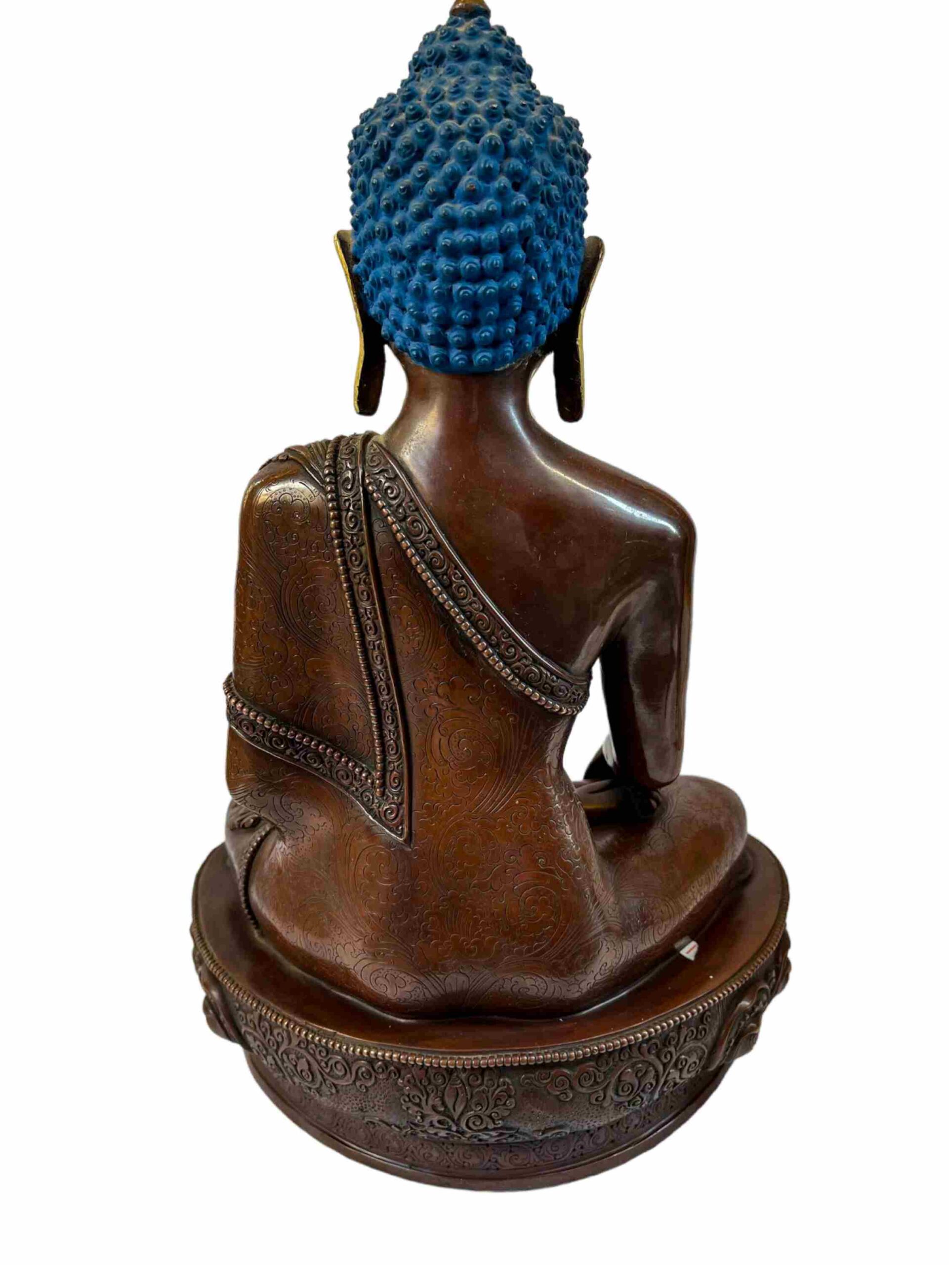 Buddhist Statue of Shakyamuni Buddha – Chocolate Oxidized with Painted Face
