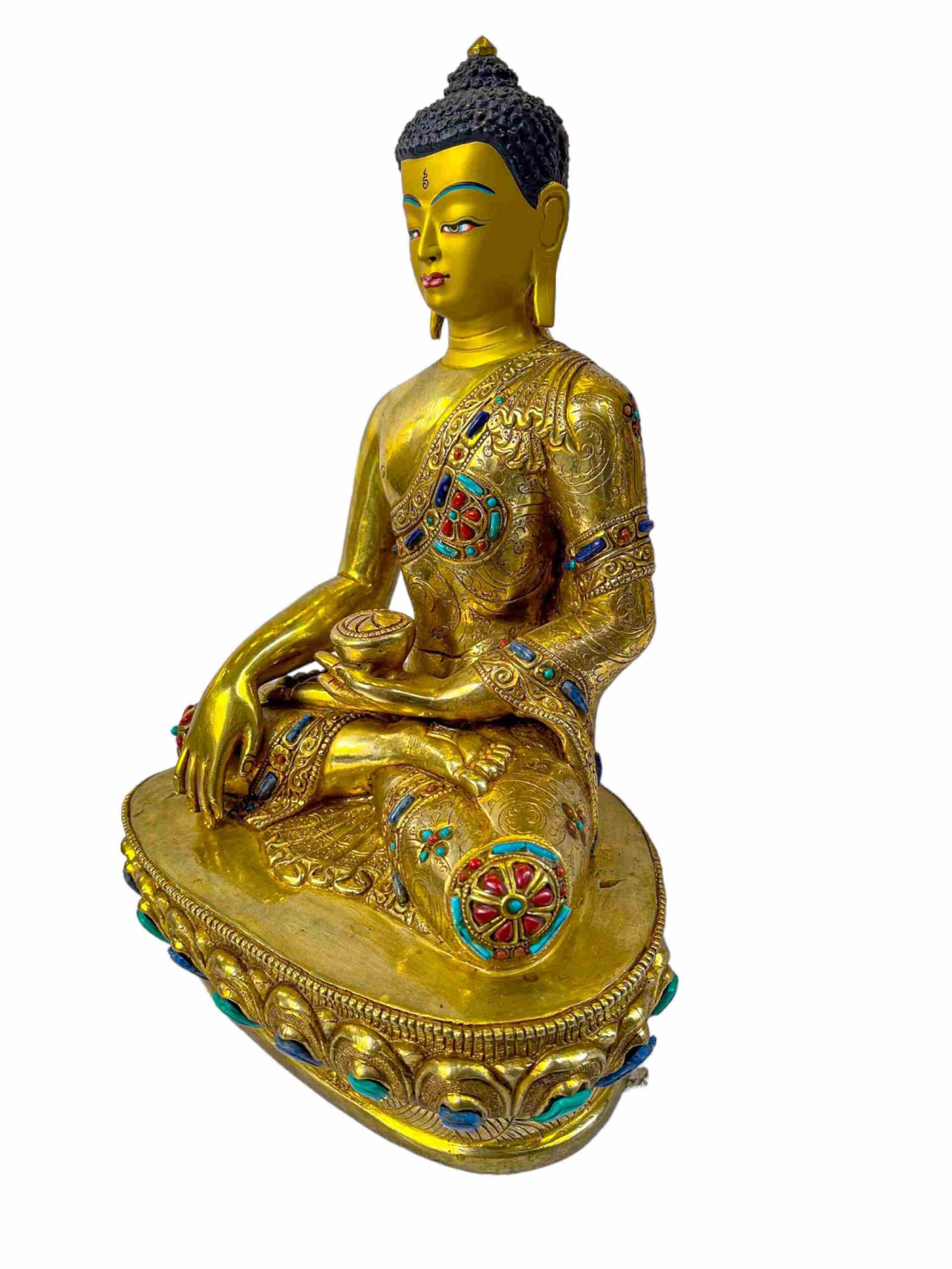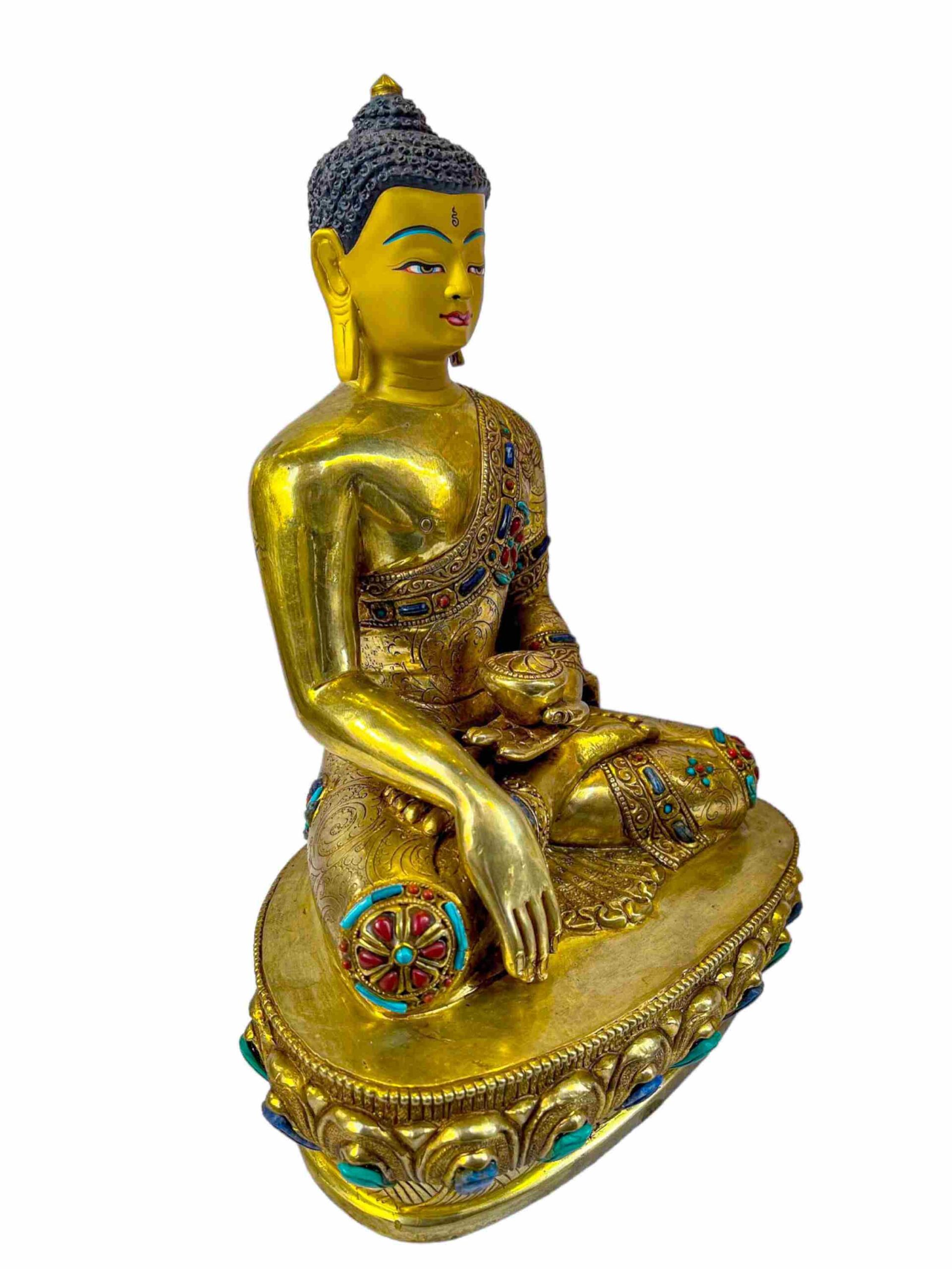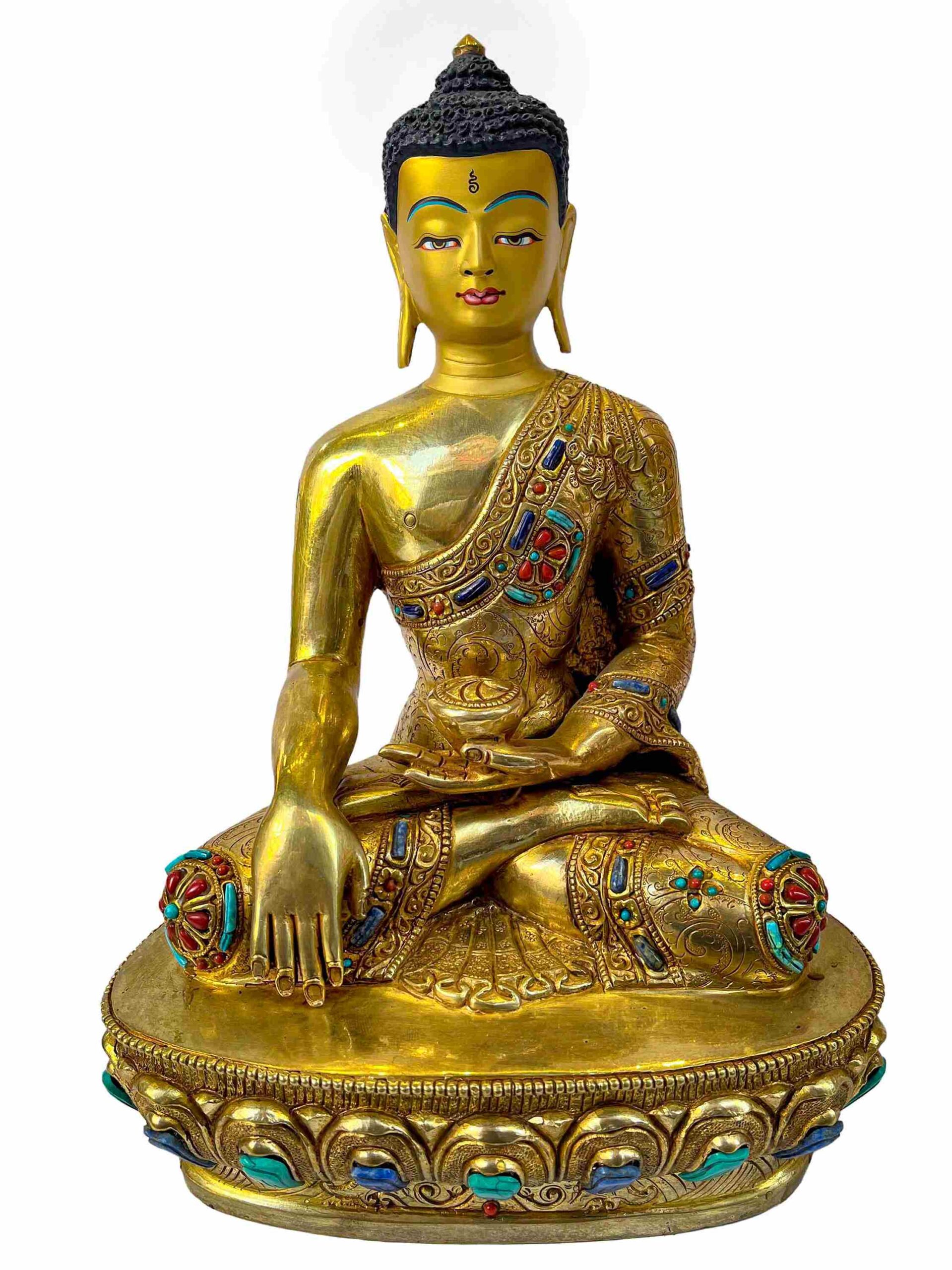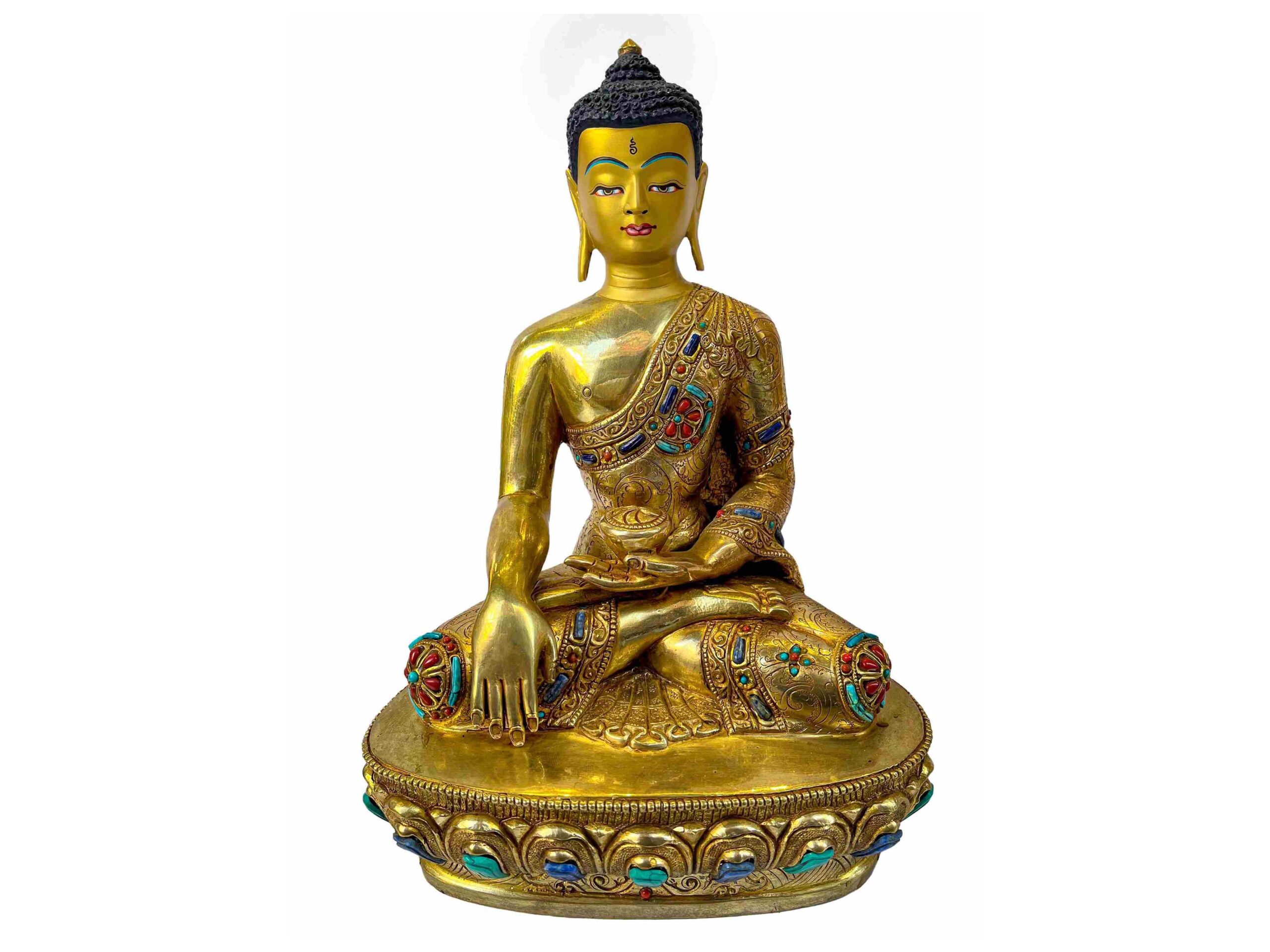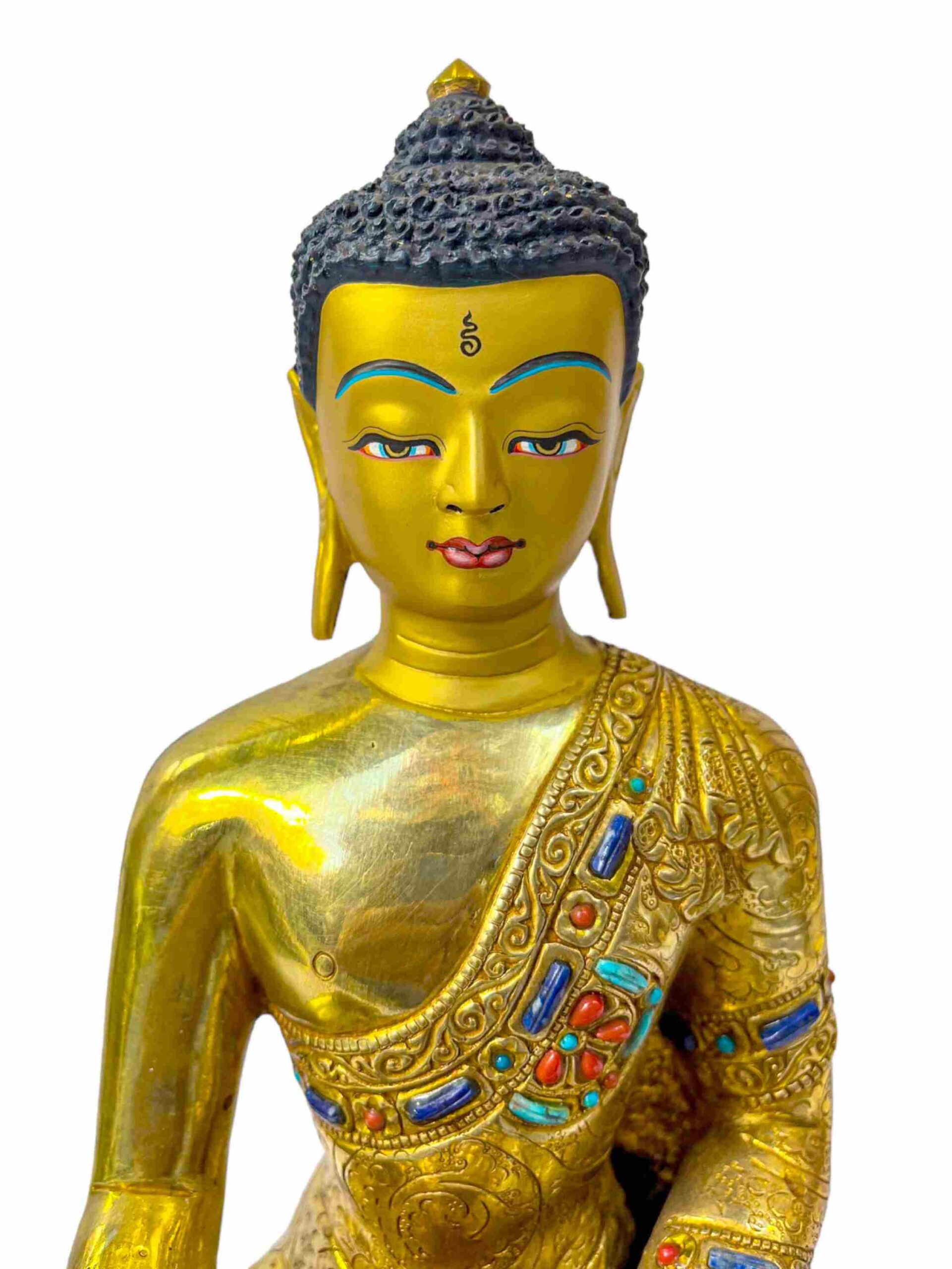 Buddhist Statue of Shakyamuni Buddha – Full Gold Plated with Painted Face