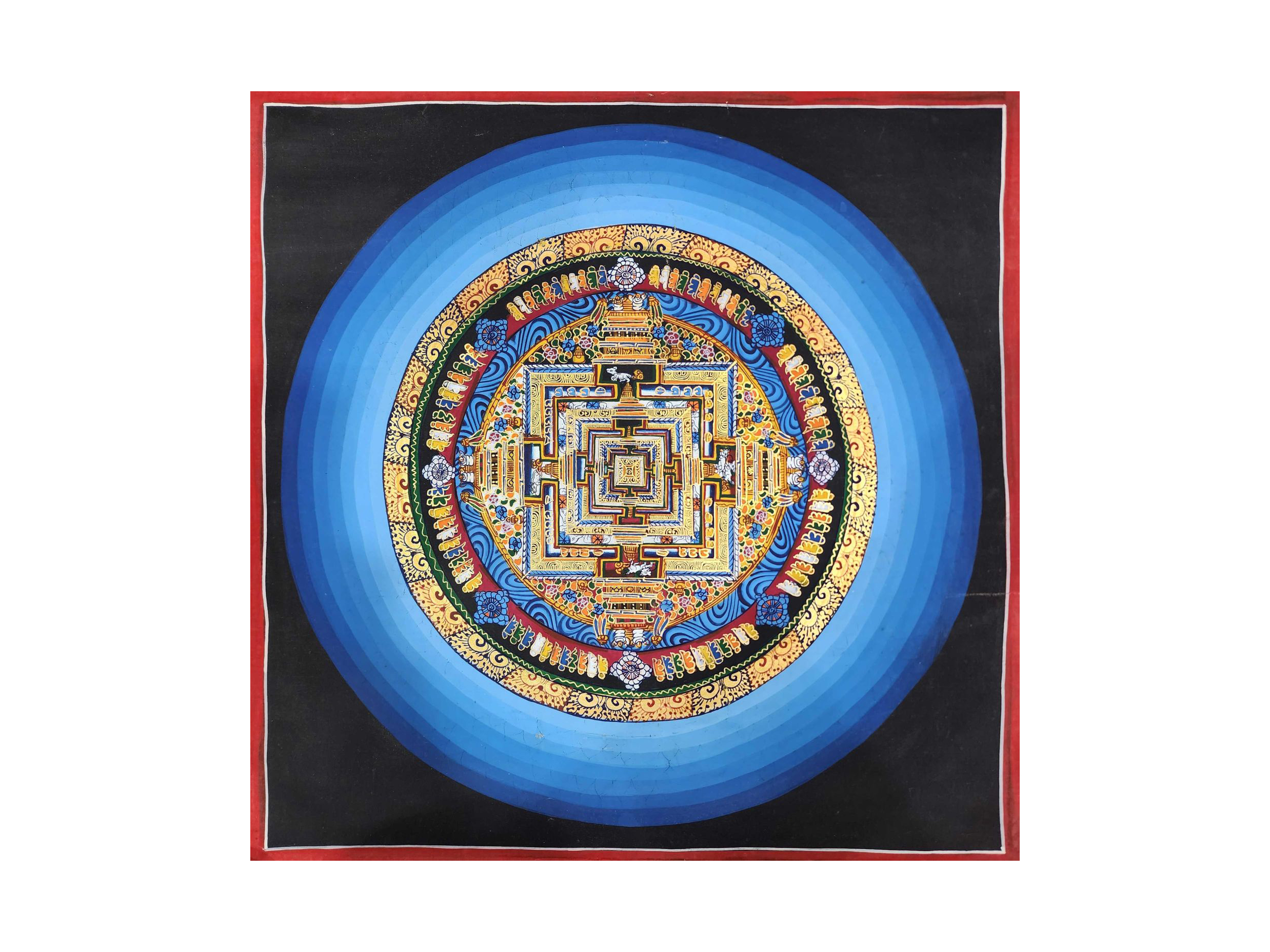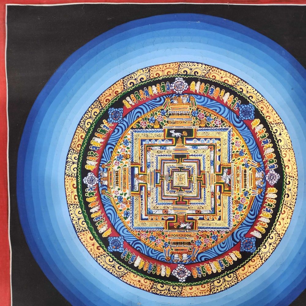 Buddhist Tibetan Thangka of Kalachakra Mandala – Hand-Painted, Blue Rainbow Design (Antique Finish, Minor Damage)