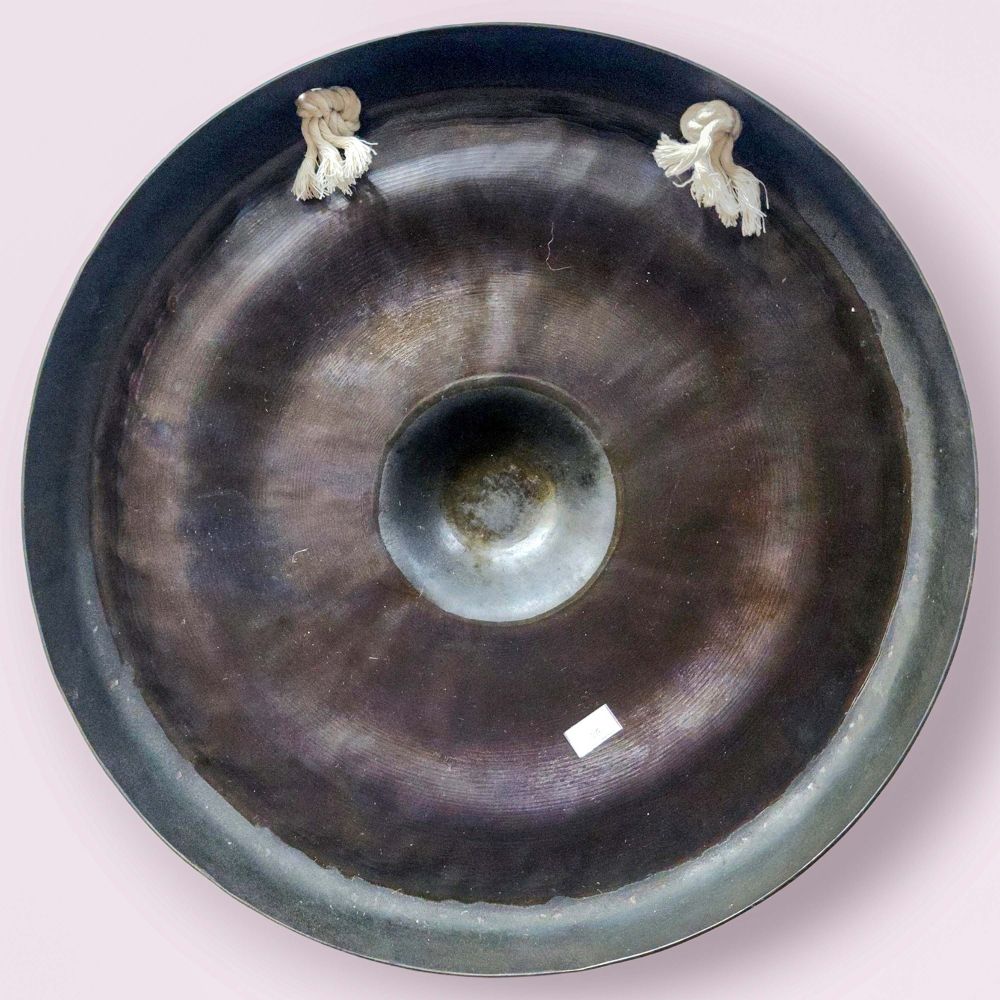 Burmese gongs have a long-standing tradition and are closely connected to gong-making cultures of neighboring regions like Thailand. Popular types include temple gongs and the triangular Kyeezee or “spinning” gongs. This particular style blends the traditional Burmese craftsmanship with influences from Javanese gong design, resulting in a piece that is both musically rich and visually captivating.