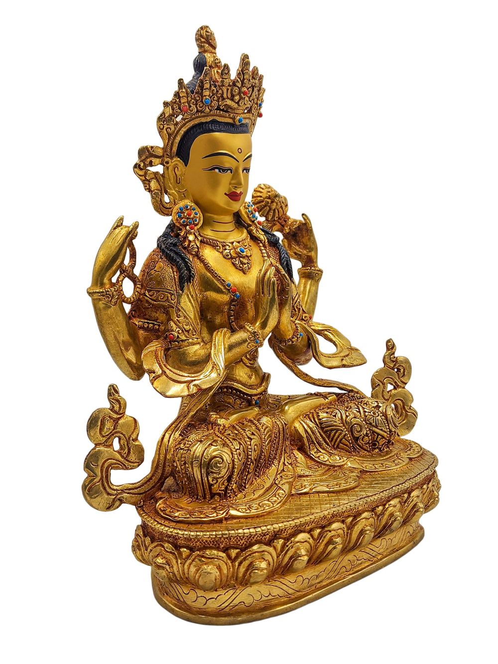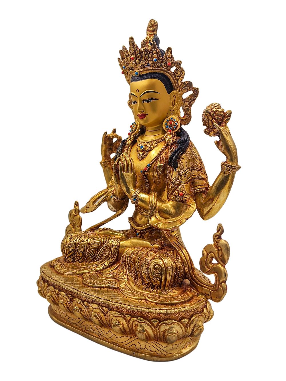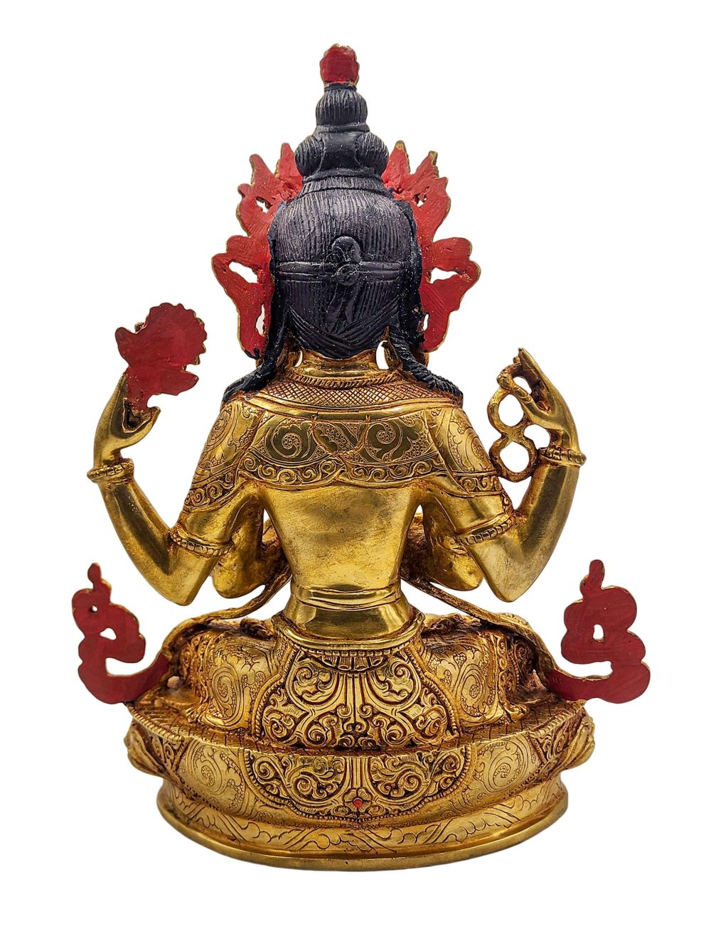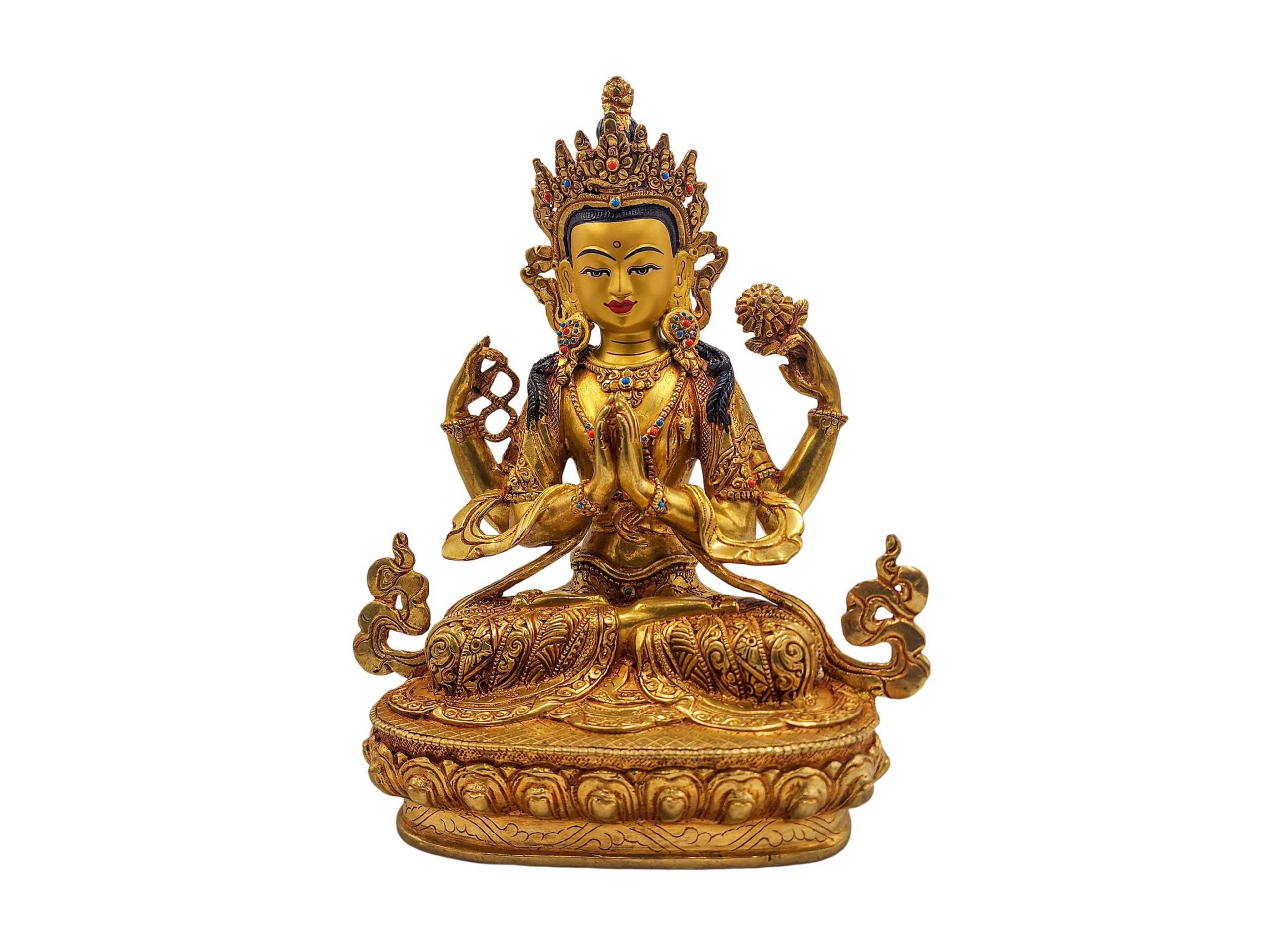 Chenrezig, Buddhist Handmade Statue, Gold Plated and Face Painted