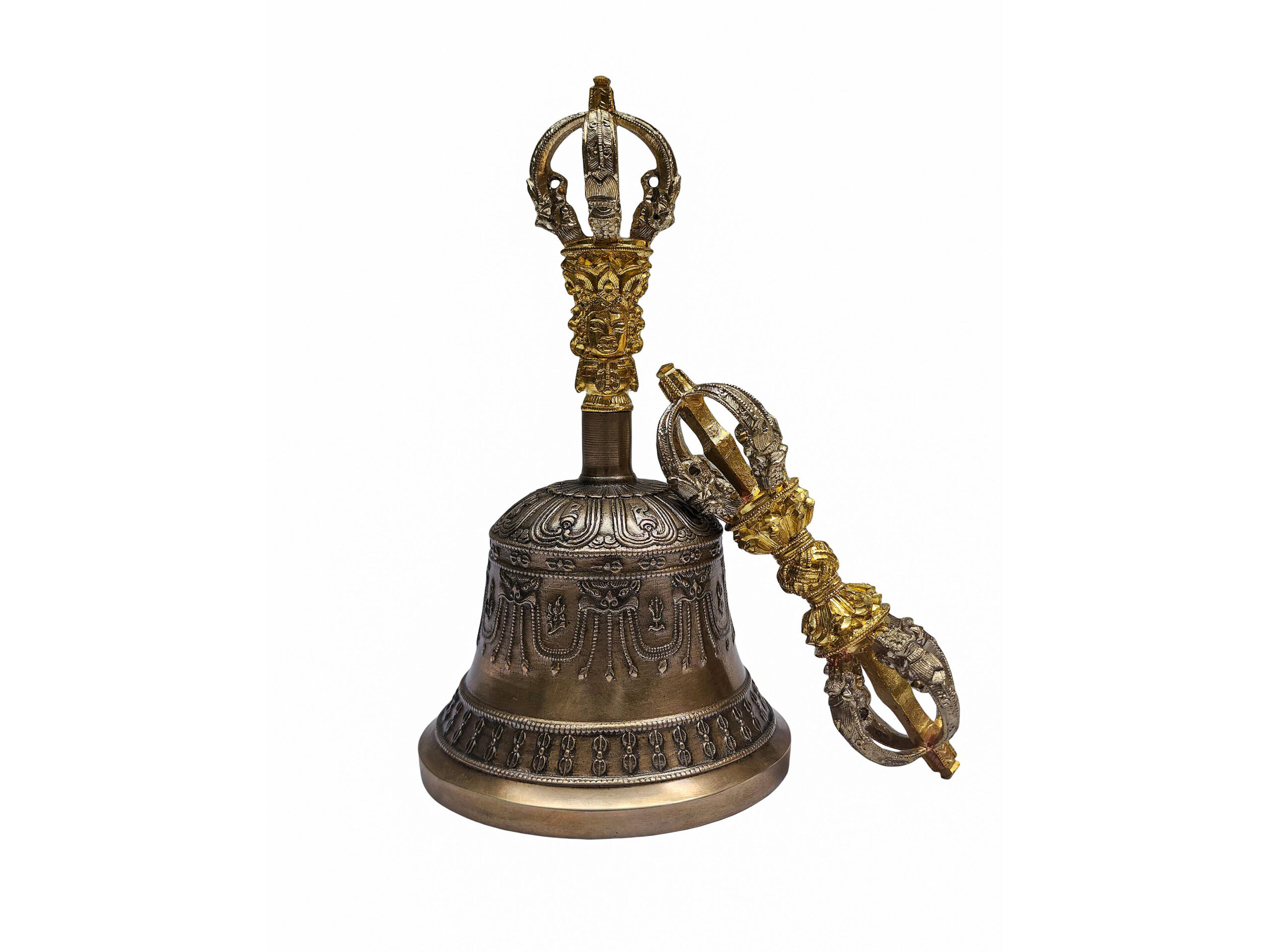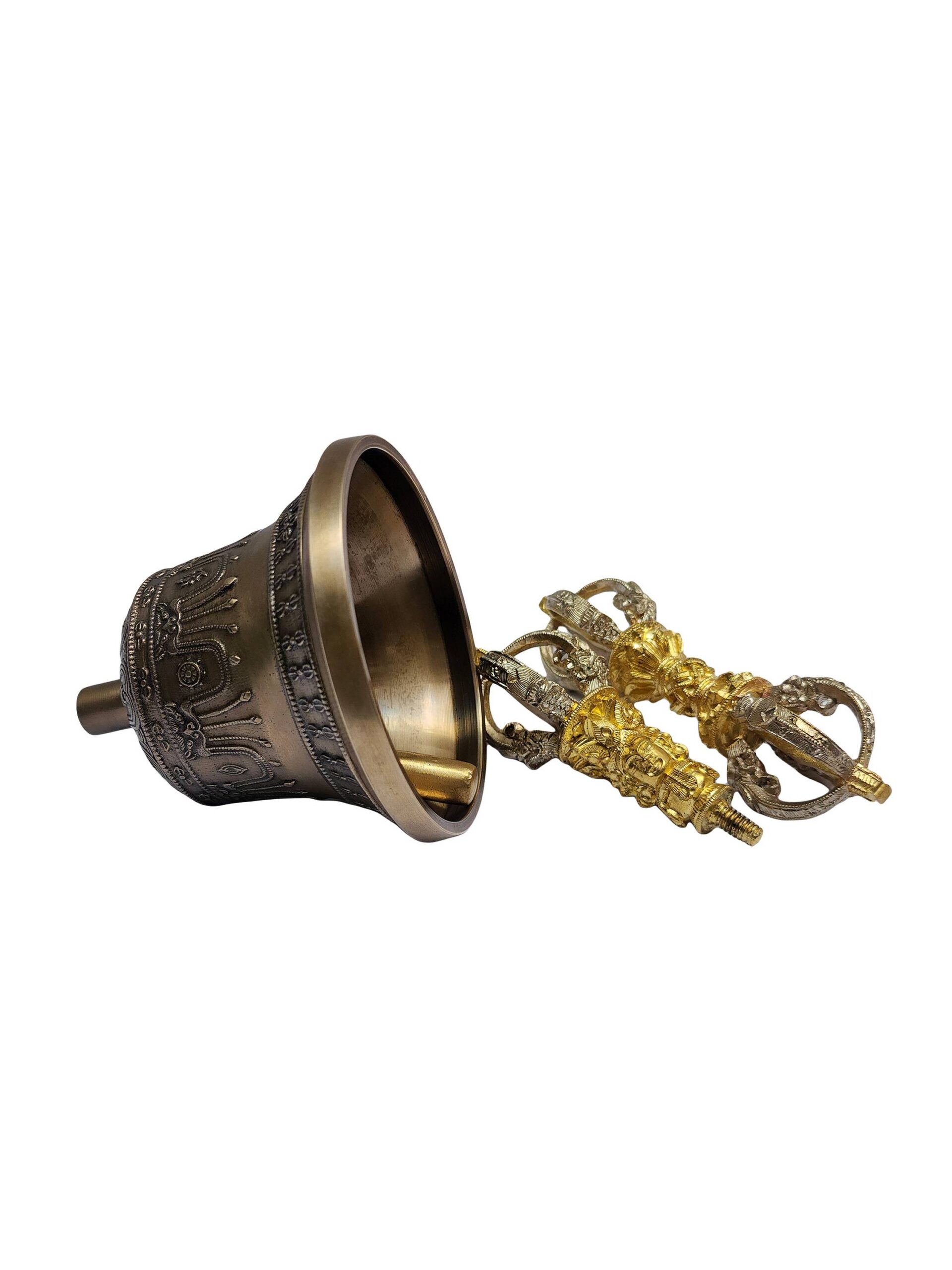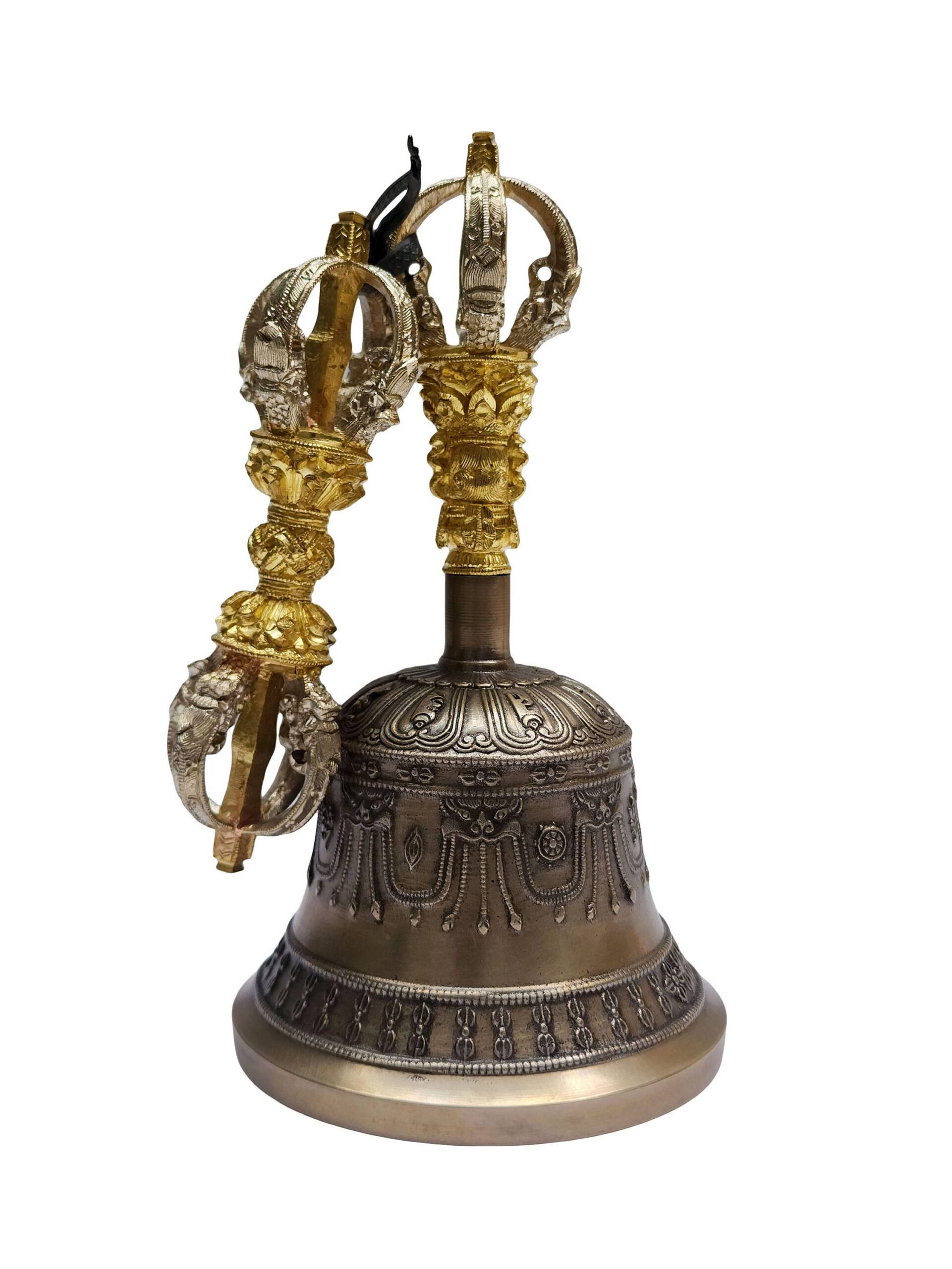Dehradun Bell and Dorje Vajra – Handcrafted Bronze Ritual Set (Antique Patina Finish)