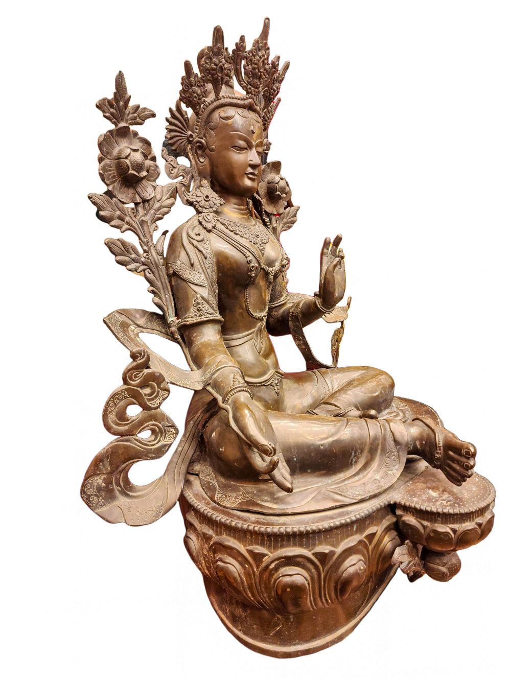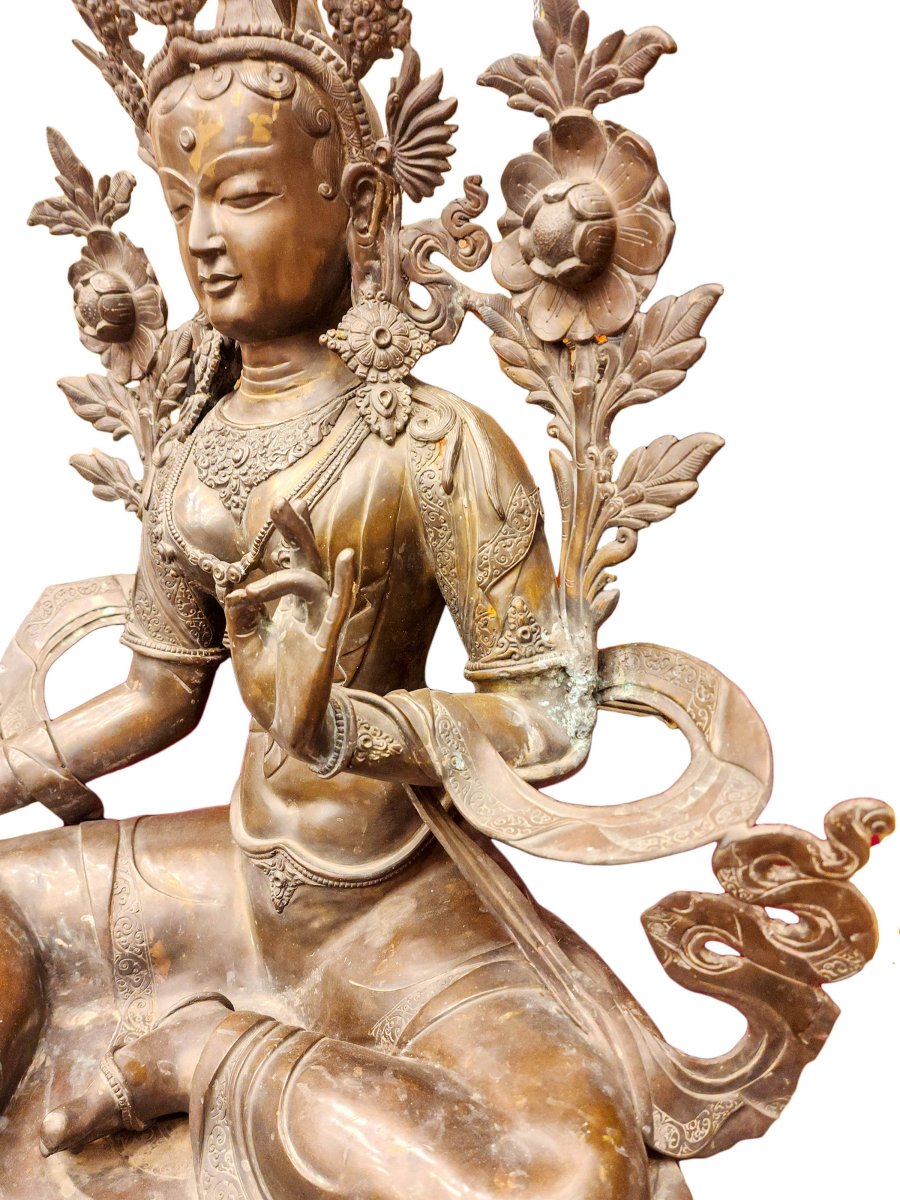 Green Tara Buddhist Handmade Large Statue | Natural Patina Finish | 100cm Copper Statue