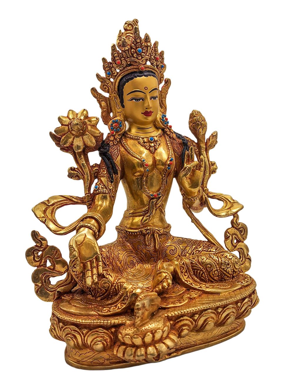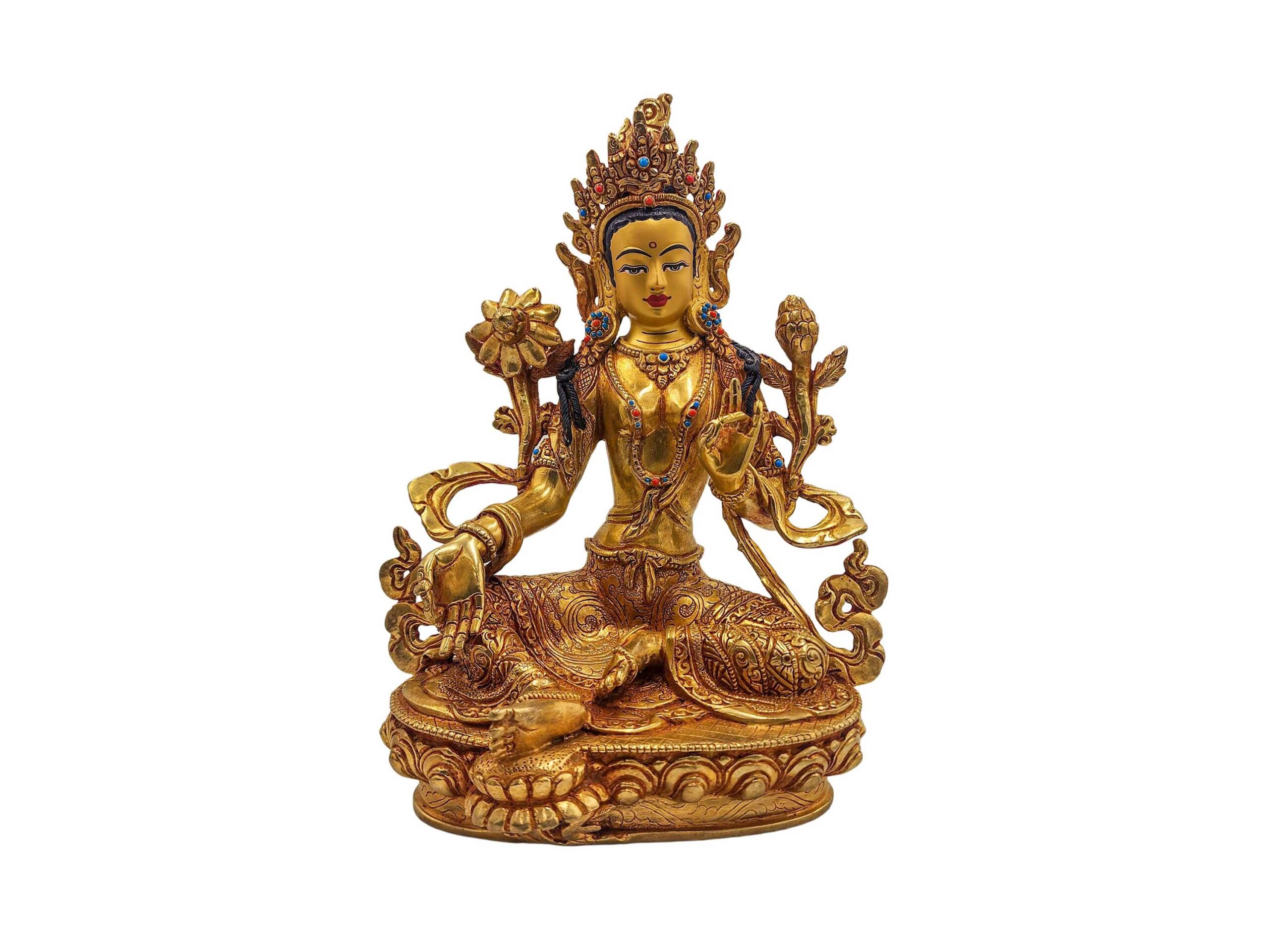 Green Tara — Buddhist Handmade Statue | Gold Plated and Face Painted