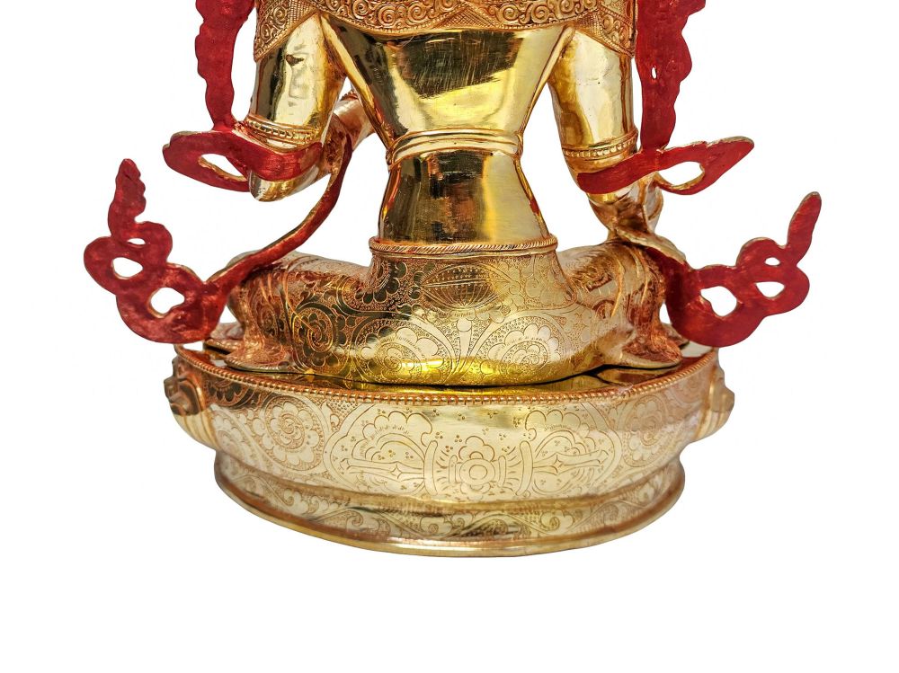 The face of the statue is hand-painted with pure gold, a vital process in Buddhist art. The eyes and lips, rendered with precision, breathe life and sacred energy into the statue. This act of face-painting prepares the statue for consecration, symbolizing the deity’s awakening and readiness to engage in spiritual work on behalf of the devotee.