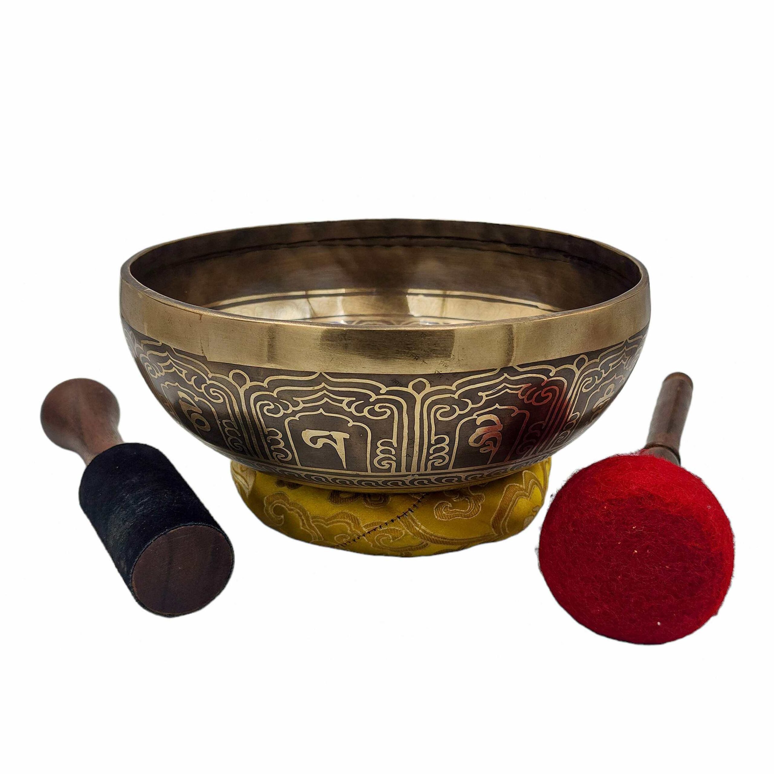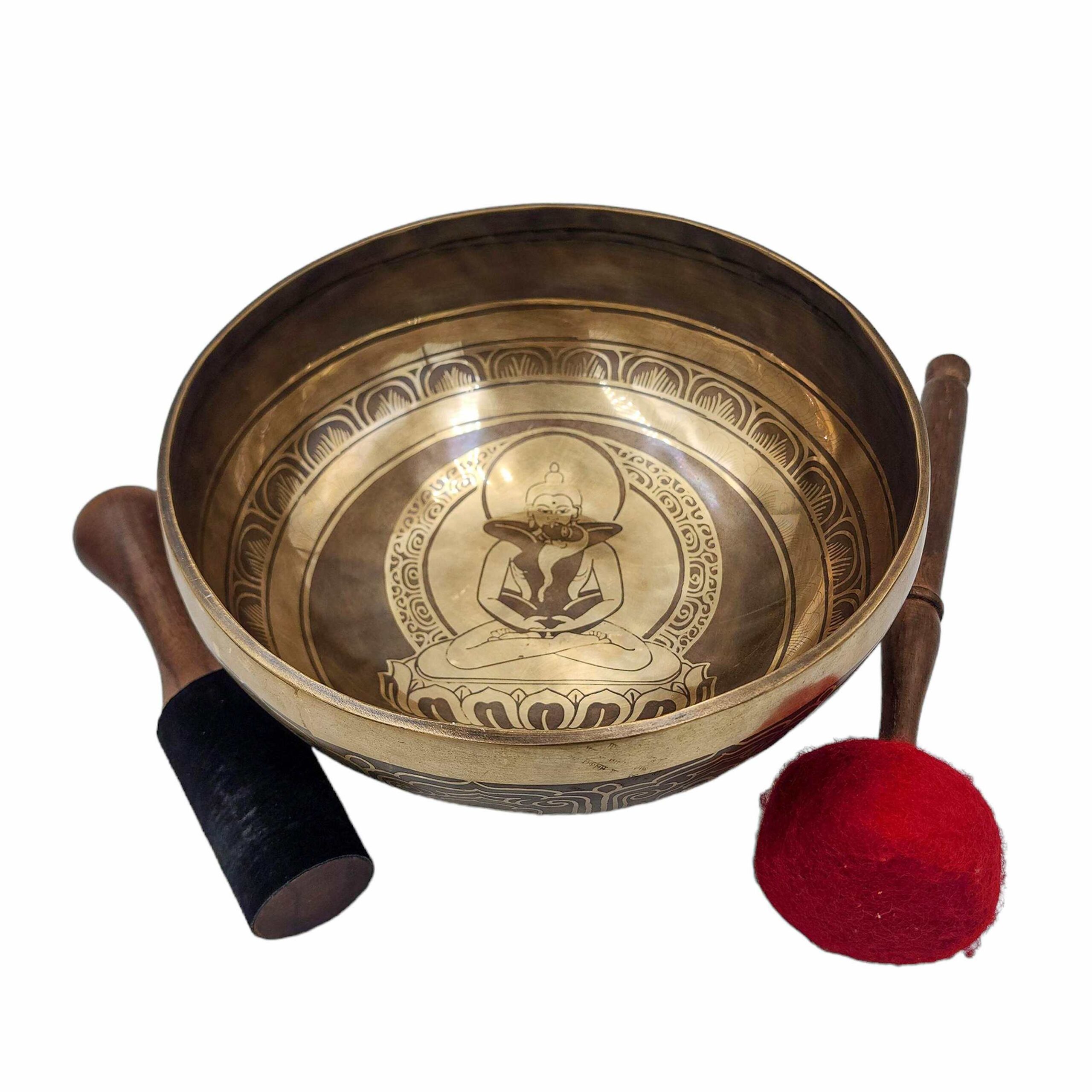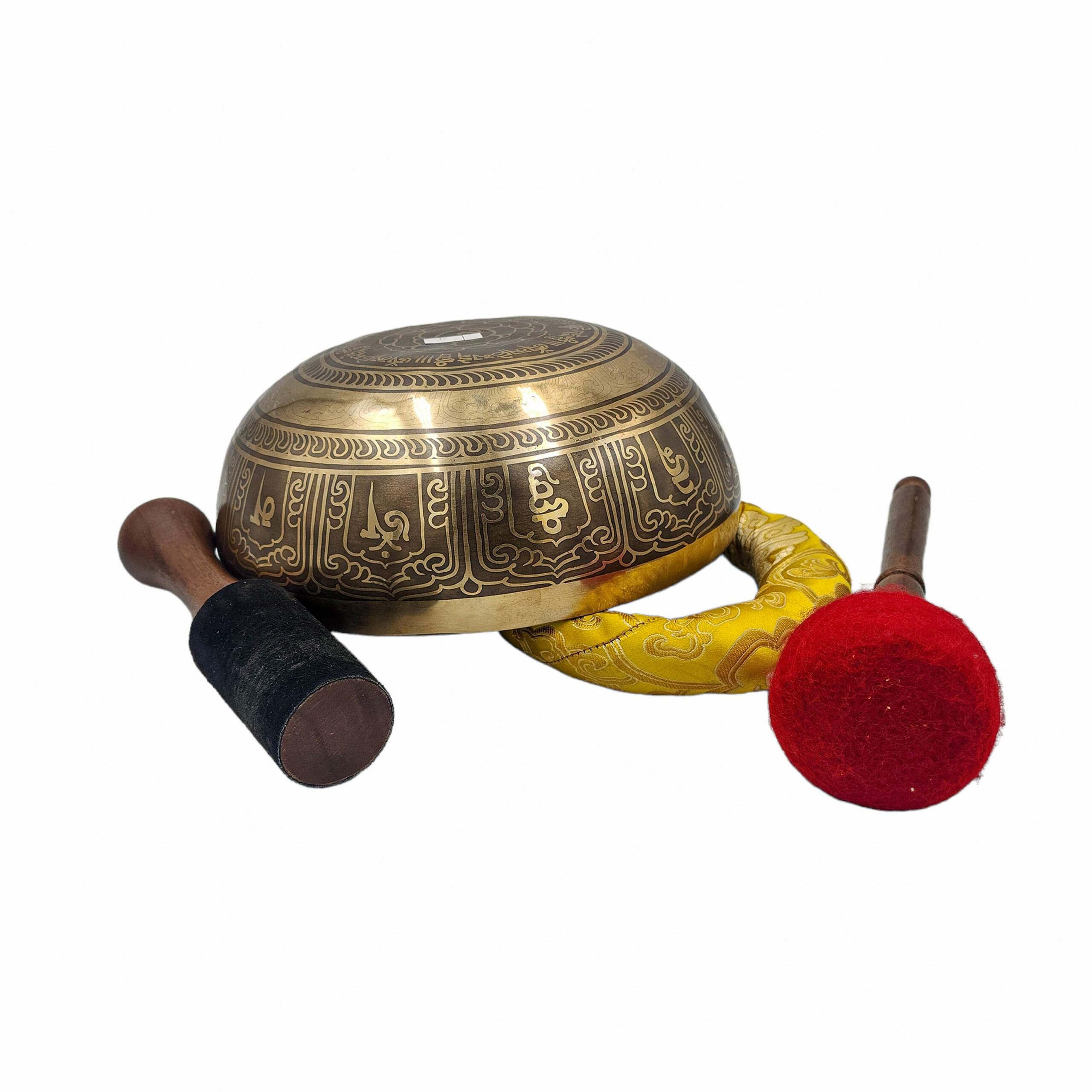This handcrafted Buddhist singing bowl is forged from a sacred seven-metal alloy and features fine etching carvings rooted in traditional Himalayan aesthetics. It delivers not only a deep resonant tone but also carries spiritual symbolism through its intricate engravings—making it ideal for meditation, healing, and decor.