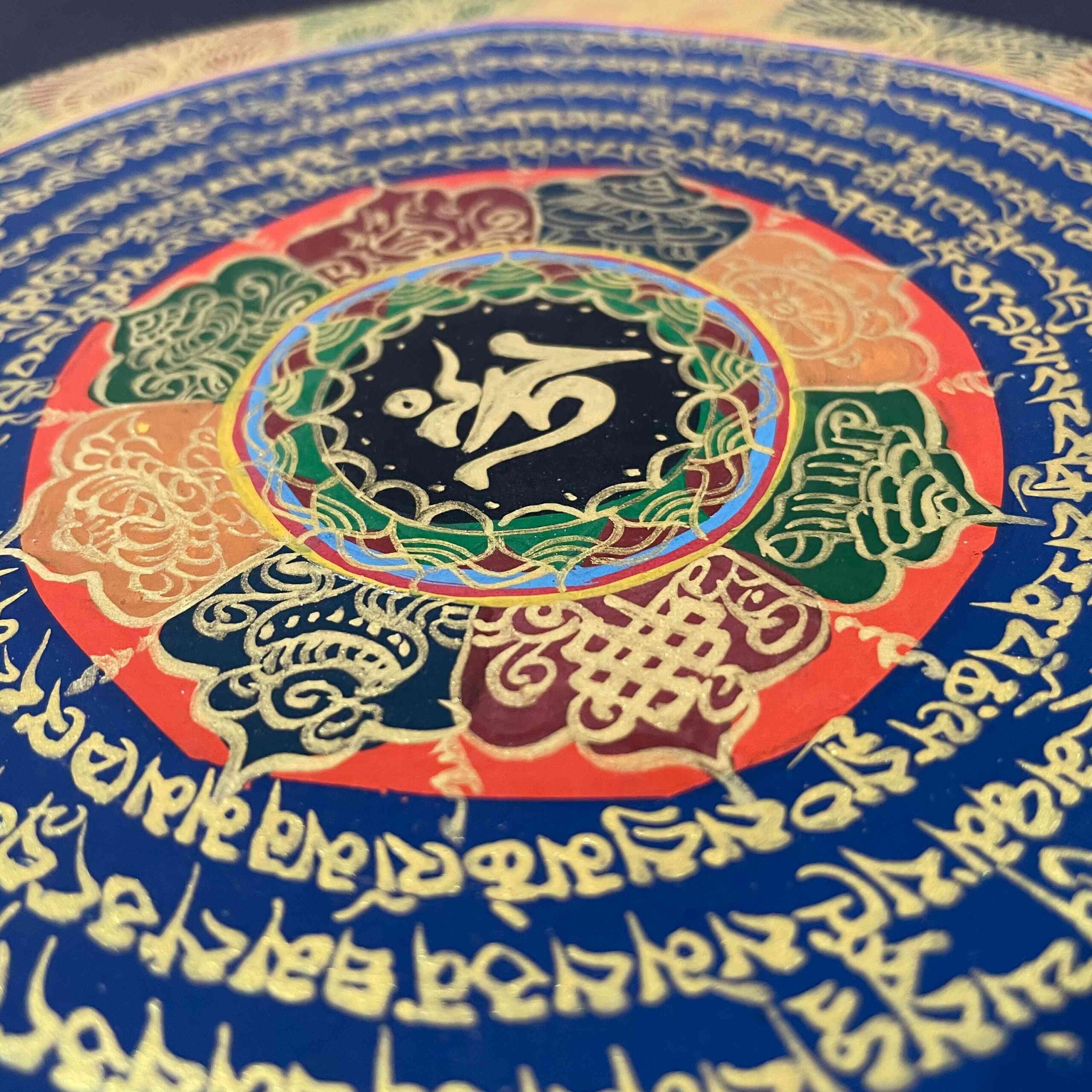 This hand-painted Mandala Thangka is a compact yet powerful piece of Tibetan sacred art. Painted with natural mineral colors on cotton canvas, it features a beautifully detailed mandala—a spiritual symbol representing the universe, balance, and the path to enlightenment.