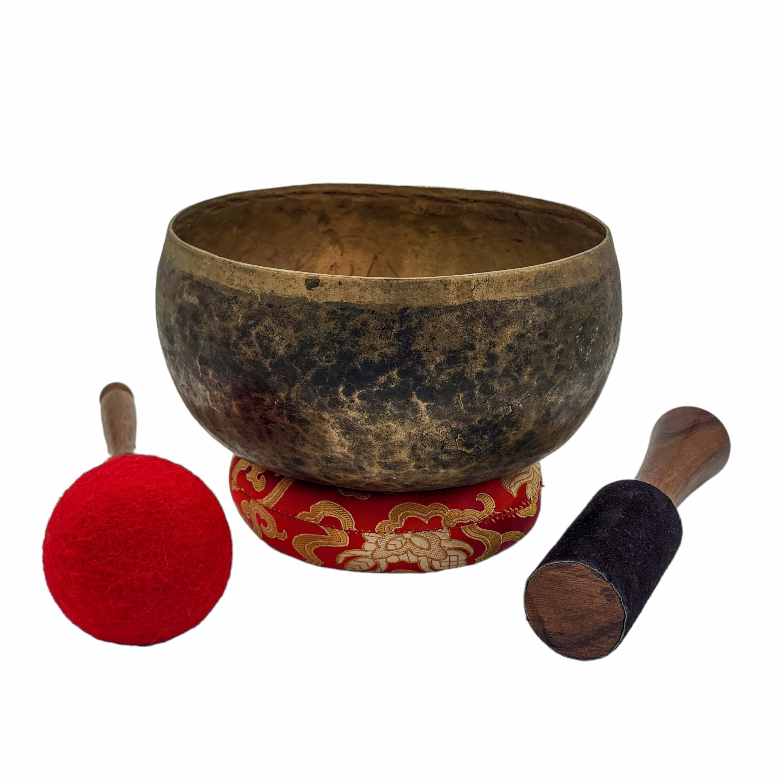 Our antique Tibetan singing bowls are carefully selected for their superior sound quality and unique physical characteristics. Each bowl showcases natural signs of age and traditional craftsmanship, providing rich tones and deep resonance. These timeless pieces are perfect for collectors, sound healers, and meditation practitioners seeking authentic, high-quality singing bowls.