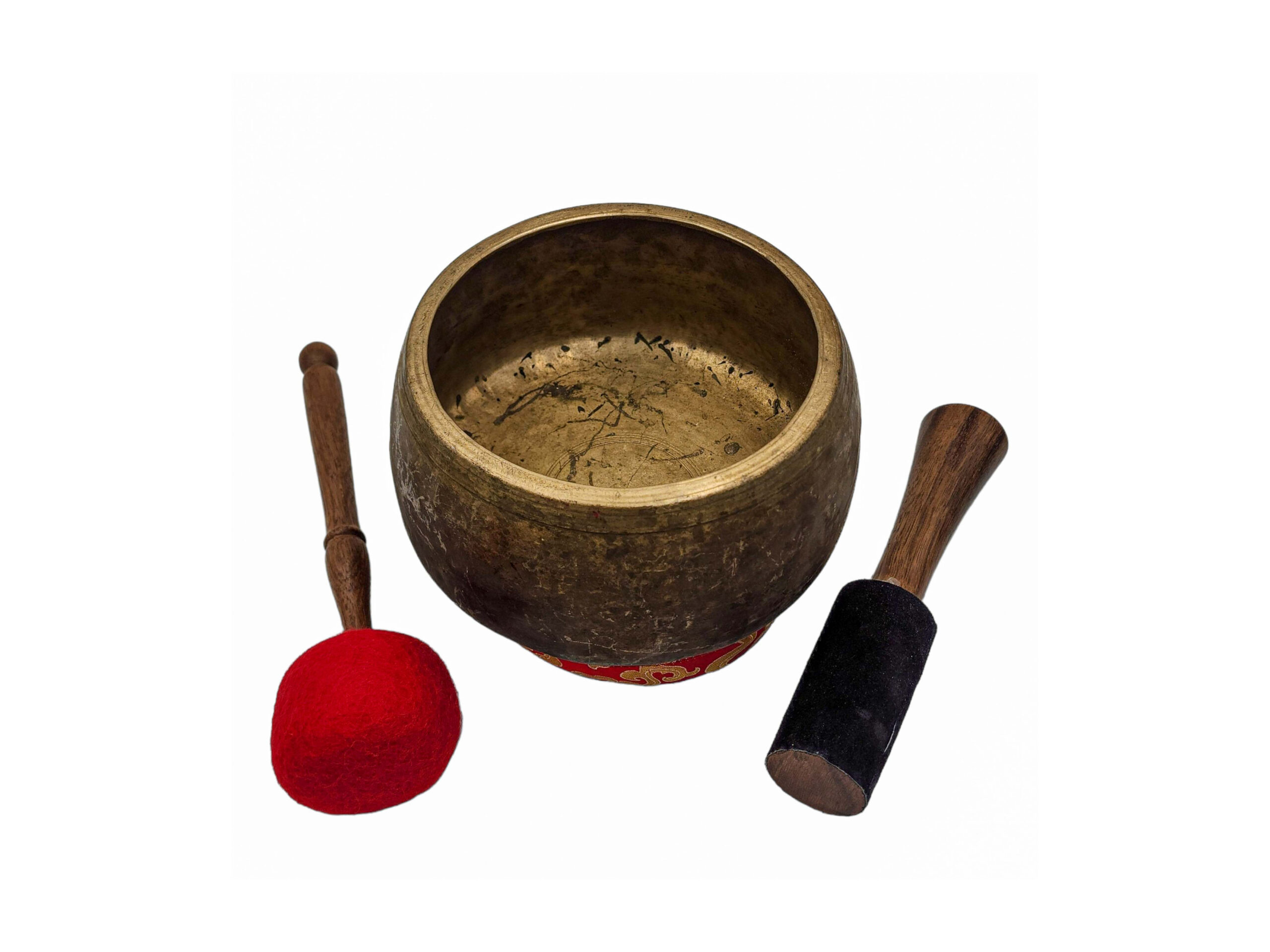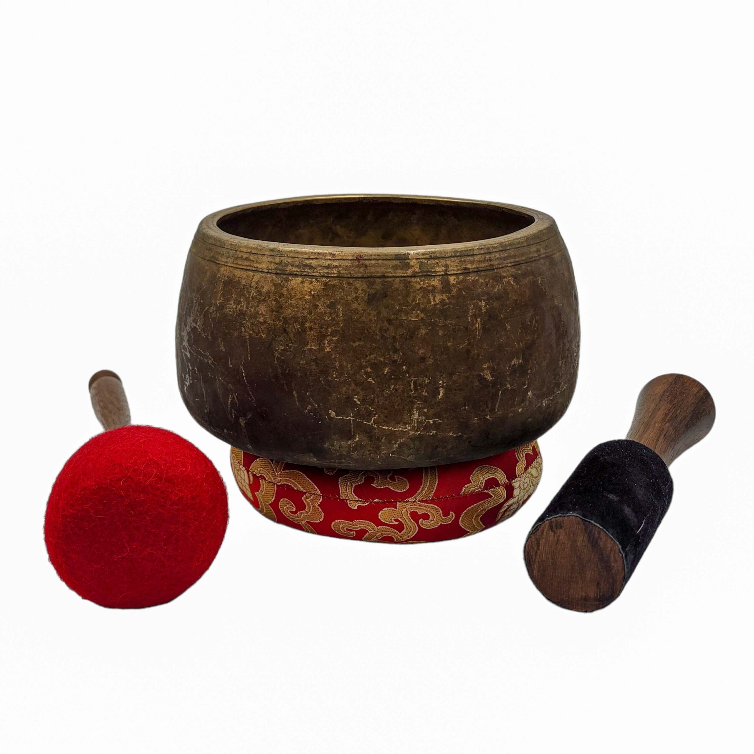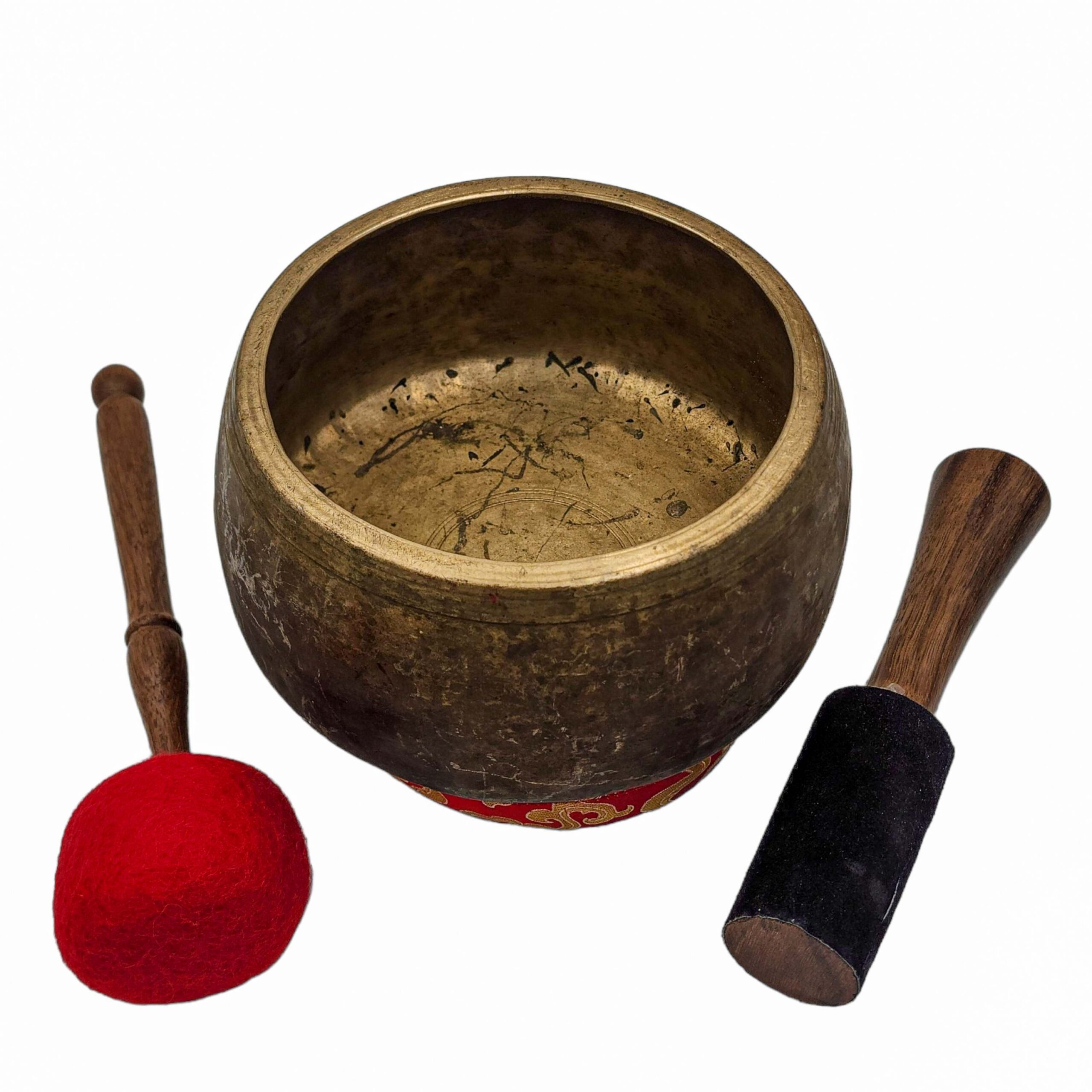 Antique Tibetan singing bowls like this one are valued for their rich tones, spiritual energy, and visible aging marks. Each bowl in our collection is hand-selected in Kathmandu and showcases the craftsmanship and sound quality unique to authentic antique pieces.