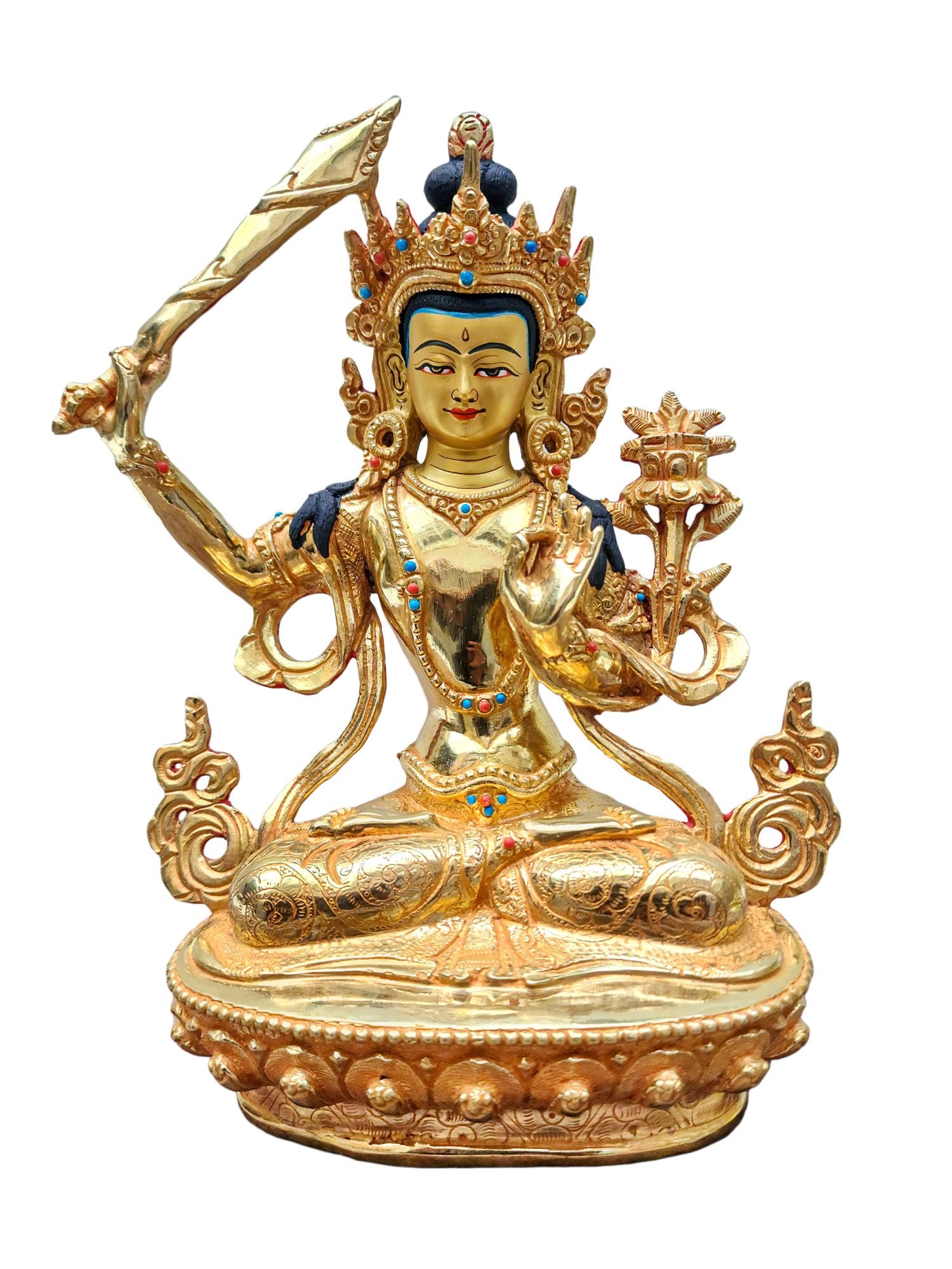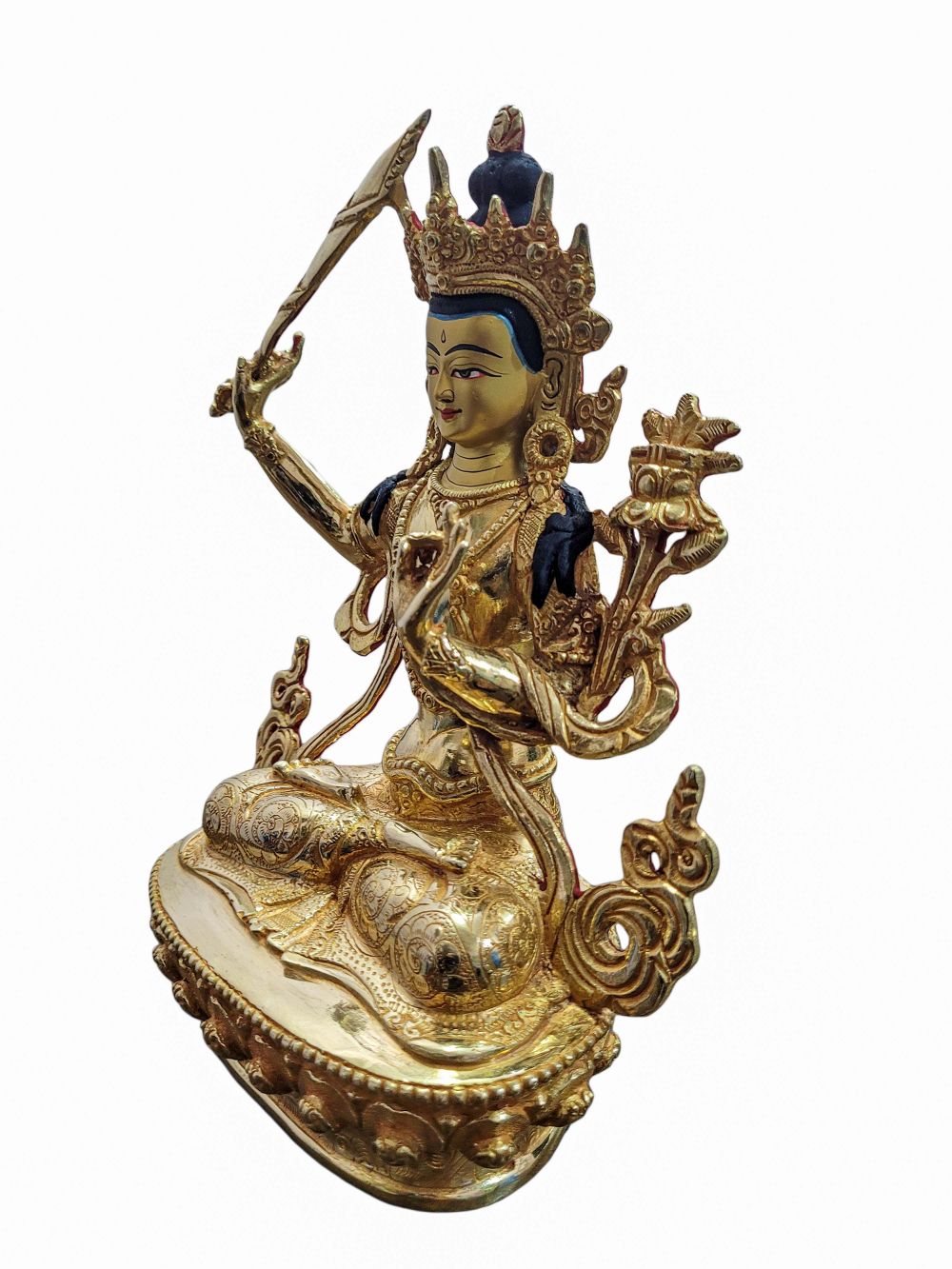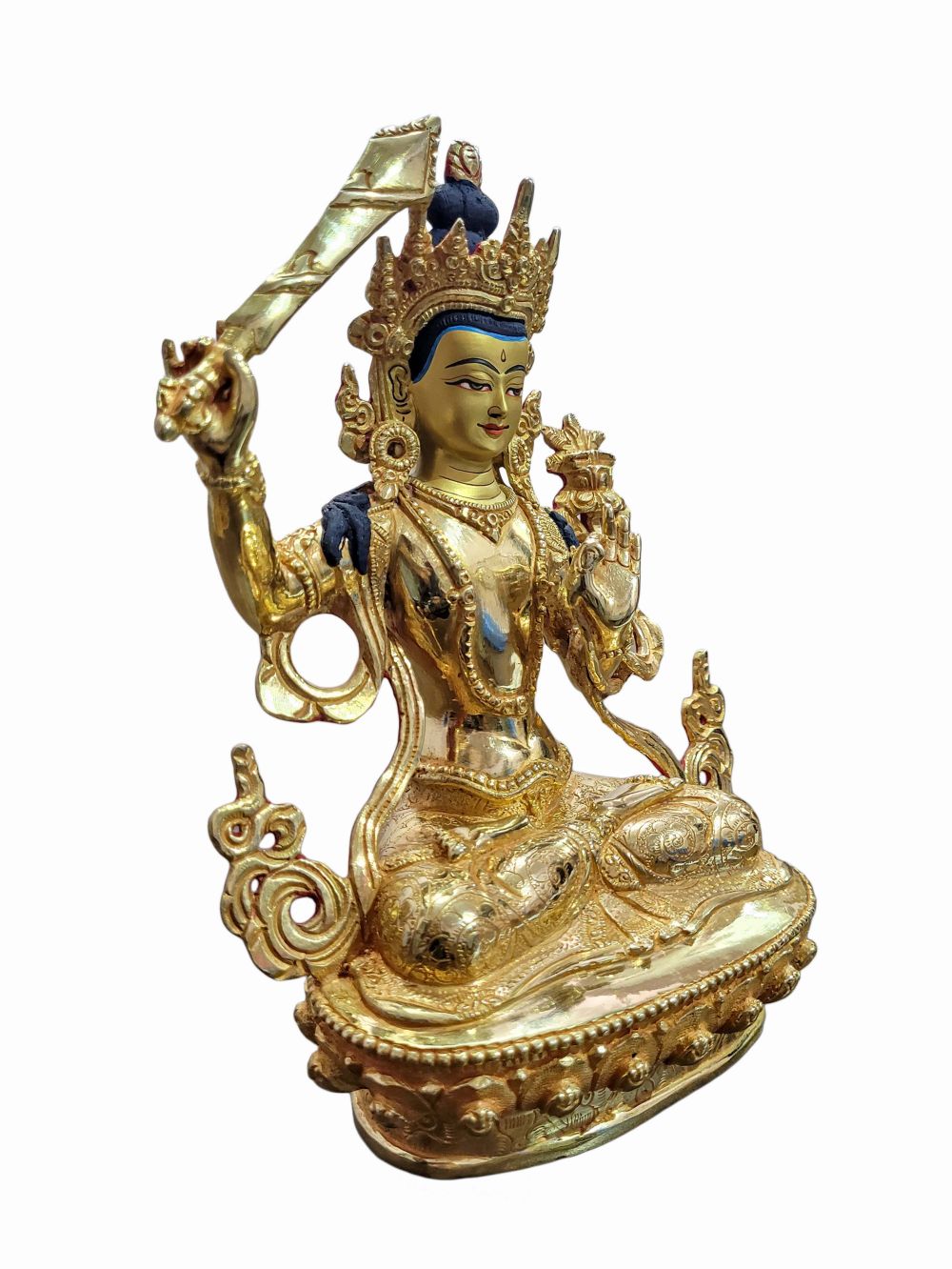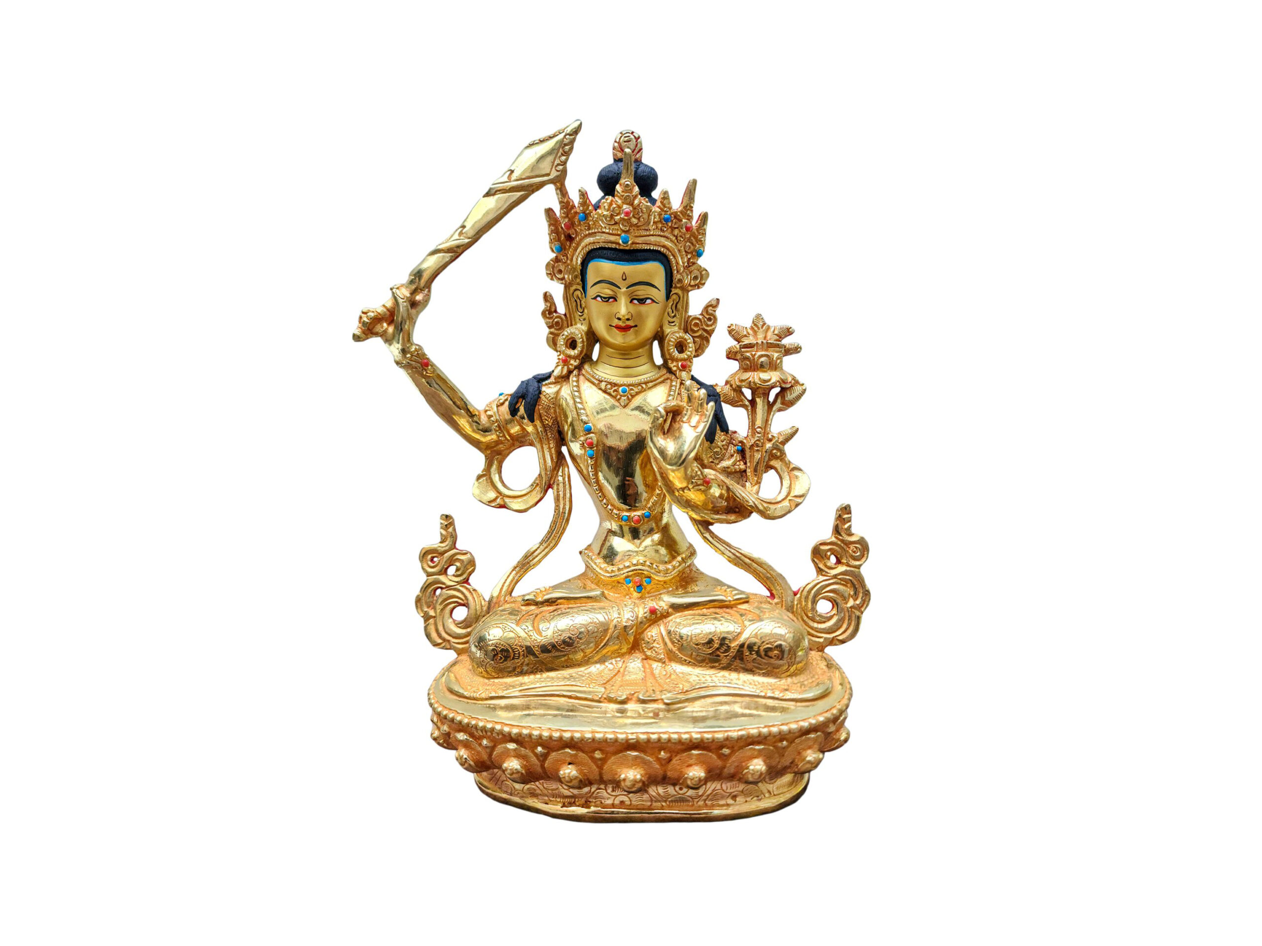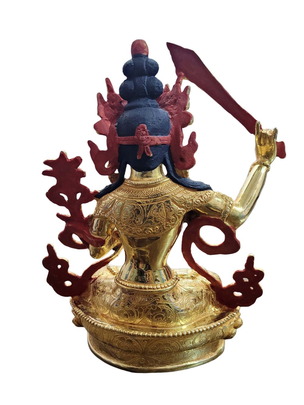 Manjushri – Buddhist Handmade Statue, Gold Plated, Face Painted