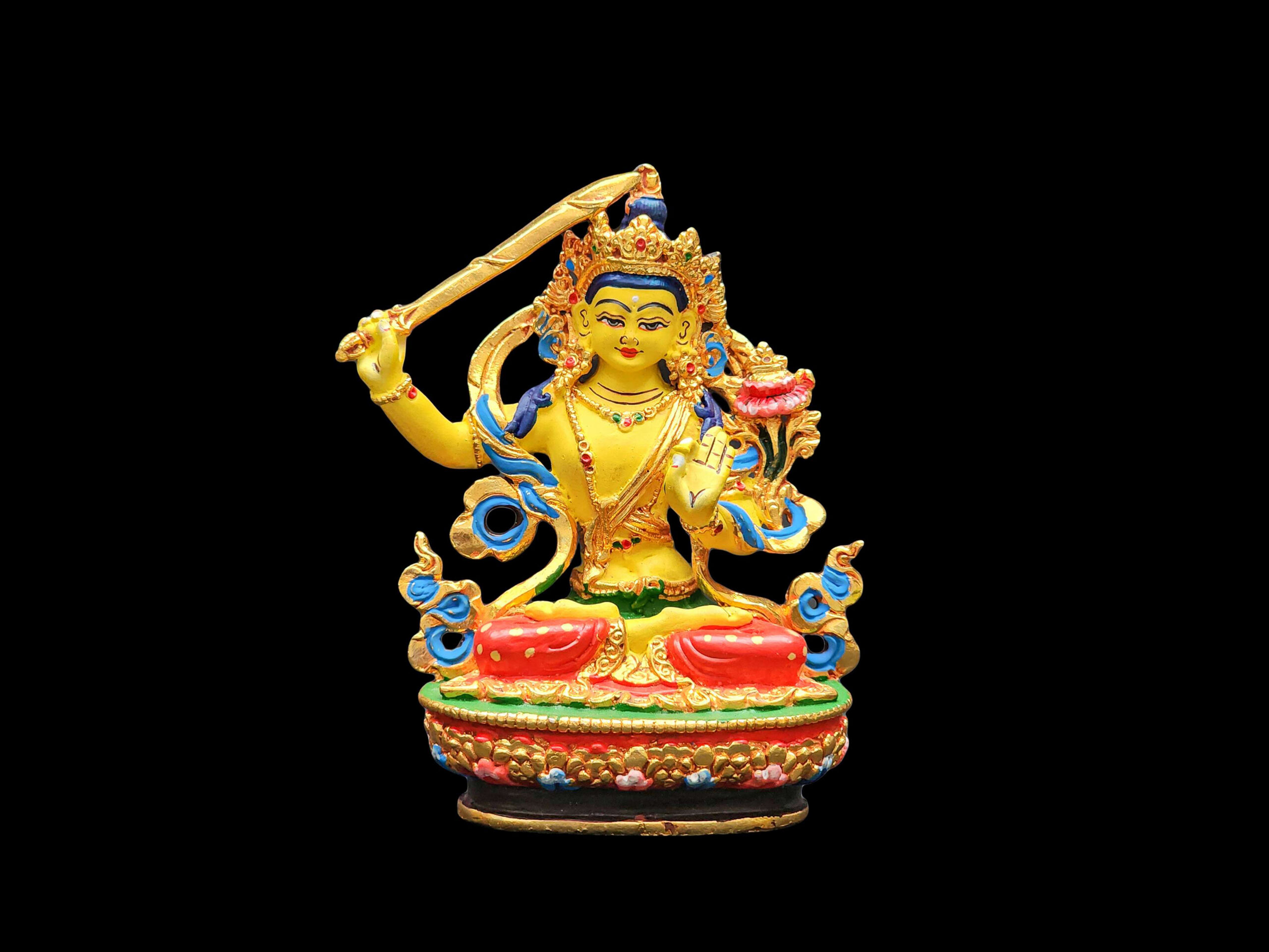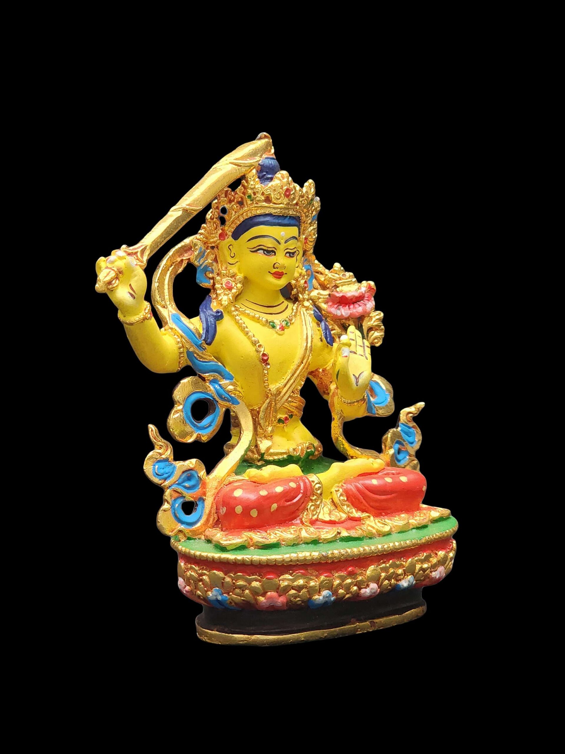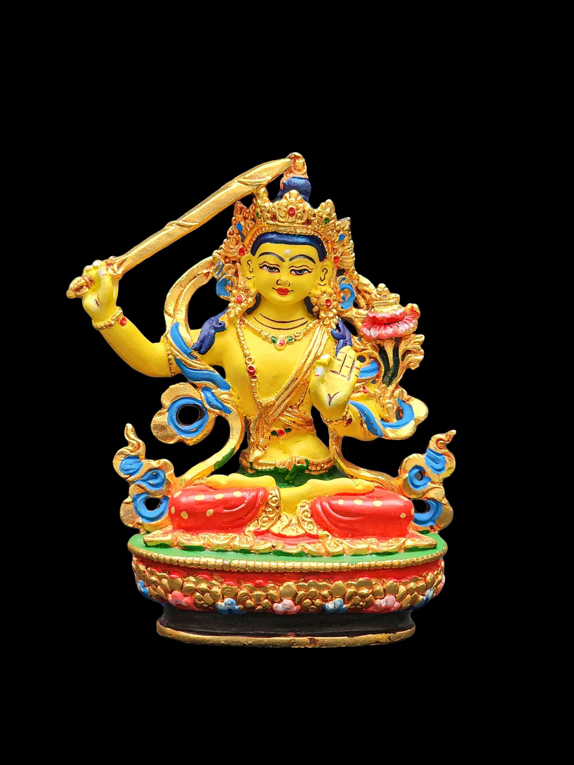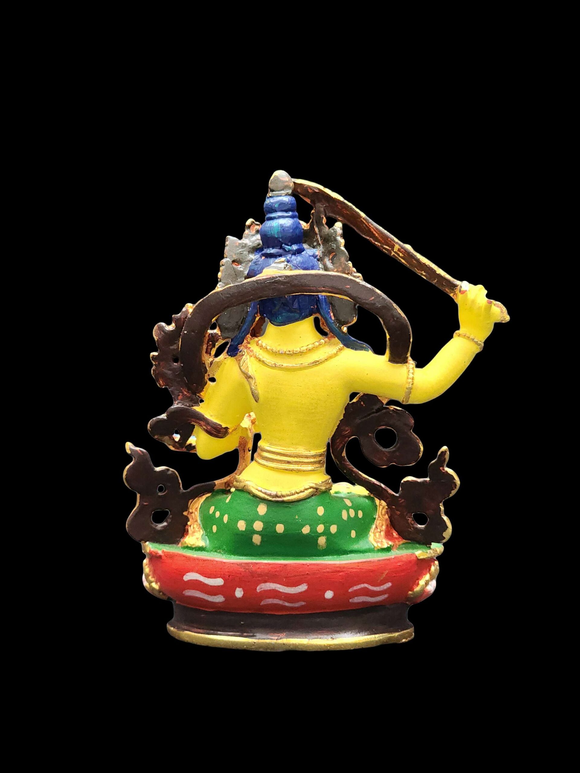 Miniature Buddhist Statue of Manjushri – Traditional Color Finish (High Quality)