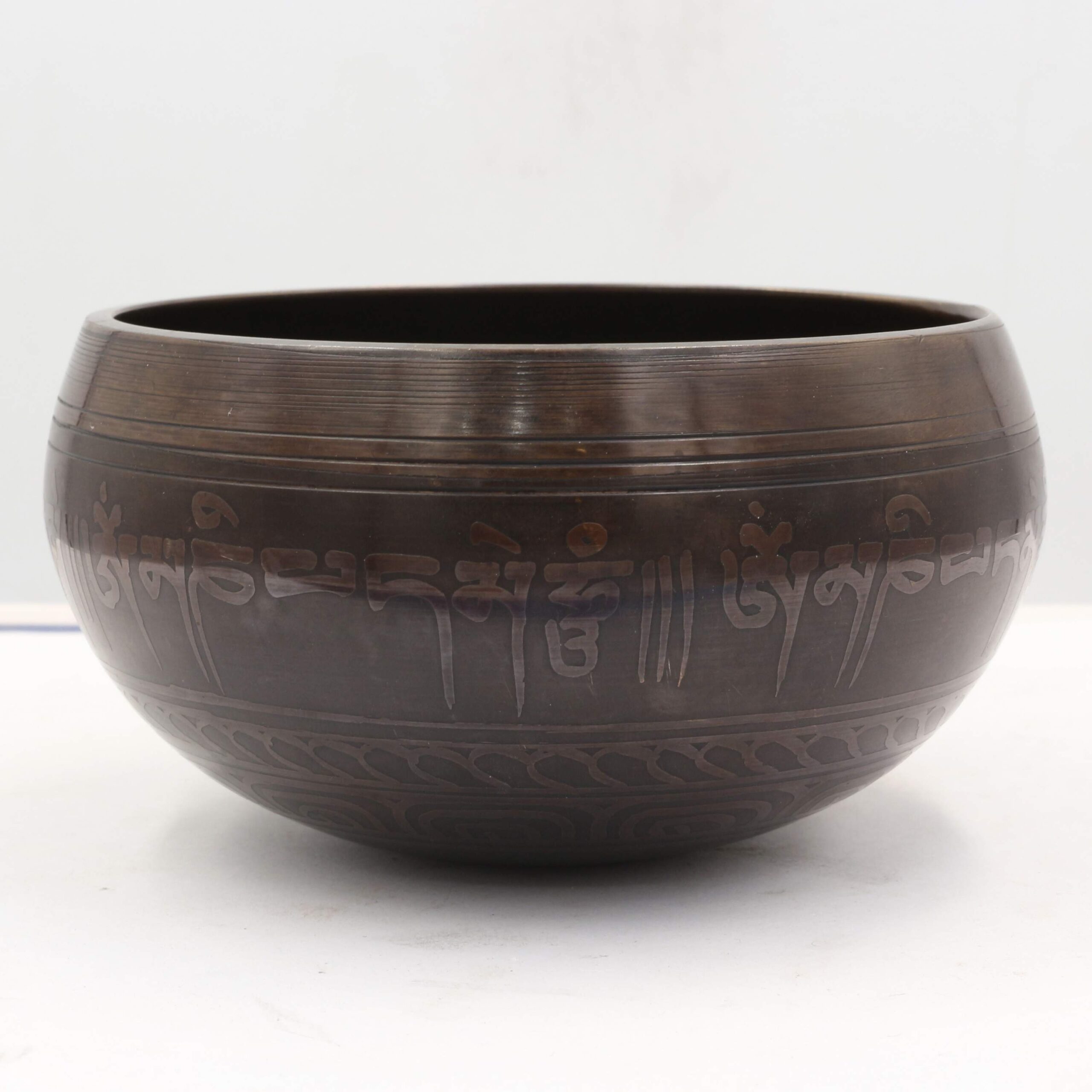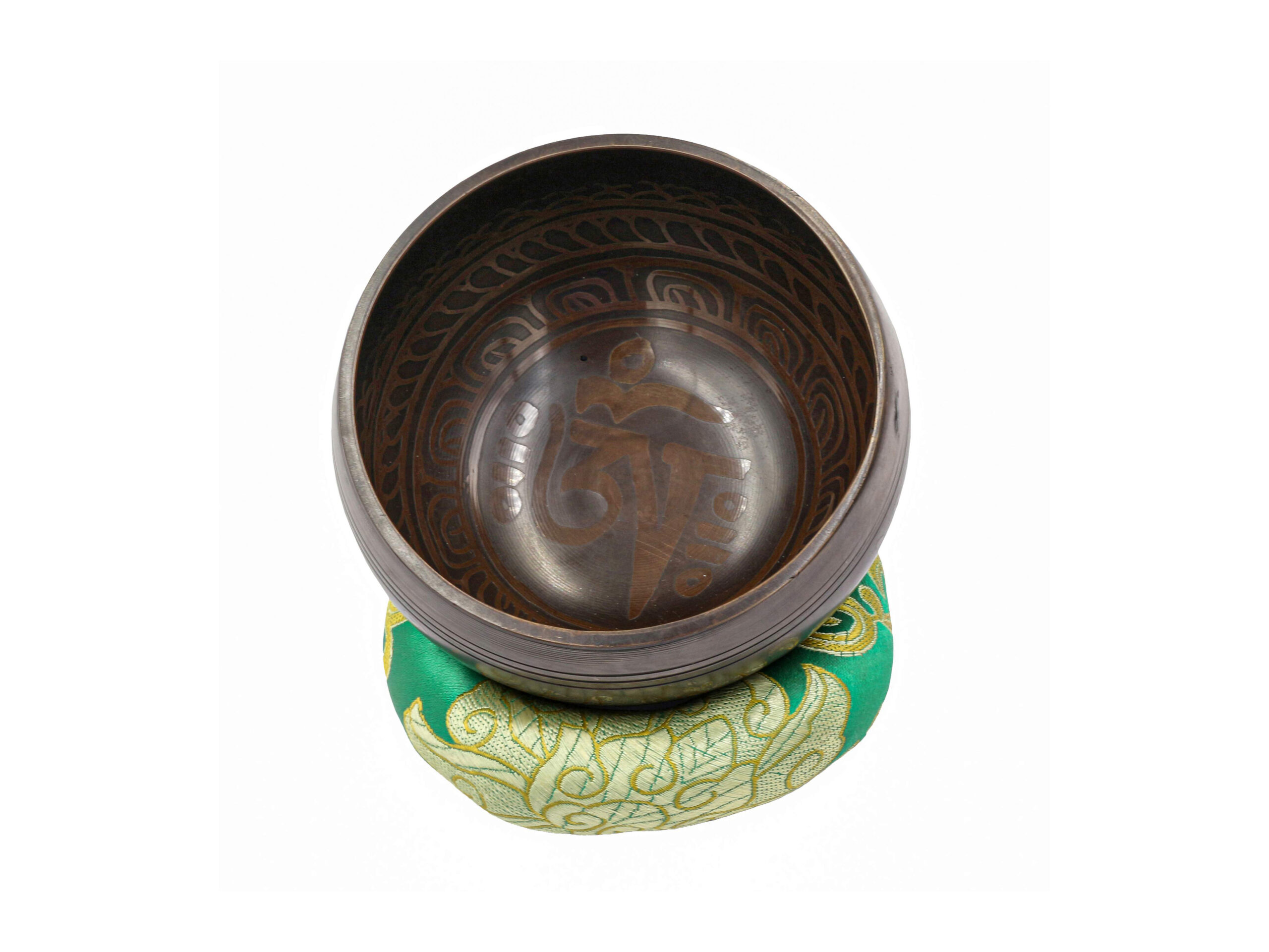 The bowl features traditional etching, a process where designs are carved into the metal using acid or other tools. The etched OM symbol and ornamental designs enhance the bowl’s appearance, making it not just functional but also aesthetically appealing as a decorative or spiritual item.