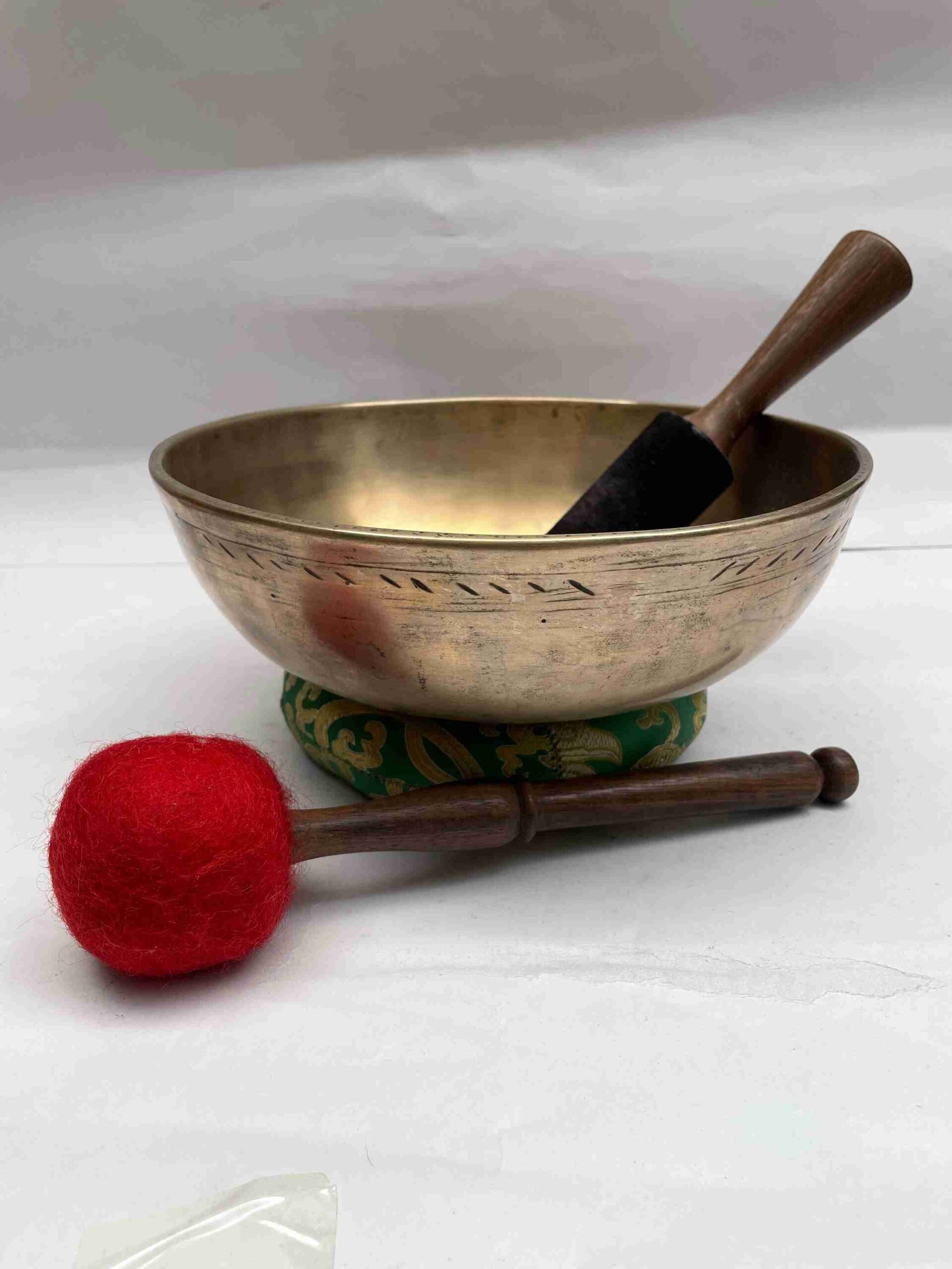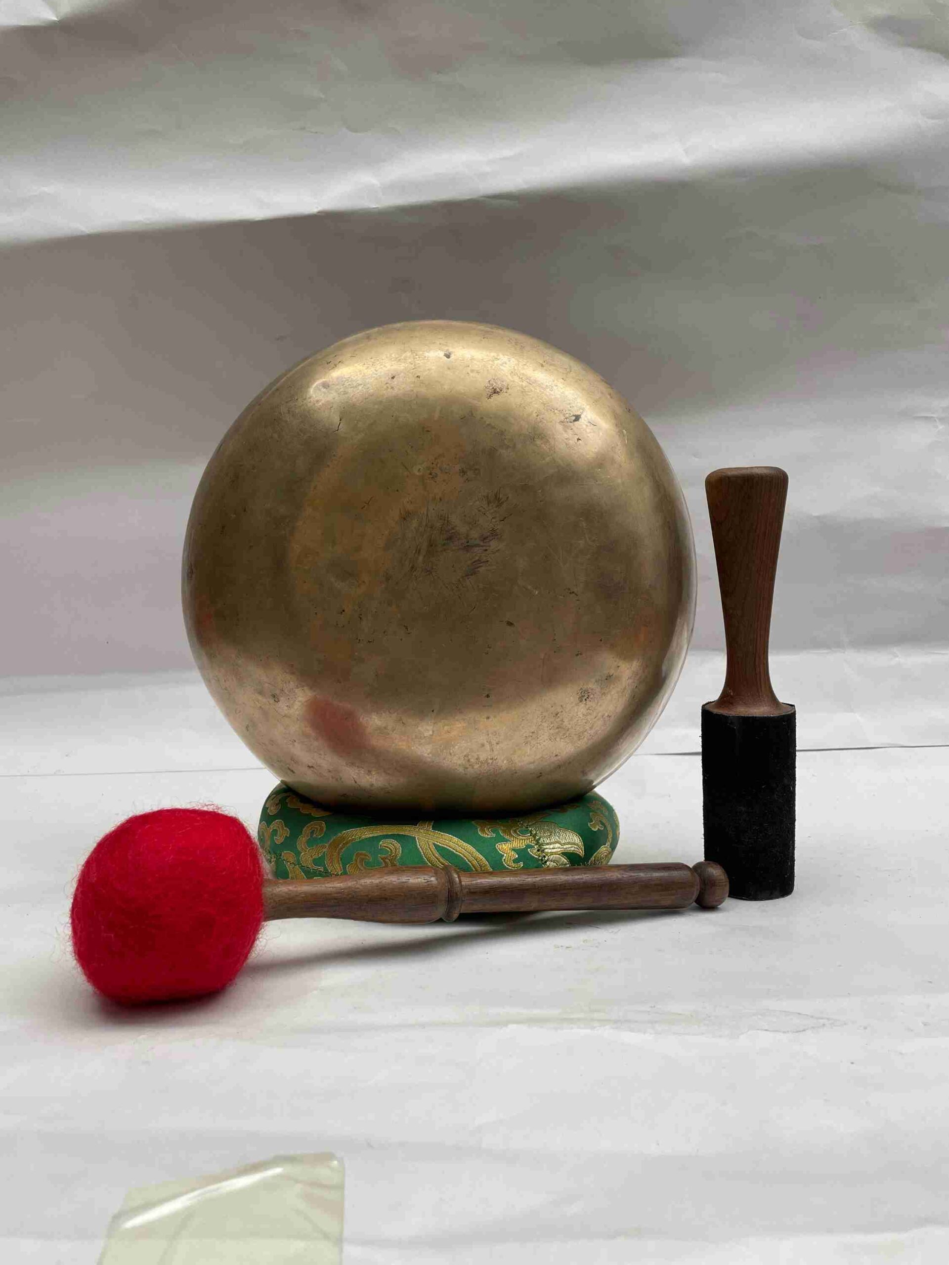 Authentic antique Tibetan singing bowls are highly valued for their exceptional sound quality, deep resonance, and unique aged characteristics. Our hand-selected Tibetan bowls come from Kathmandu, showcasing natural wear and patina, enhancing both their beauty and sound quality.