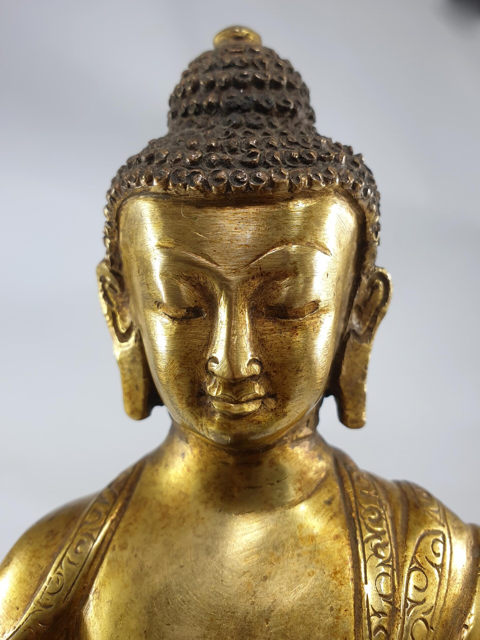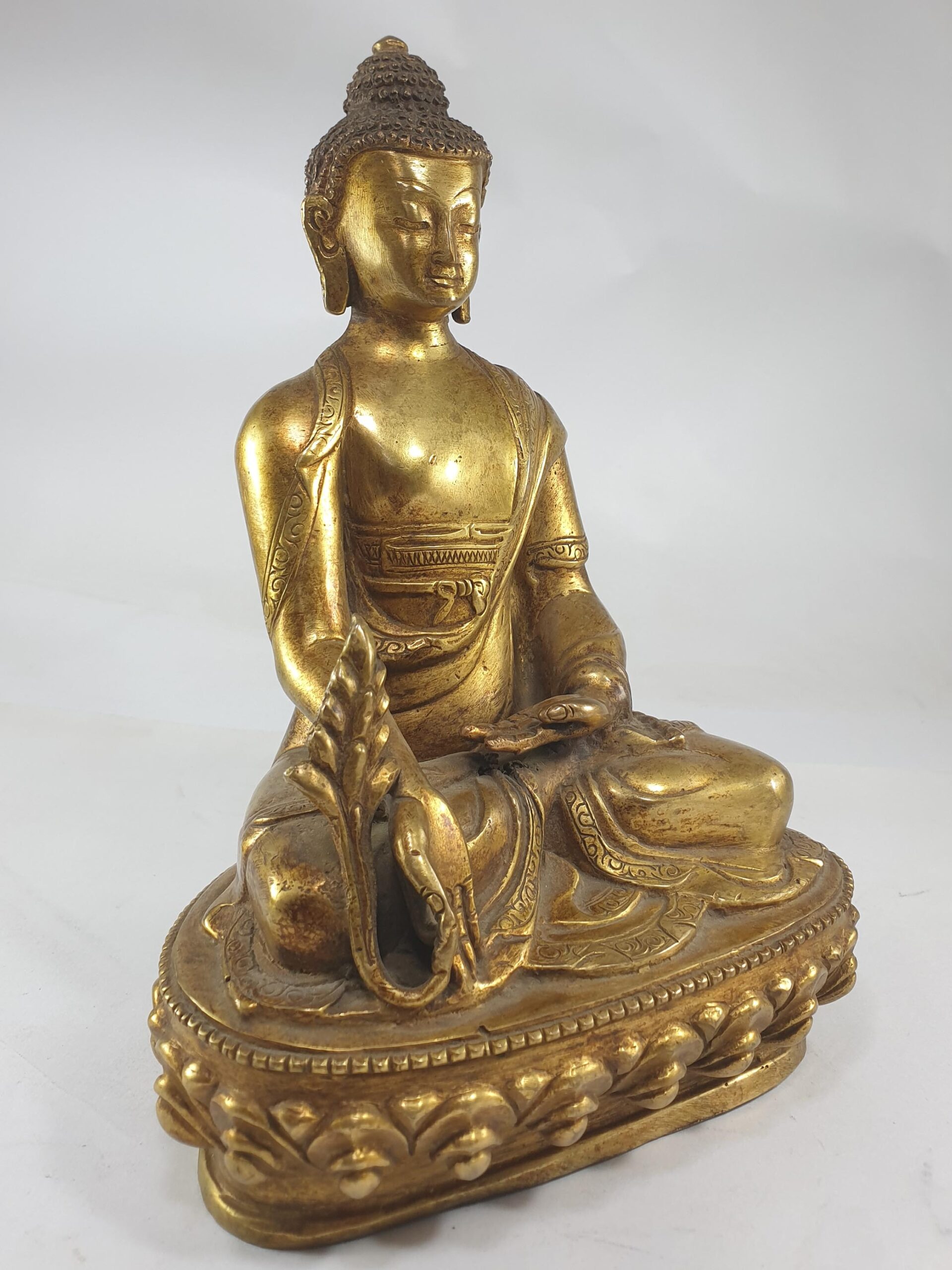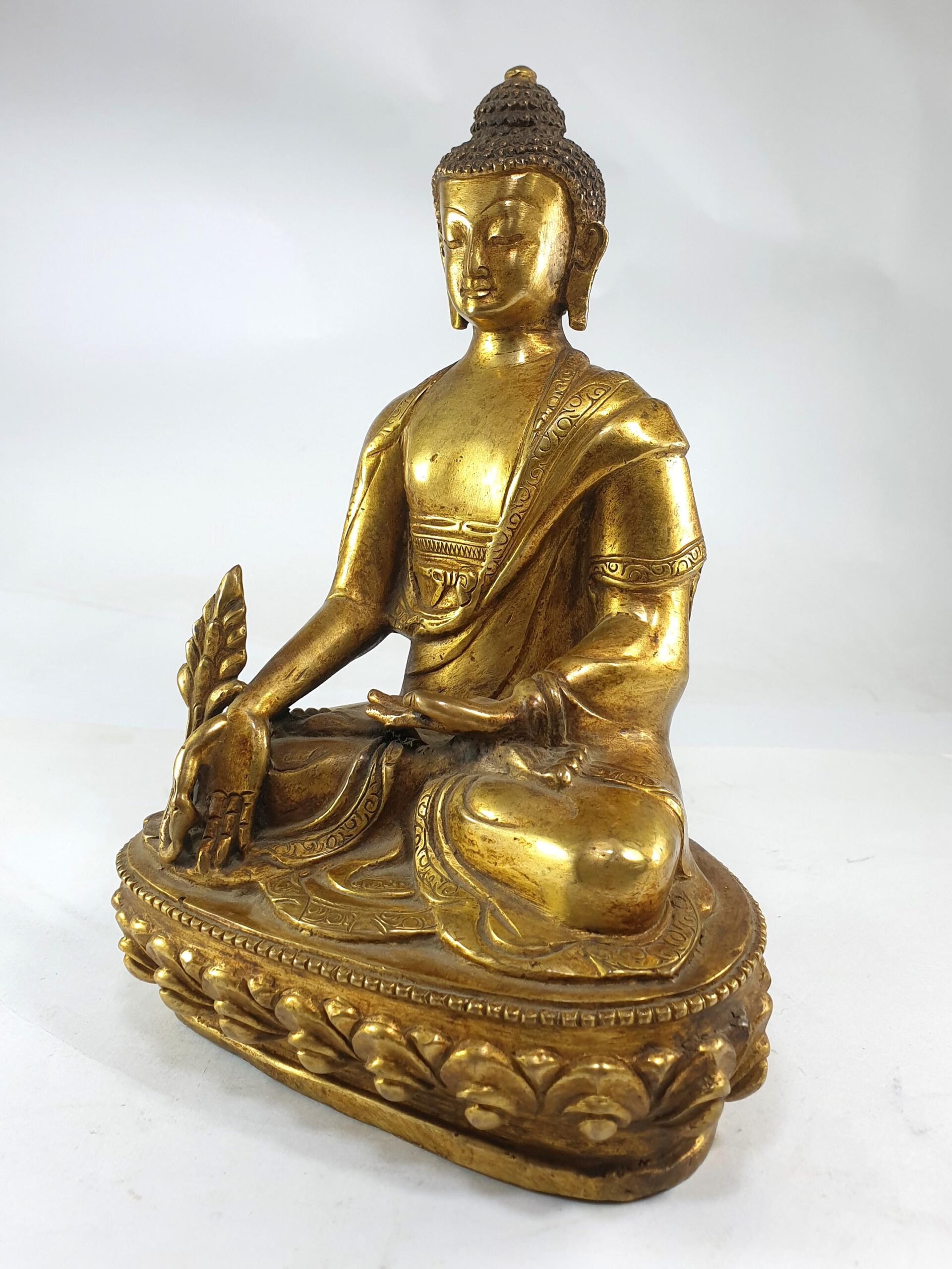 This Medicine Buddha statue is a significant spiritual artifact, combining traditional craftsmanship and healing power. Its full gold plating, Lost-Wax casting, and historical significance make it an exceptional piece for meditation spaces, altars, or collections of sacred Buddhist art.