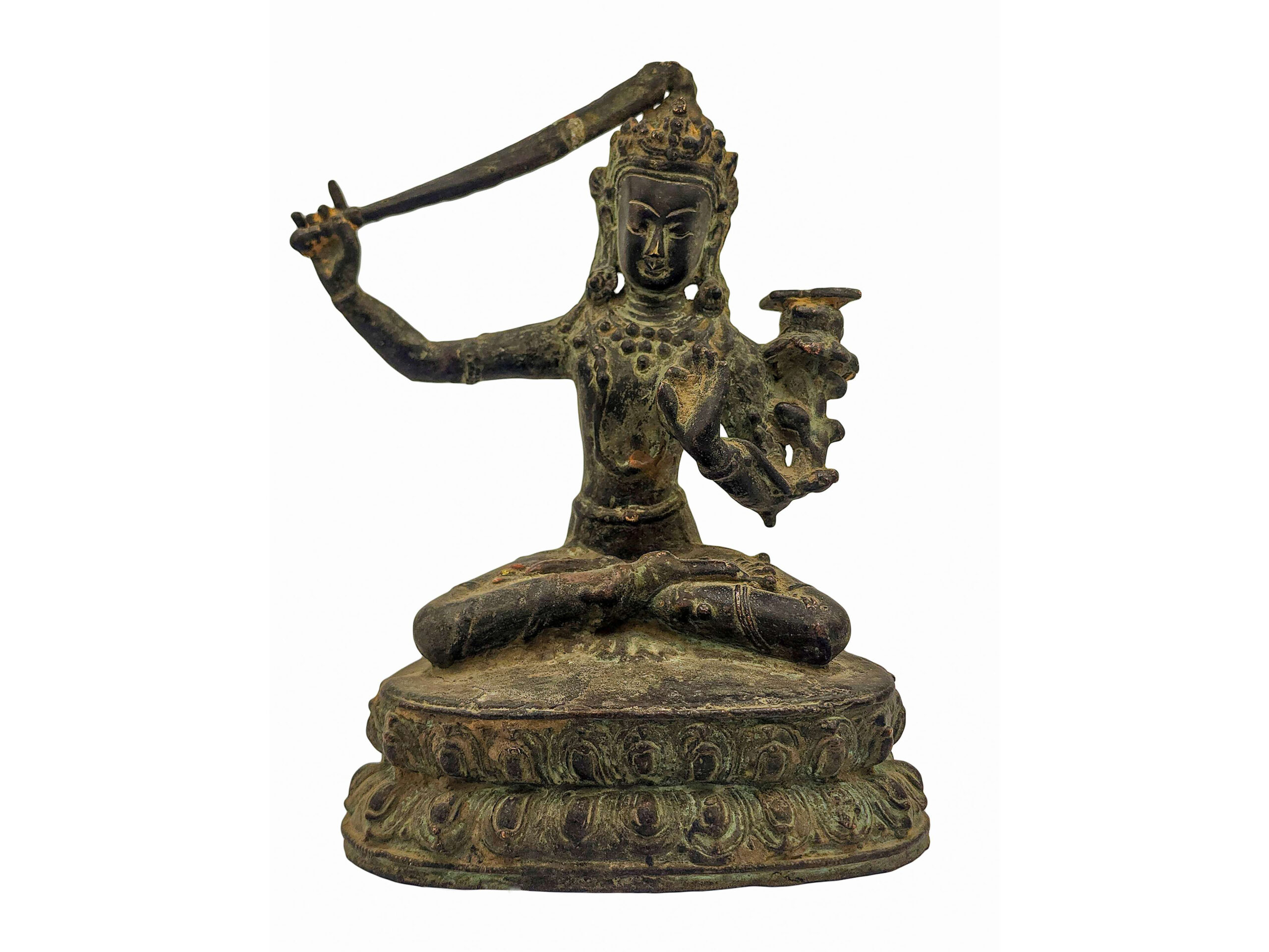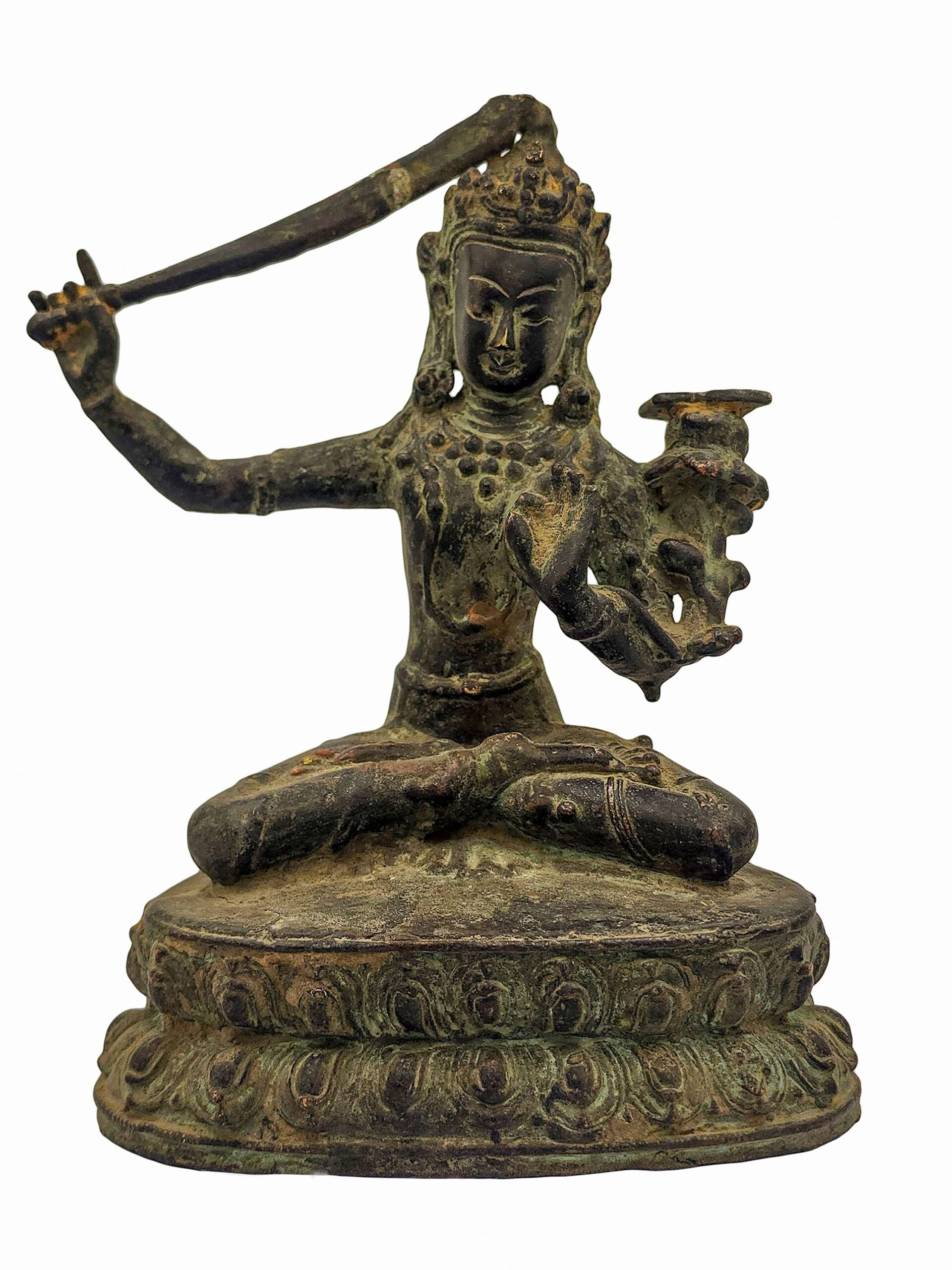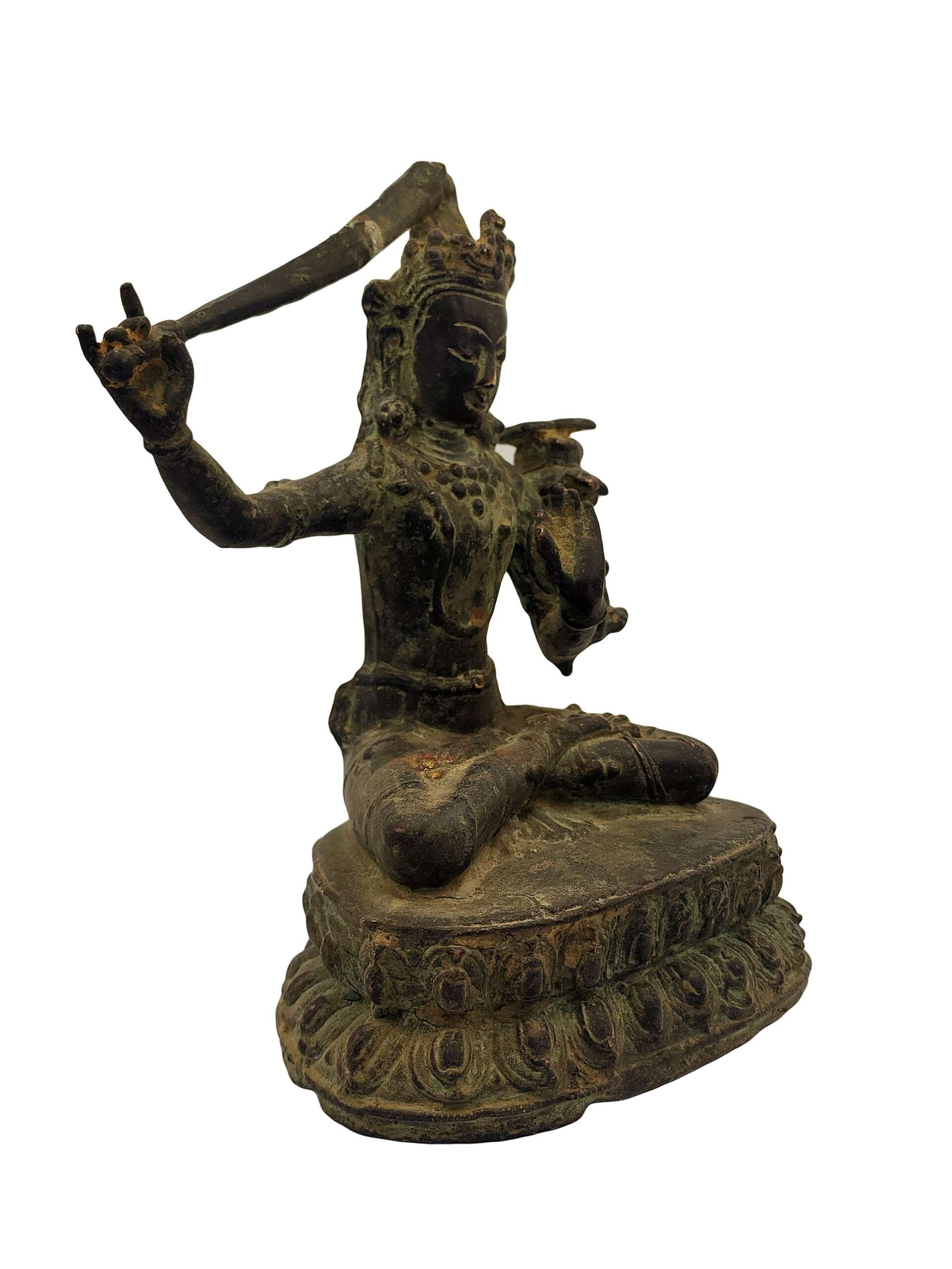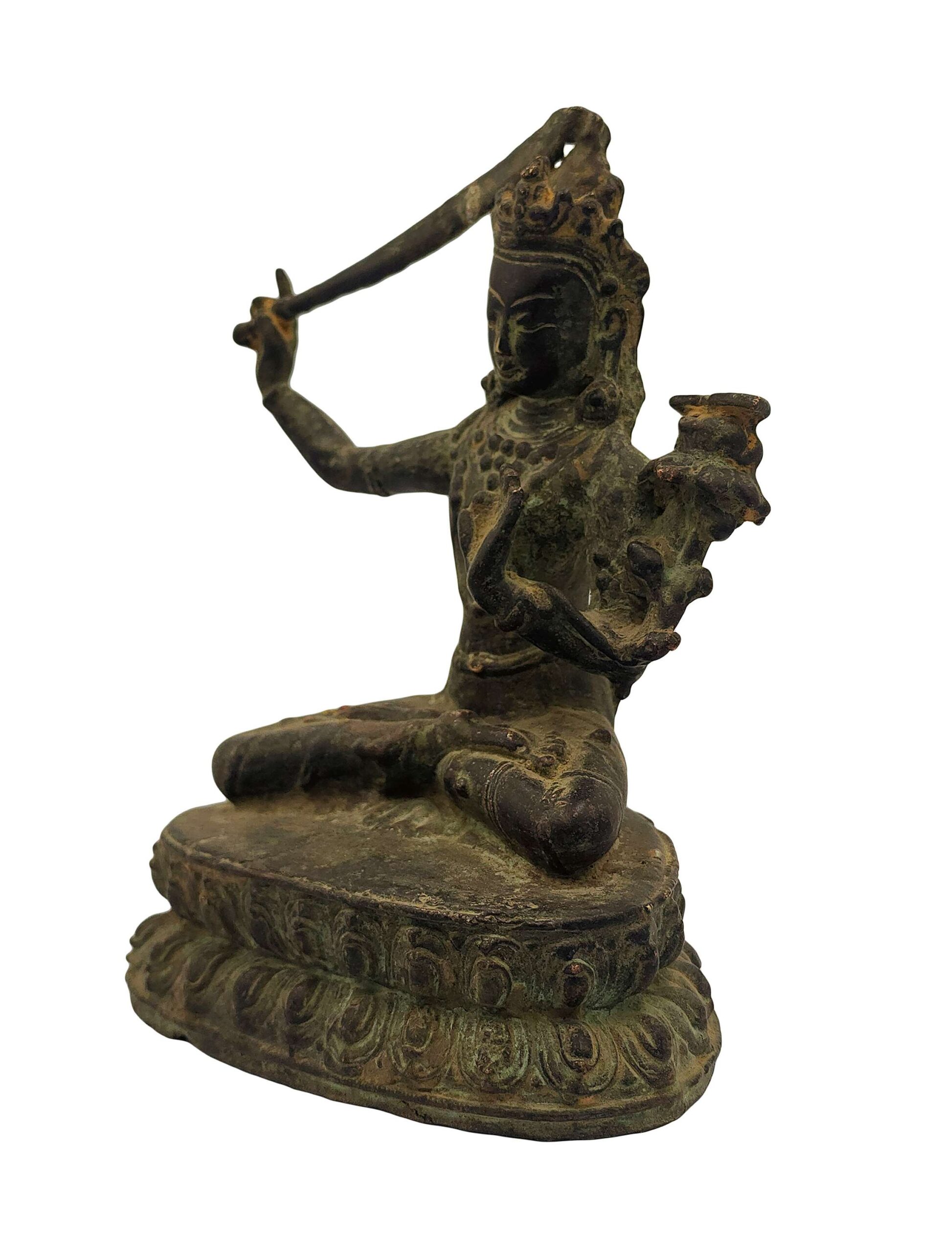 Old Stock Manjushri Buddhist Statue – Antique Patina Copper
