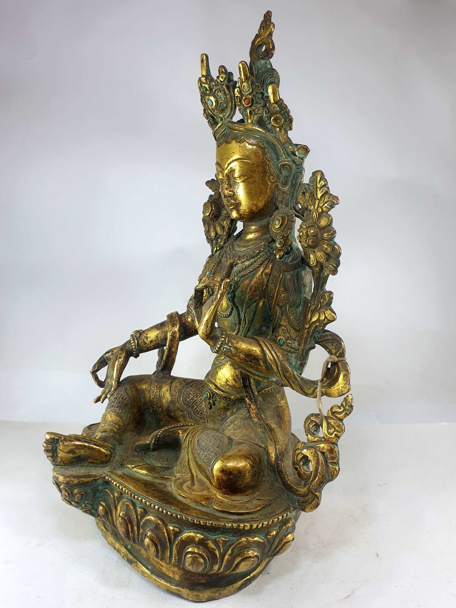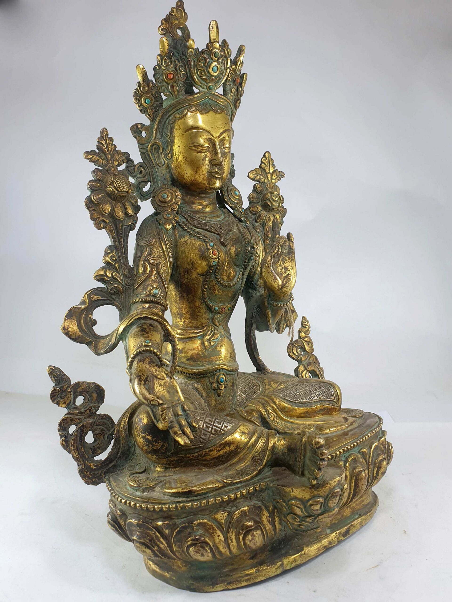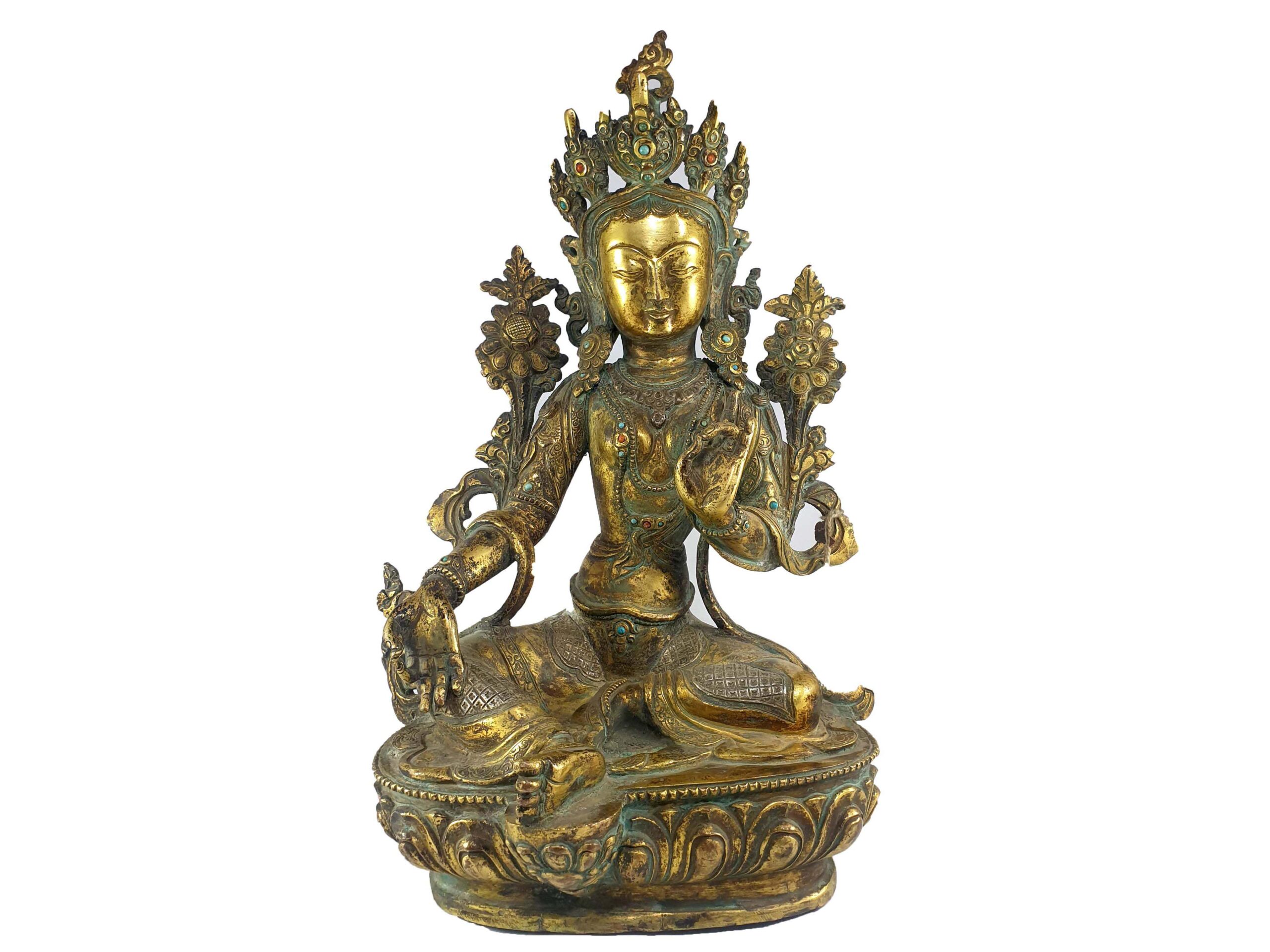 Old Stock Statue Of Green Tara, Full Fire Gold Plated