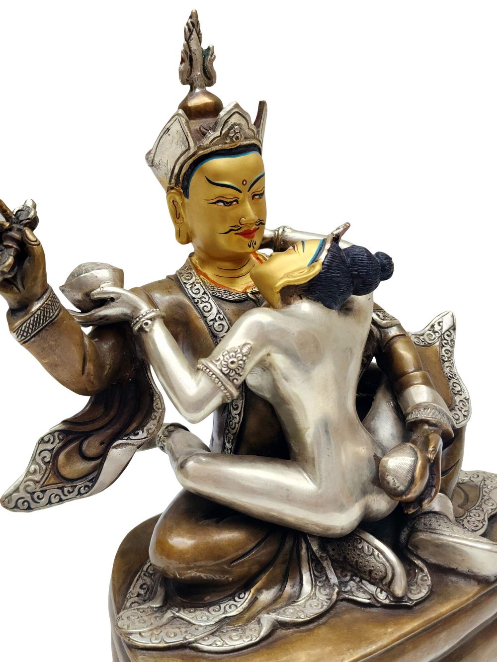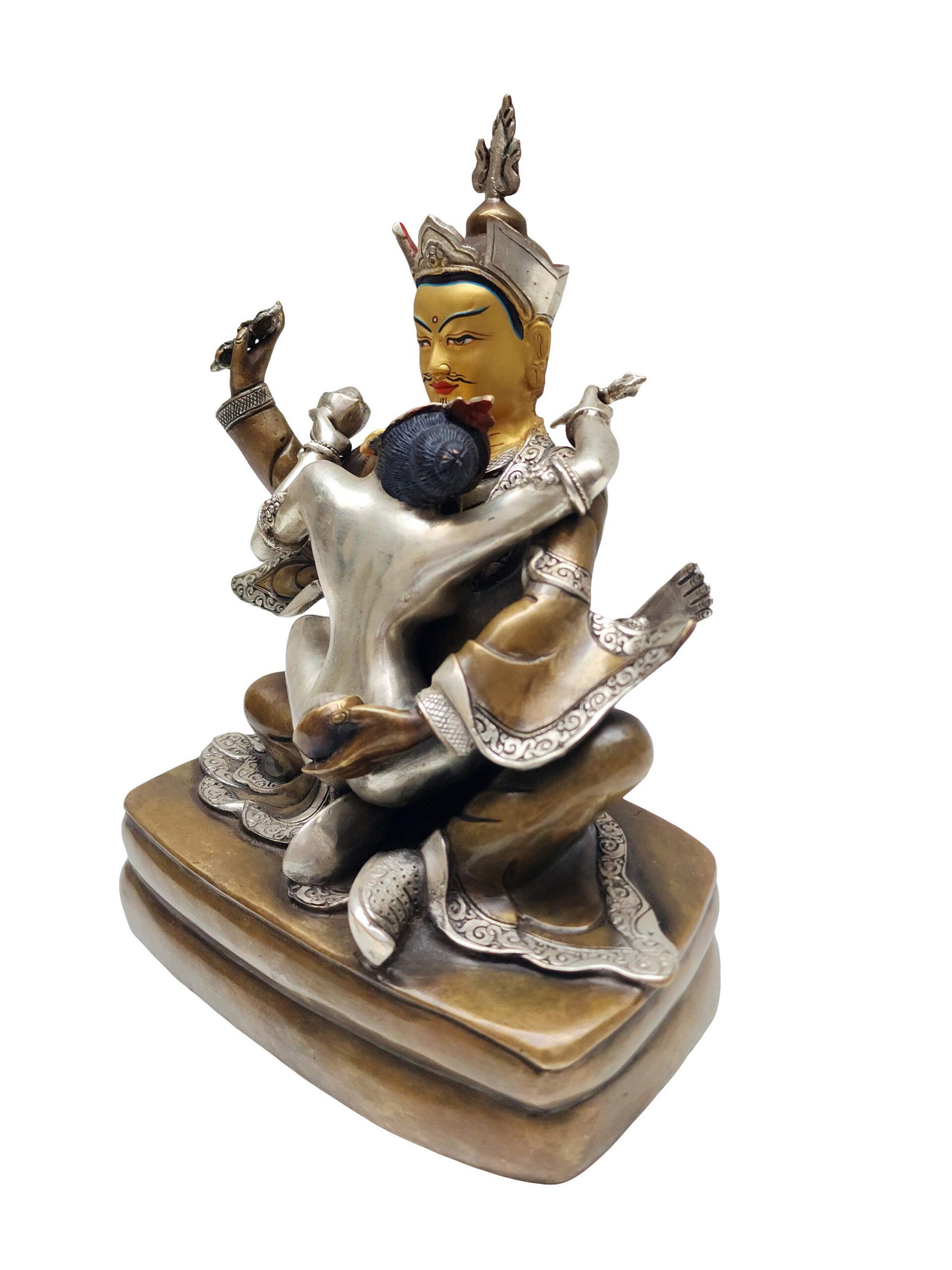 Padmasambhava Shakti Statue – Buddhist Handmade, Silver and Chocolate Oxidized, Face Painted