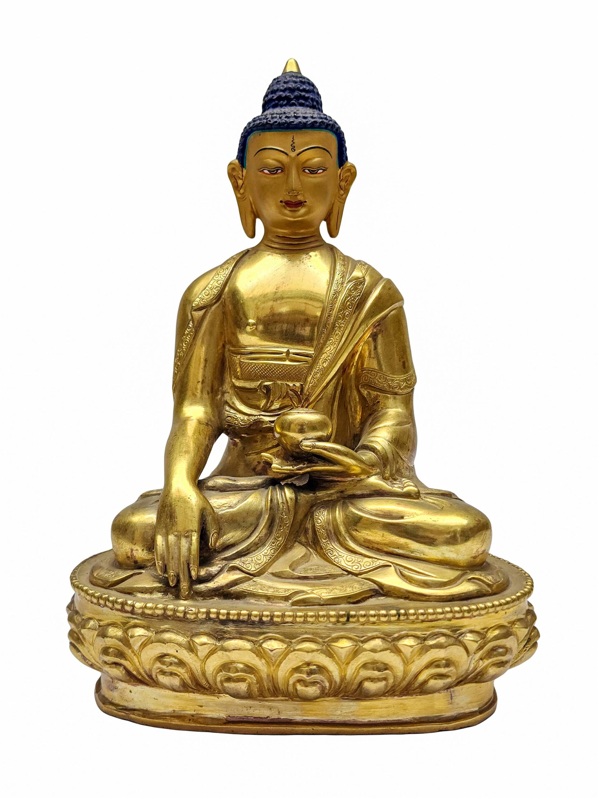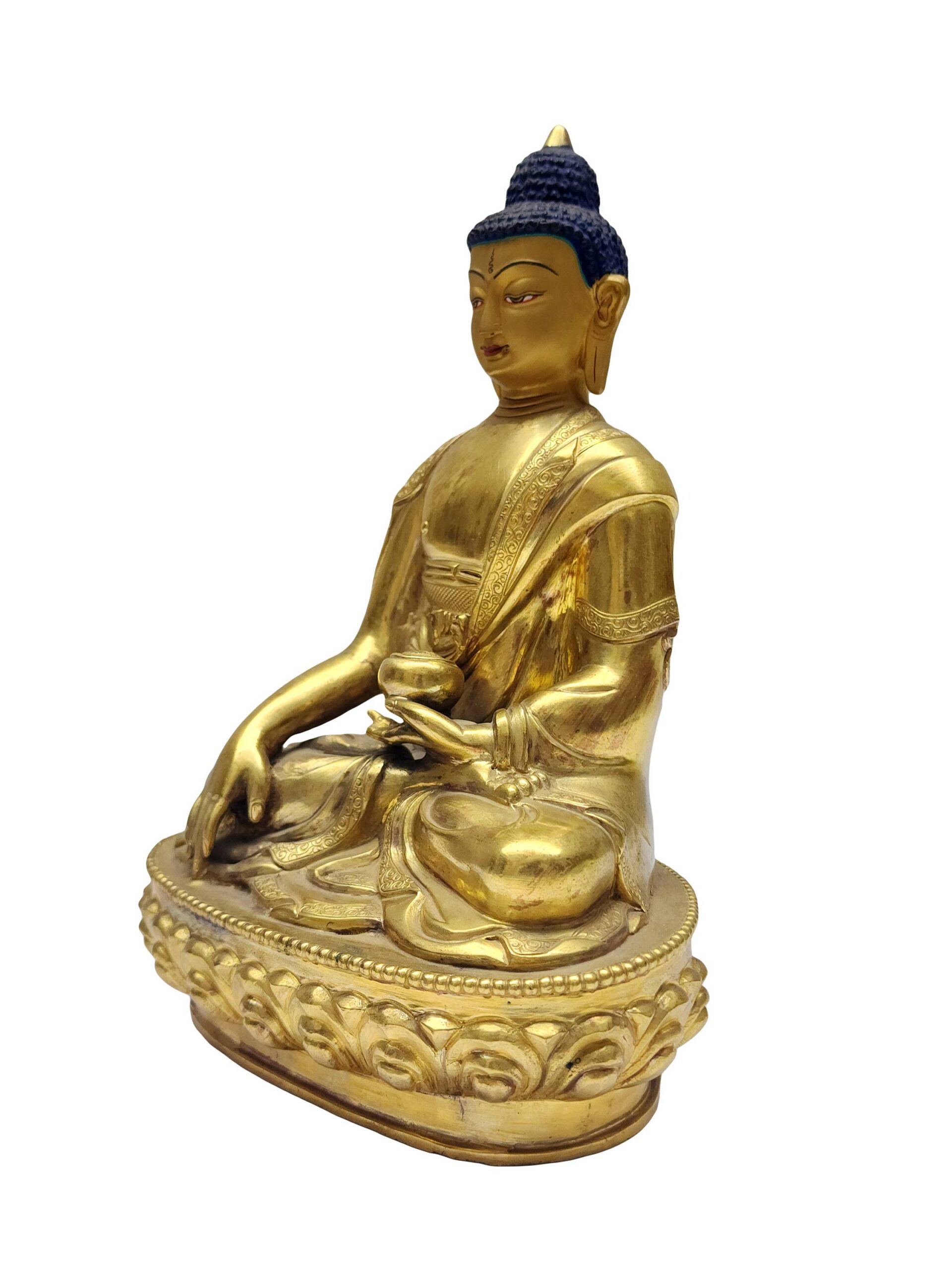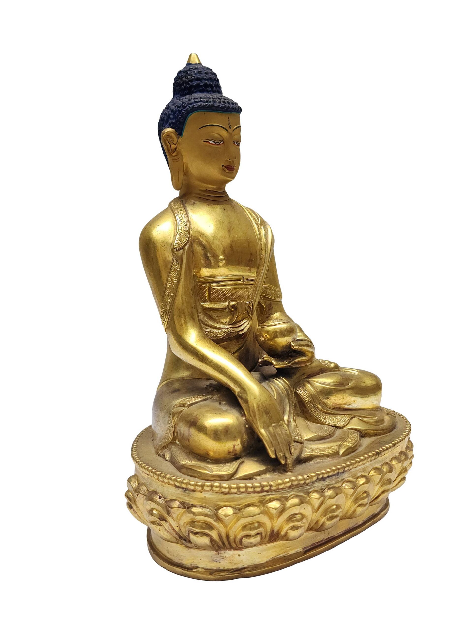 Shakyamuni Buddha Statue – Gold-Plated, Face-Painted, Handcrafted Copper (Old Stock)