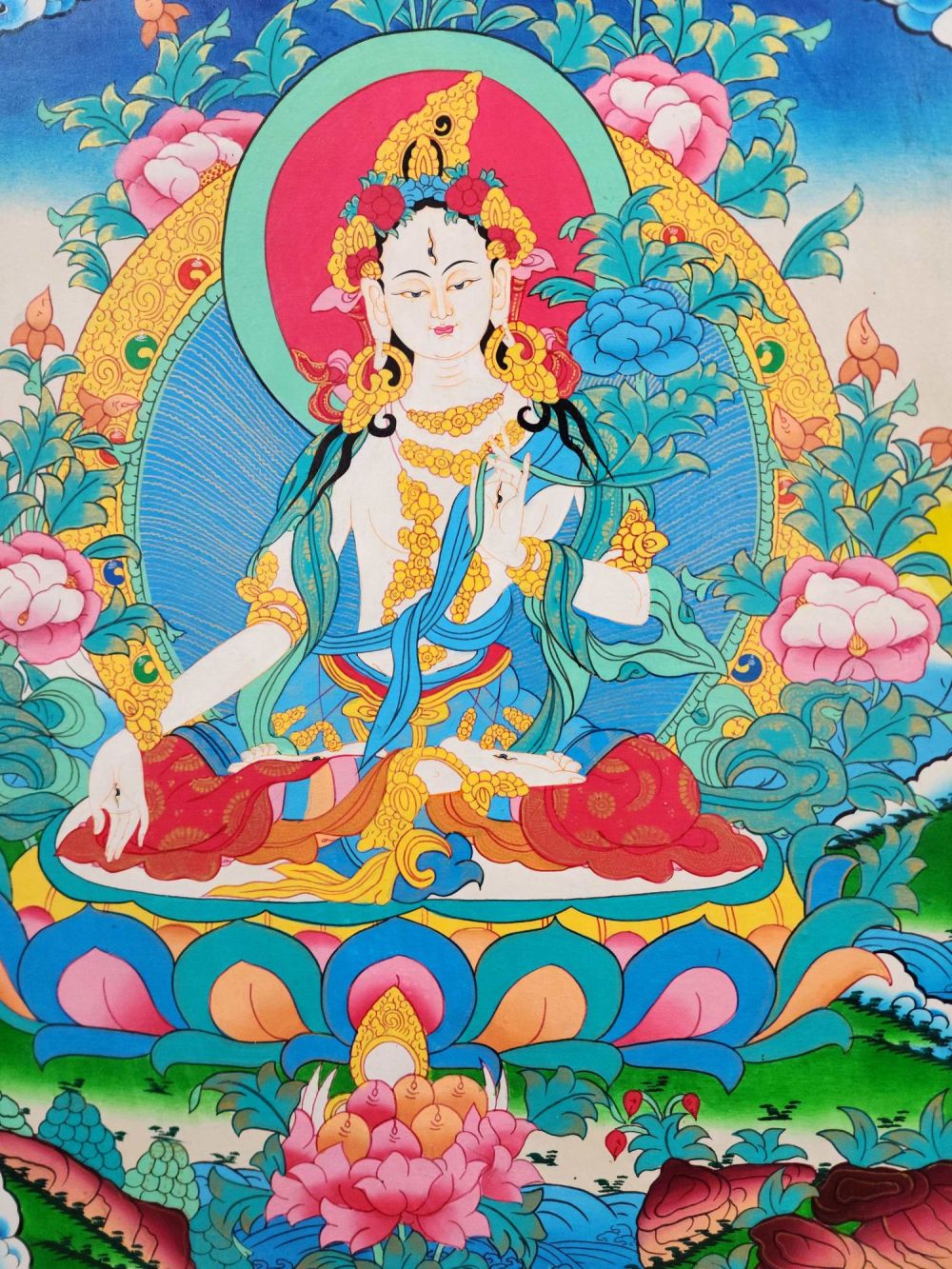 Expertly hand-painted thangka using natural mineral pigments