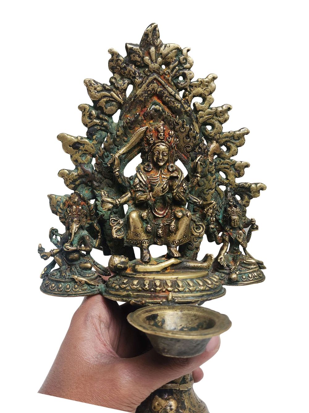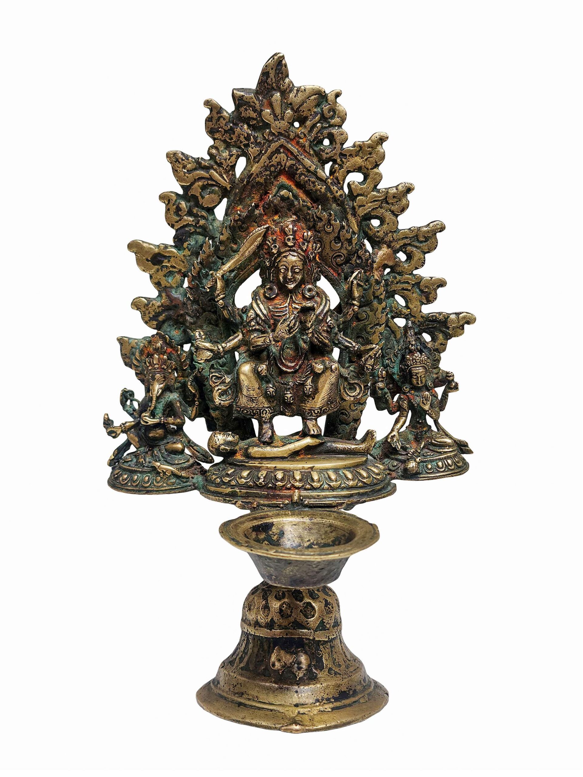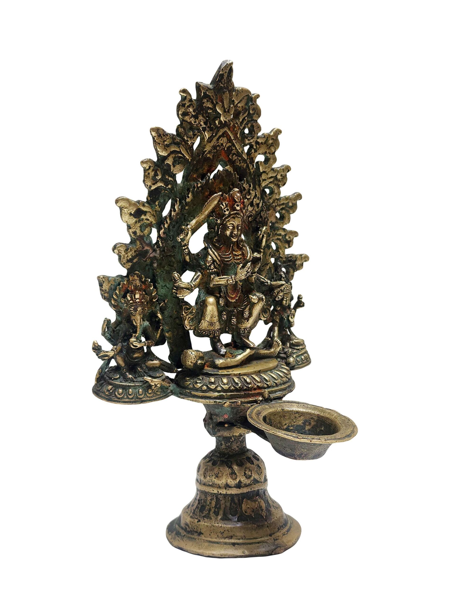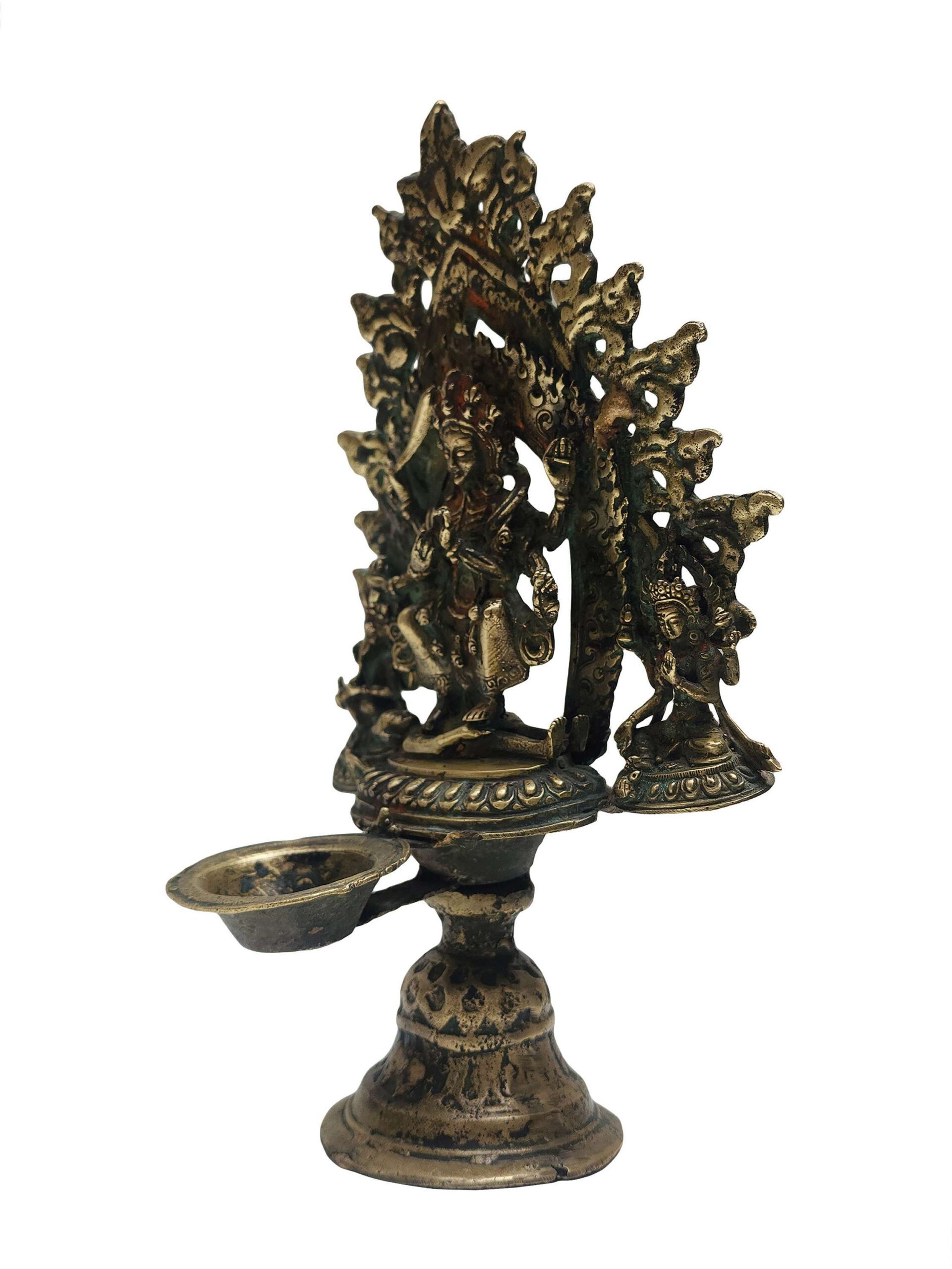 Unique Panas Oil Lamp Statue – Antique Patina Finish | Traditional Nepali Sukunda Copper Art