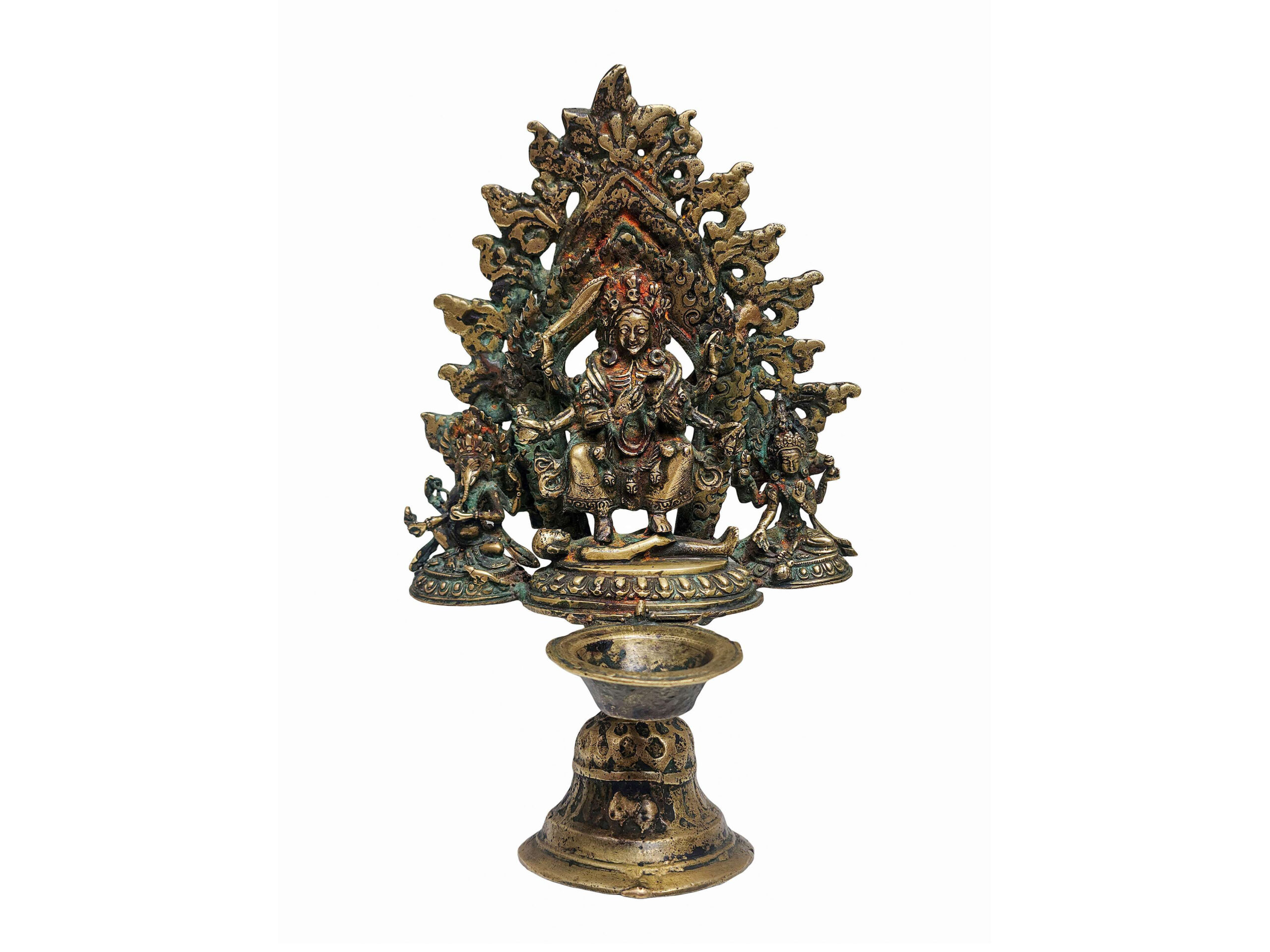 Authentic representation of Nepalese ritual oil lamps