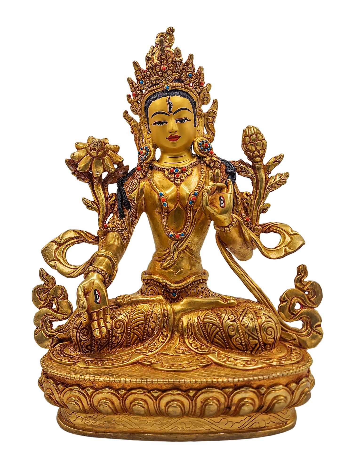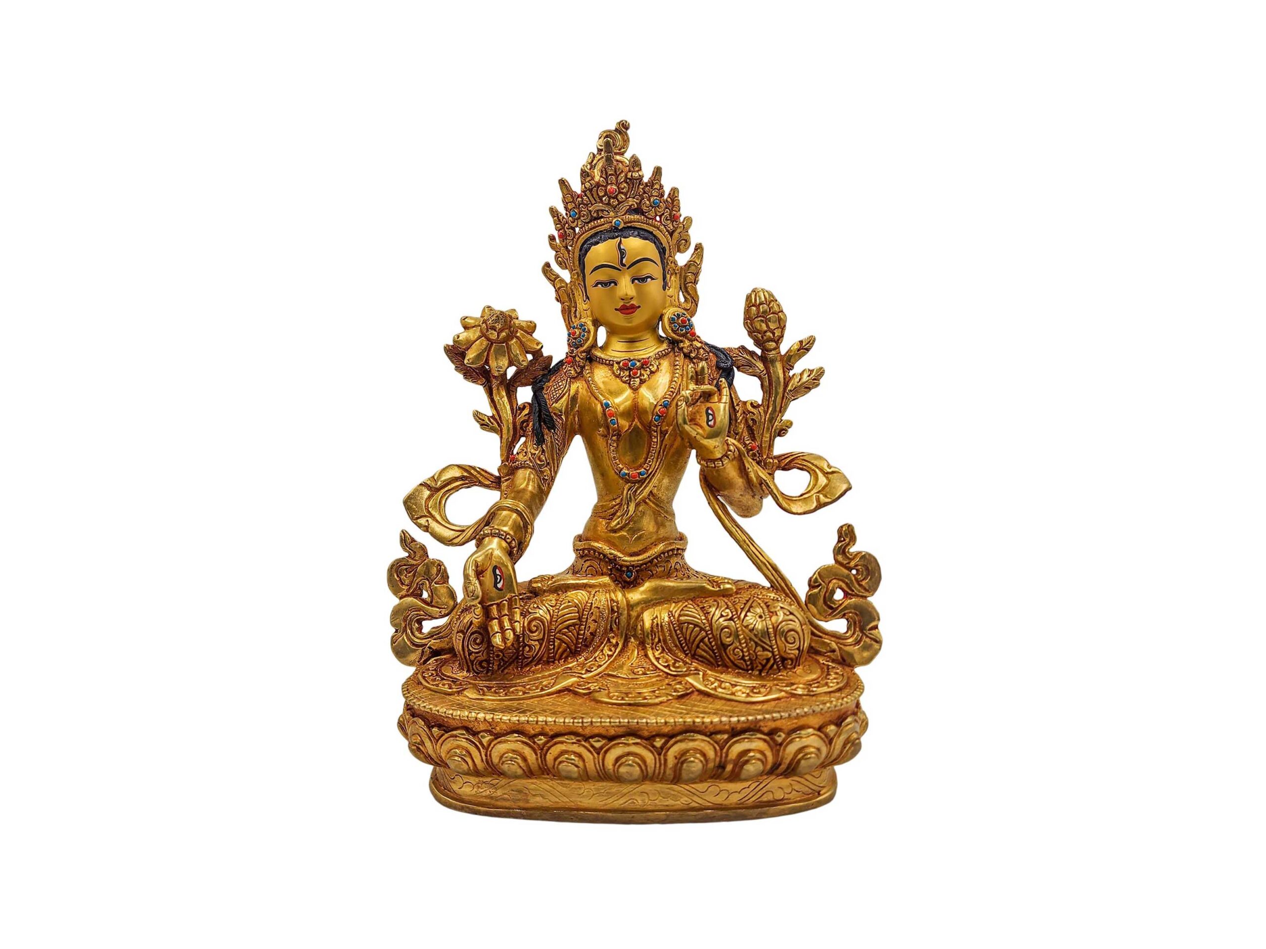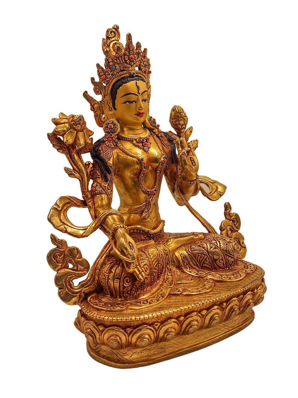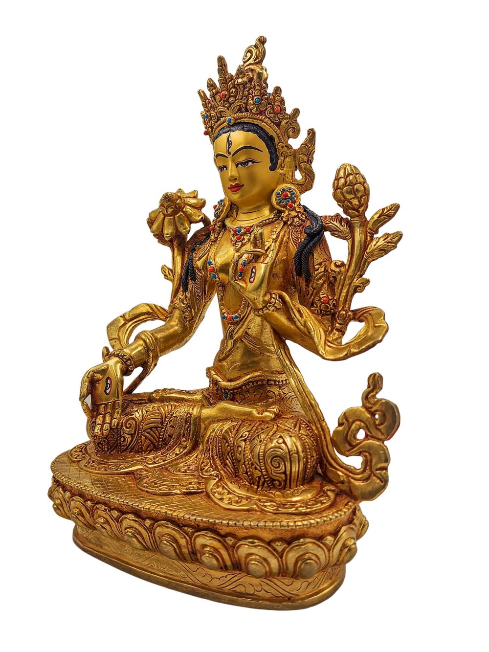 White Tara — Buddhist Handmade Statue | Gold Plated and Face Painted