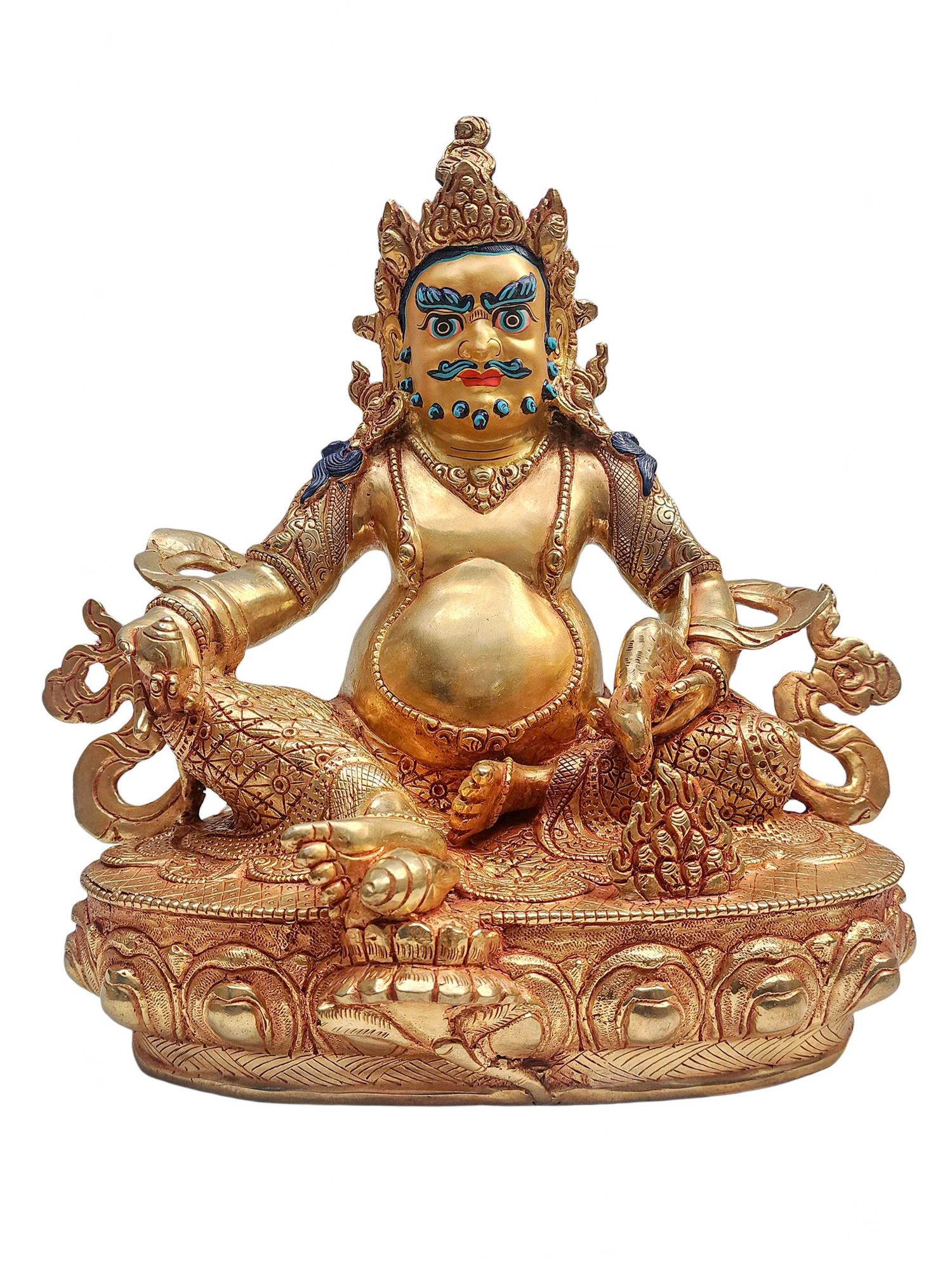 Yellow Jambhala – Buddhist Handmade Statue, Gold Plated and Face Painted