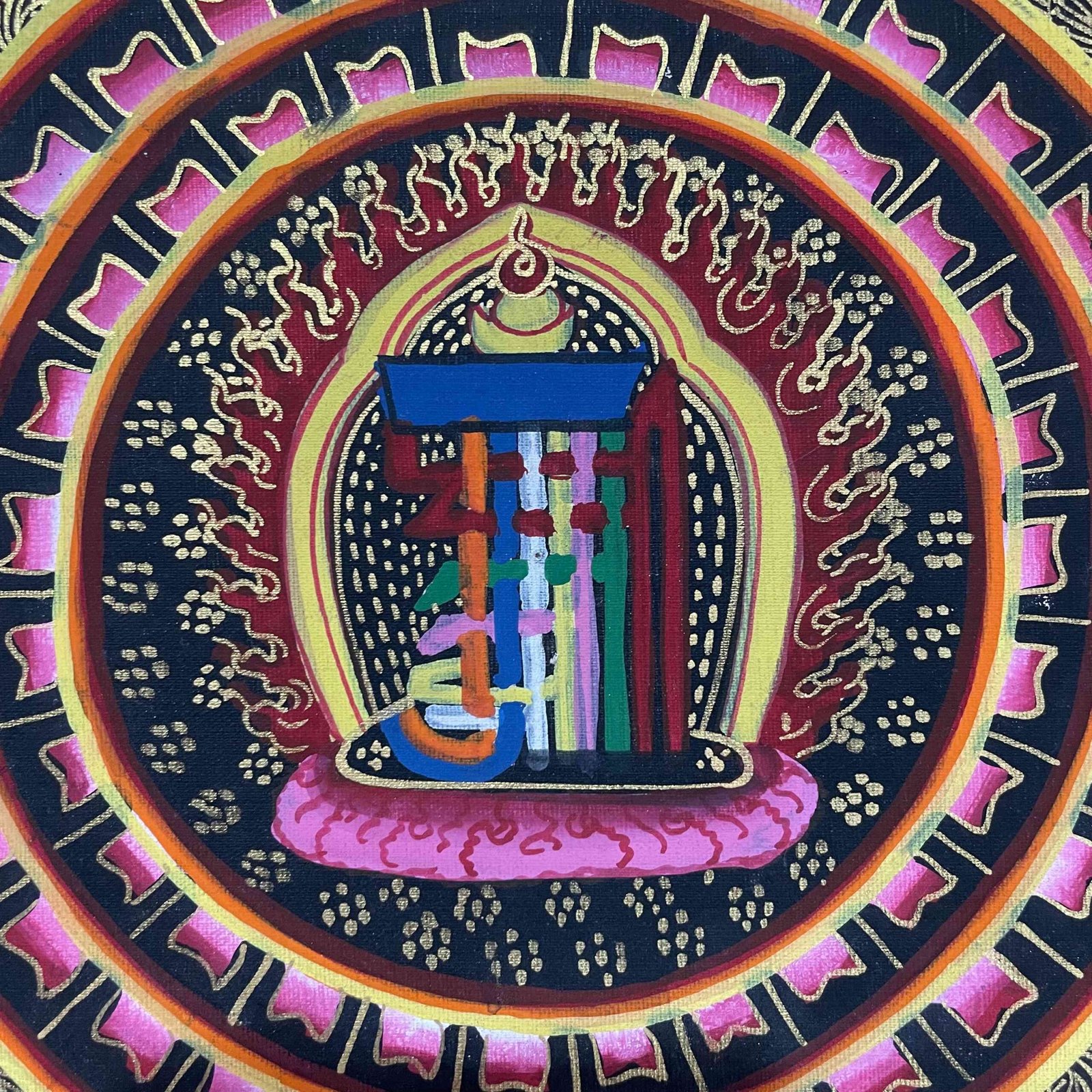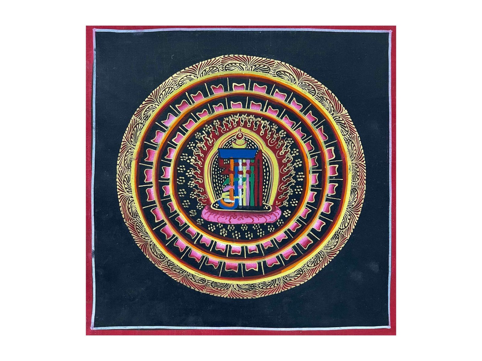 This mandala is lovingly painted by Mandala, a dedicated student of traditional Thangka painting. Trained at a local Thangka school in Nepal, Mandala has committed to preserving this sacred art form by creating accessible, authentic works that reflect their growing skill and passion. These student Thangkas are offered at a more affordable price to support their learning journey and to help sustain the continuity of this vanishing tradition.