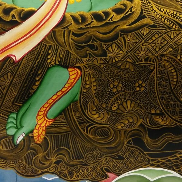 - Keywords for Online Visibility: Green Tara Thangka, Buddhist art painting, Manjushri Vajrapani artwork, Tibetan spiritual décor.
