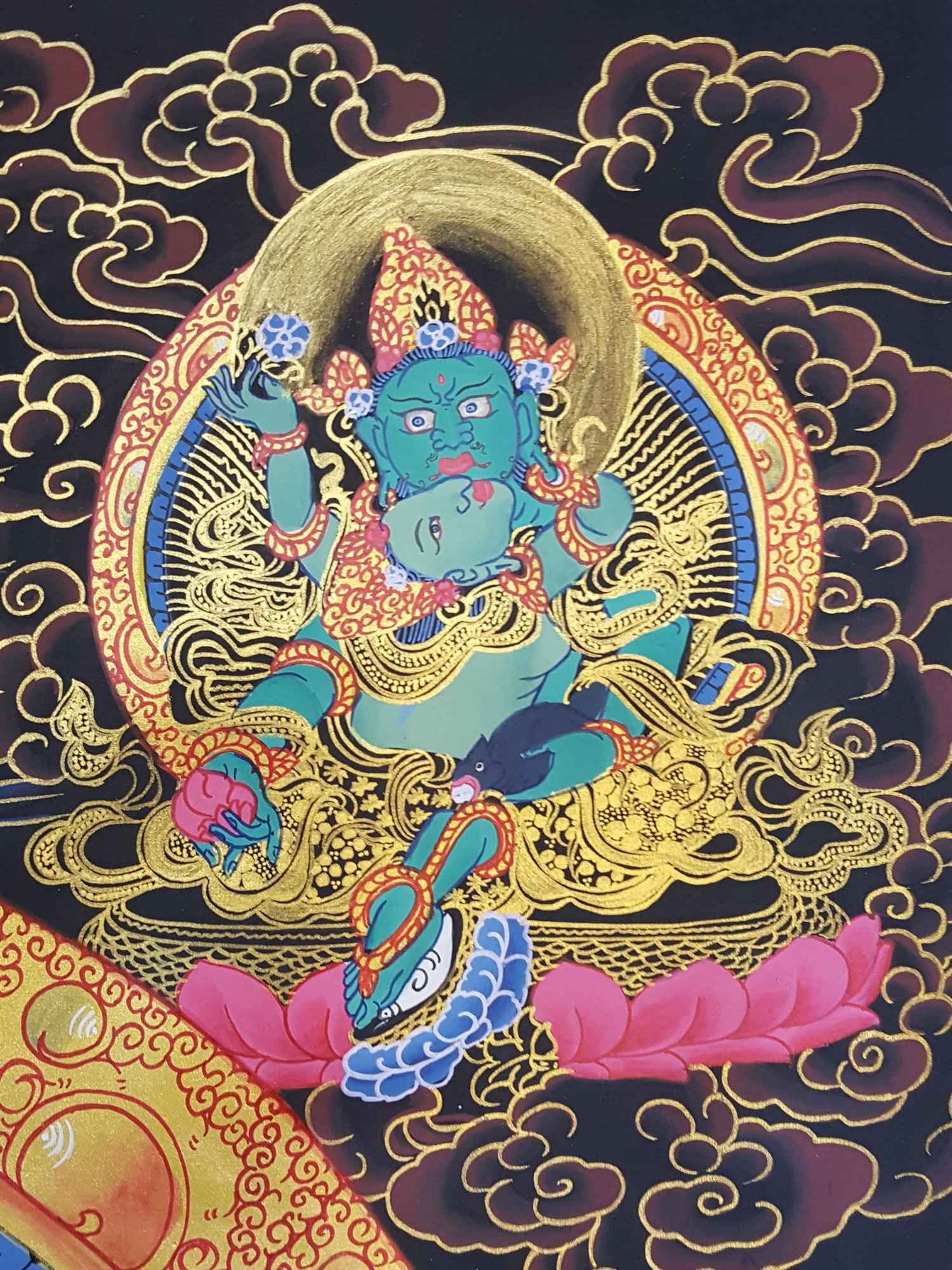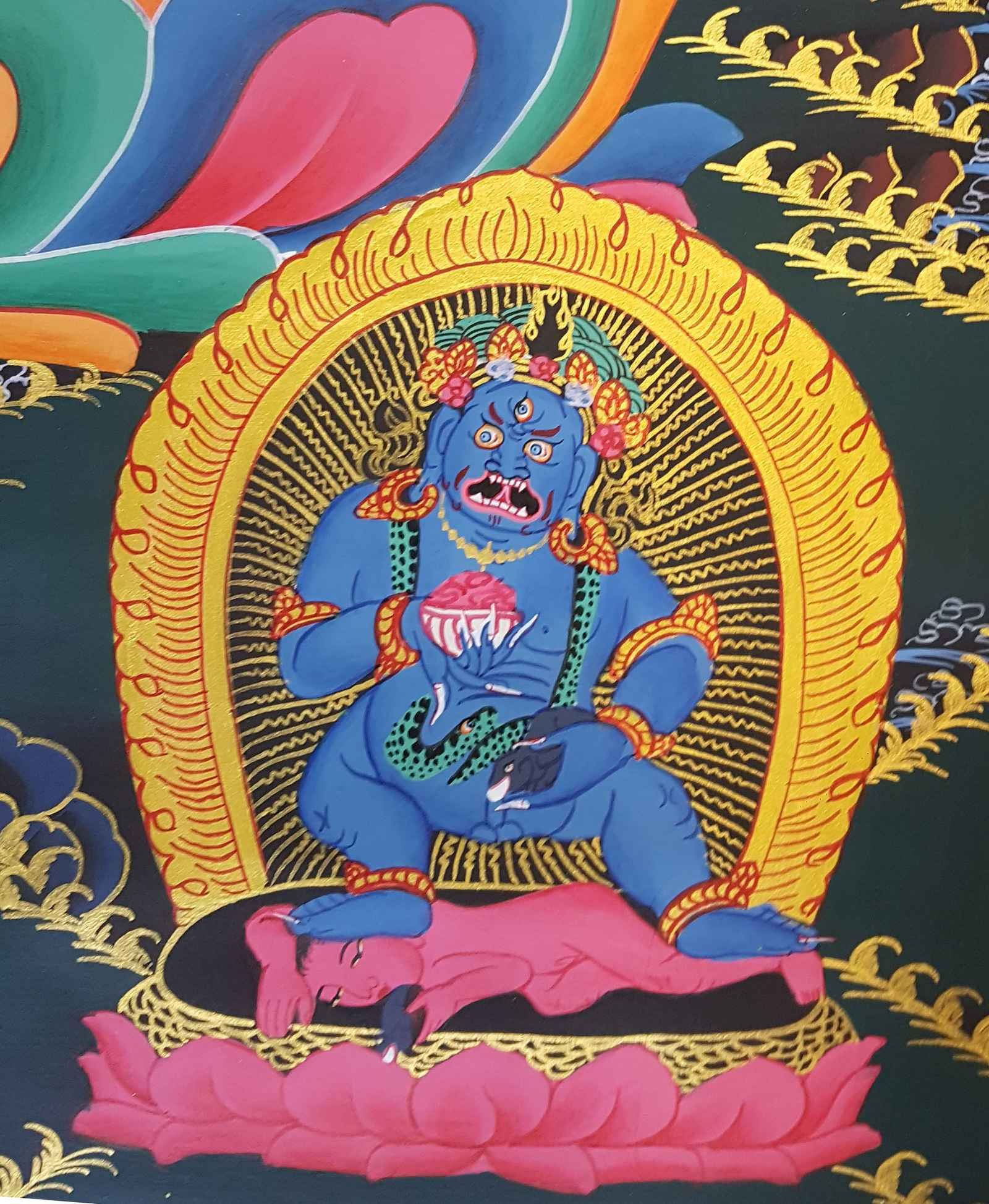 Jambhala, known as Dzambhala in Tibetan Buddhism and Kuber in Hindu mythology, is revered as the God of Wealth.