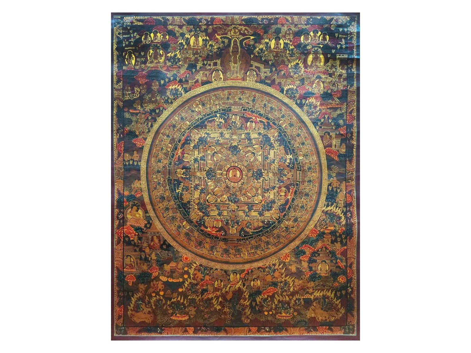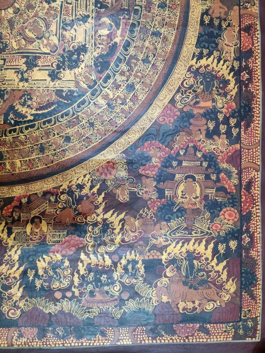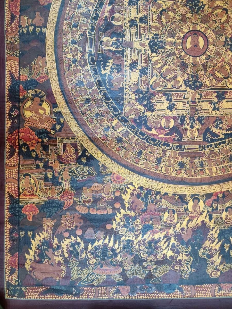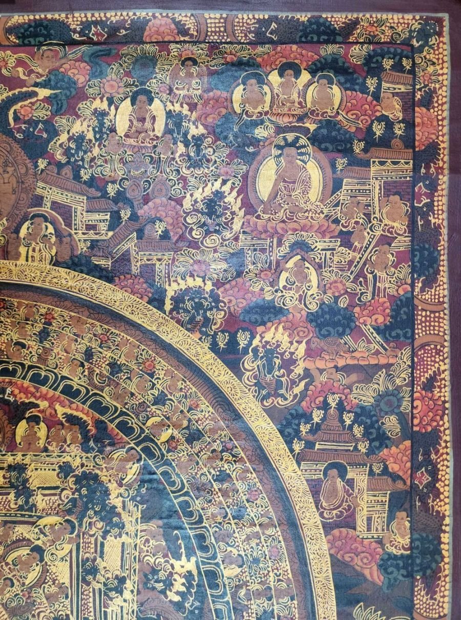Buddhist Handmade Buddha Mandala Thangka (Oiled Antique Finish)