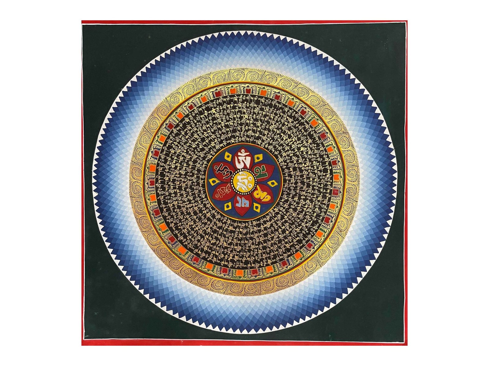 This hand-painted Mandala Thangka represents the intricate spiritual and cosmic symbolism of Tibetan Buddhism. Centered around geometric precision and sacred iconography, the mandala is a visual map of the universe and a guide toward spiritual awakening and inner harmony. Artists use natural mineral pigments on cotton canvas to craft each detail with patience and intention, turning the painting itself into a form of meditative practice.