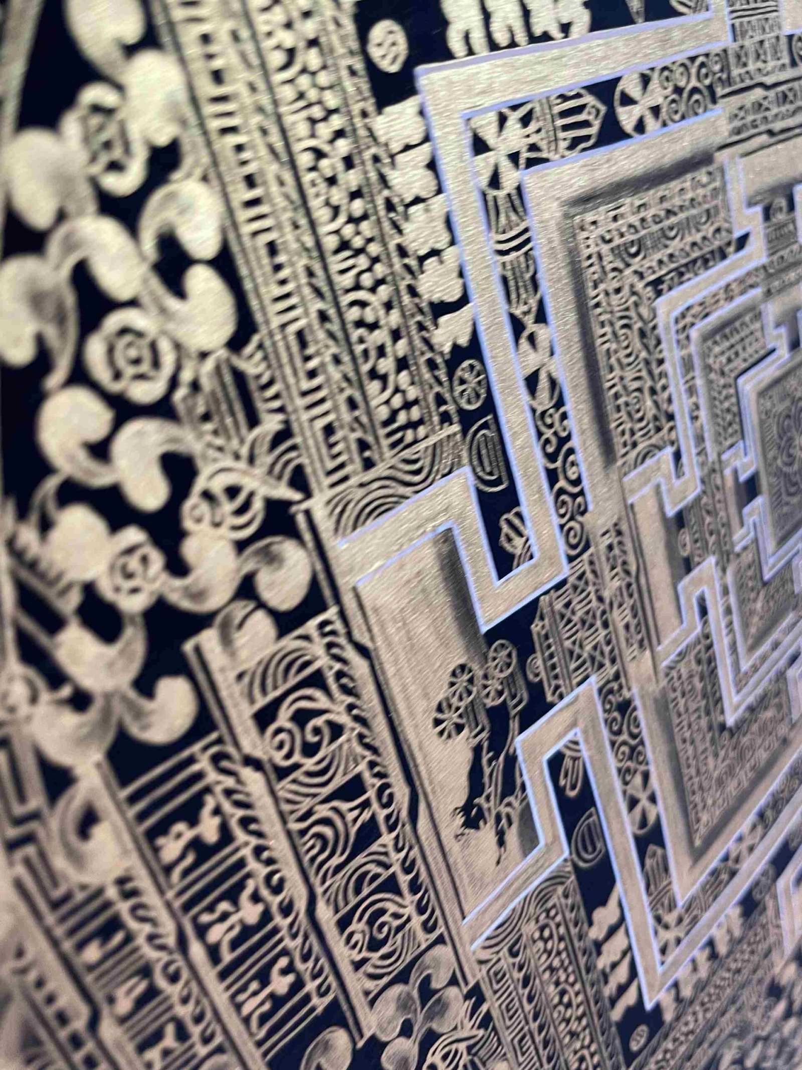 Thangkas are designed to be rolled for storage and are usually mounted with textile backings and silk veils. This form allows for easy transportation and protection, much like ancient scrolls. To ensure longevity, they should be preserved in dry, cool environments, away from direct sunlight.