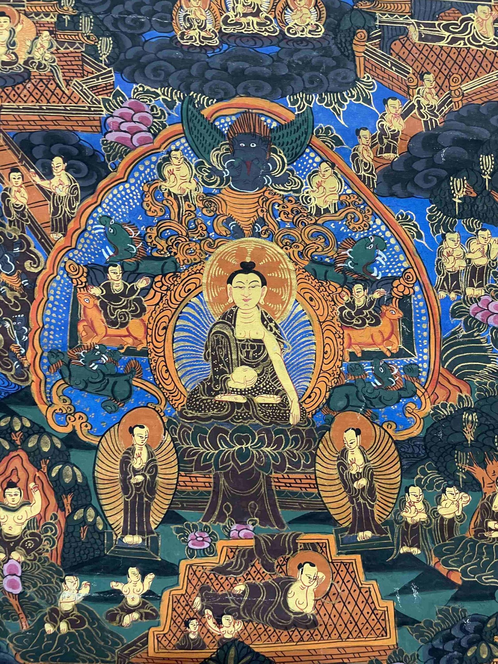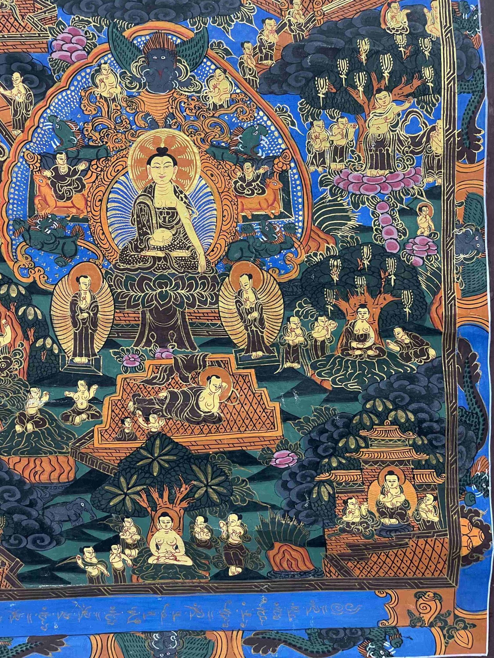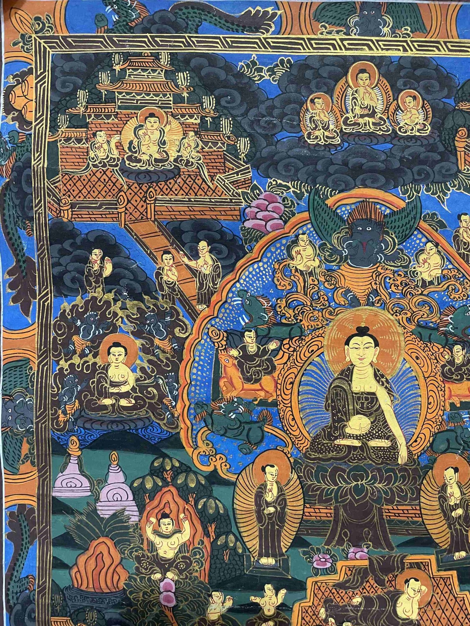 Buddhist Handmade Thangka Painting – Buddha Life Story, Hand-Painted with Real Gold