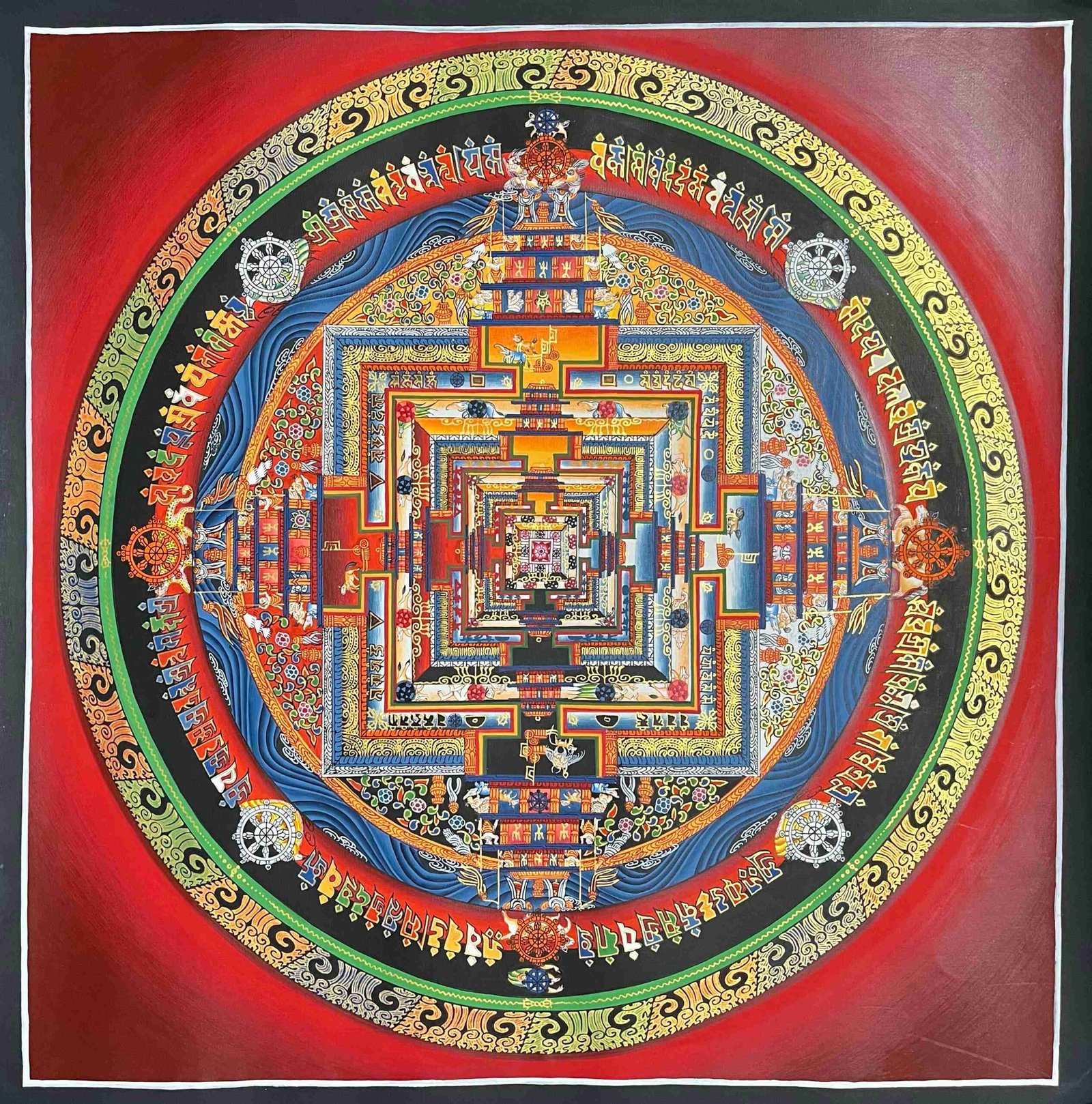 Buddhist Handmade Thangka Painting – Kalachakra Mandala, Hand-Painted