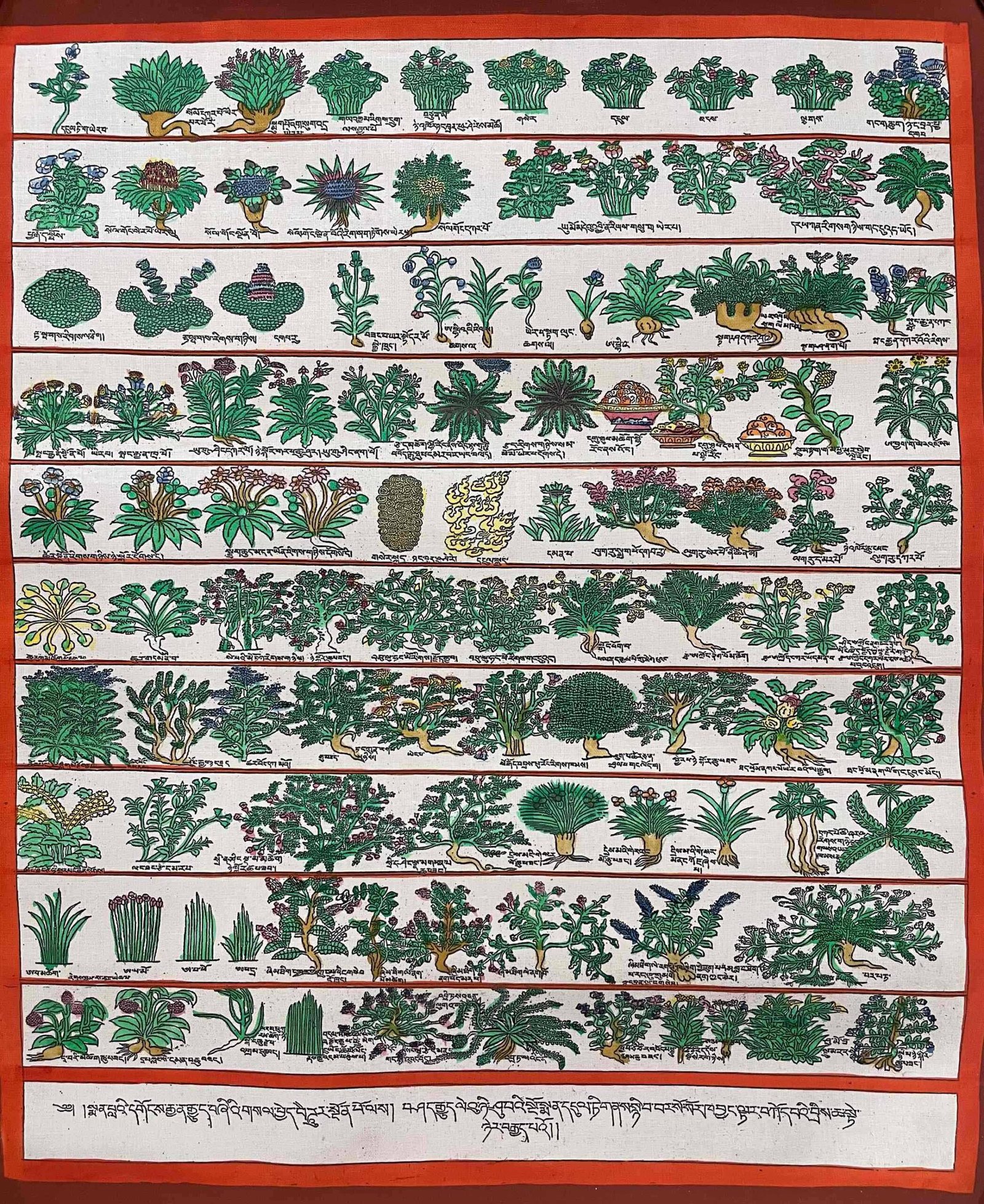 A Medical Thangka is a rare and sacred form of Tibetan Buddhist art that visually represents Traditional Tibetan Medicine (TTM)—a 2,500-year-old holistic healing system. Rooted in the Four Tantras, Tibetan medicine integrates knowledge from: