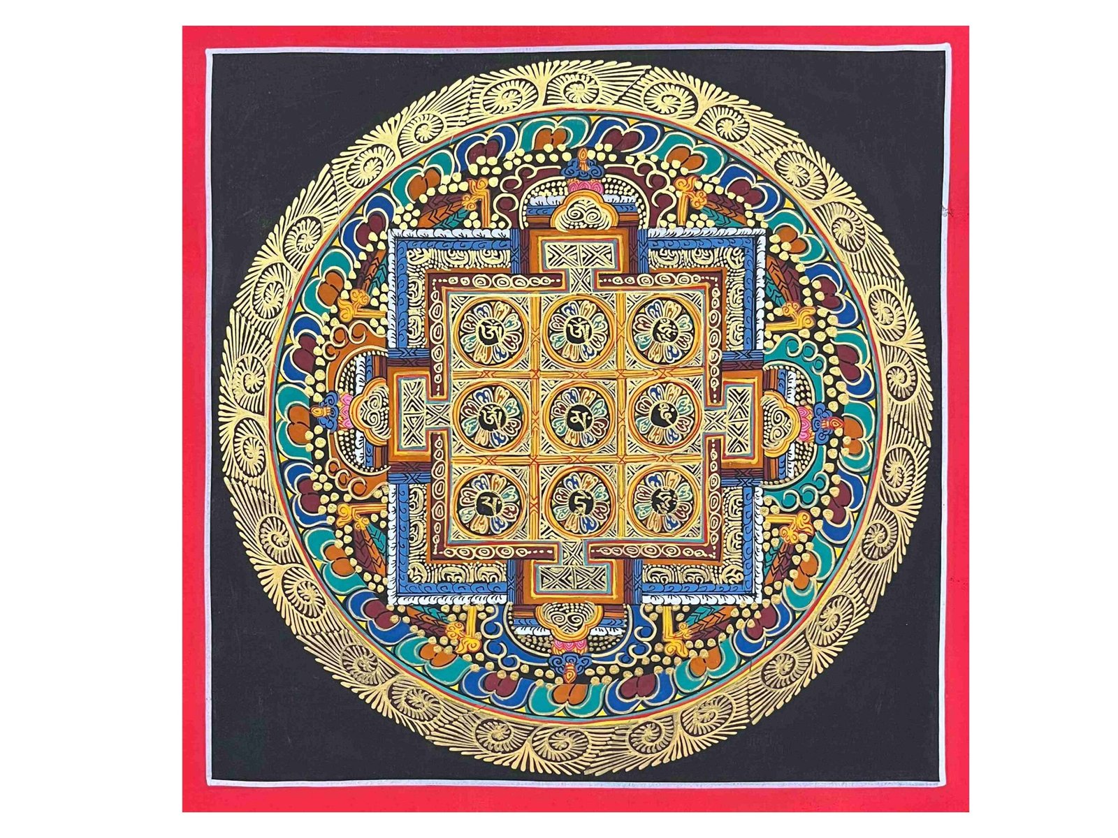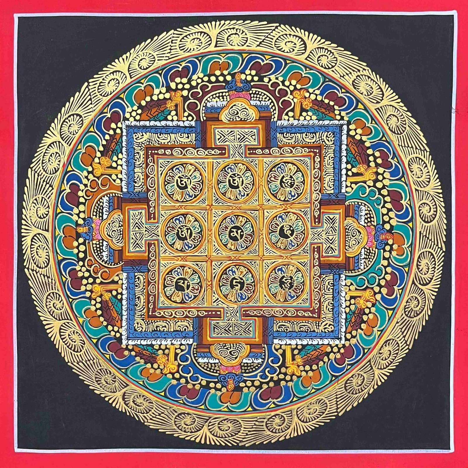 Buddhist Handmade Thangka Painting – Nine Planet Mandala, Hand-Painted, Student Mandala